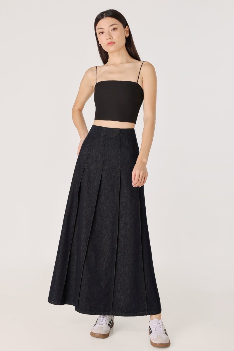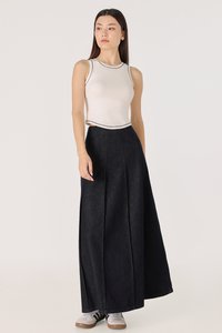 FIRST SIGHT PANEL FLARE DENIM MAXI SKIRT - PETITE