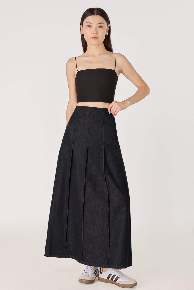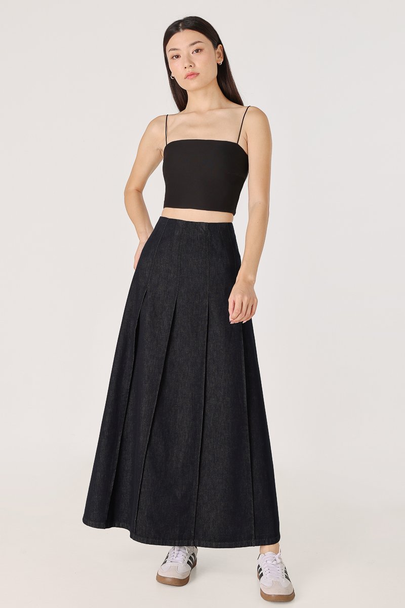 FIRST SIGHT PANEL FLARE DENIM MAXI SKIRT - REGULAR