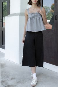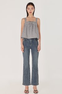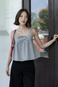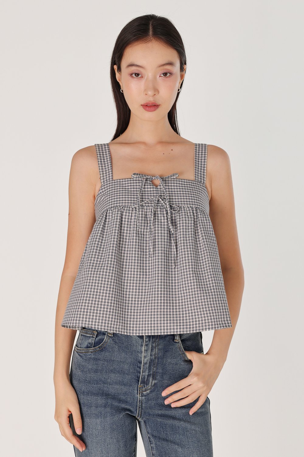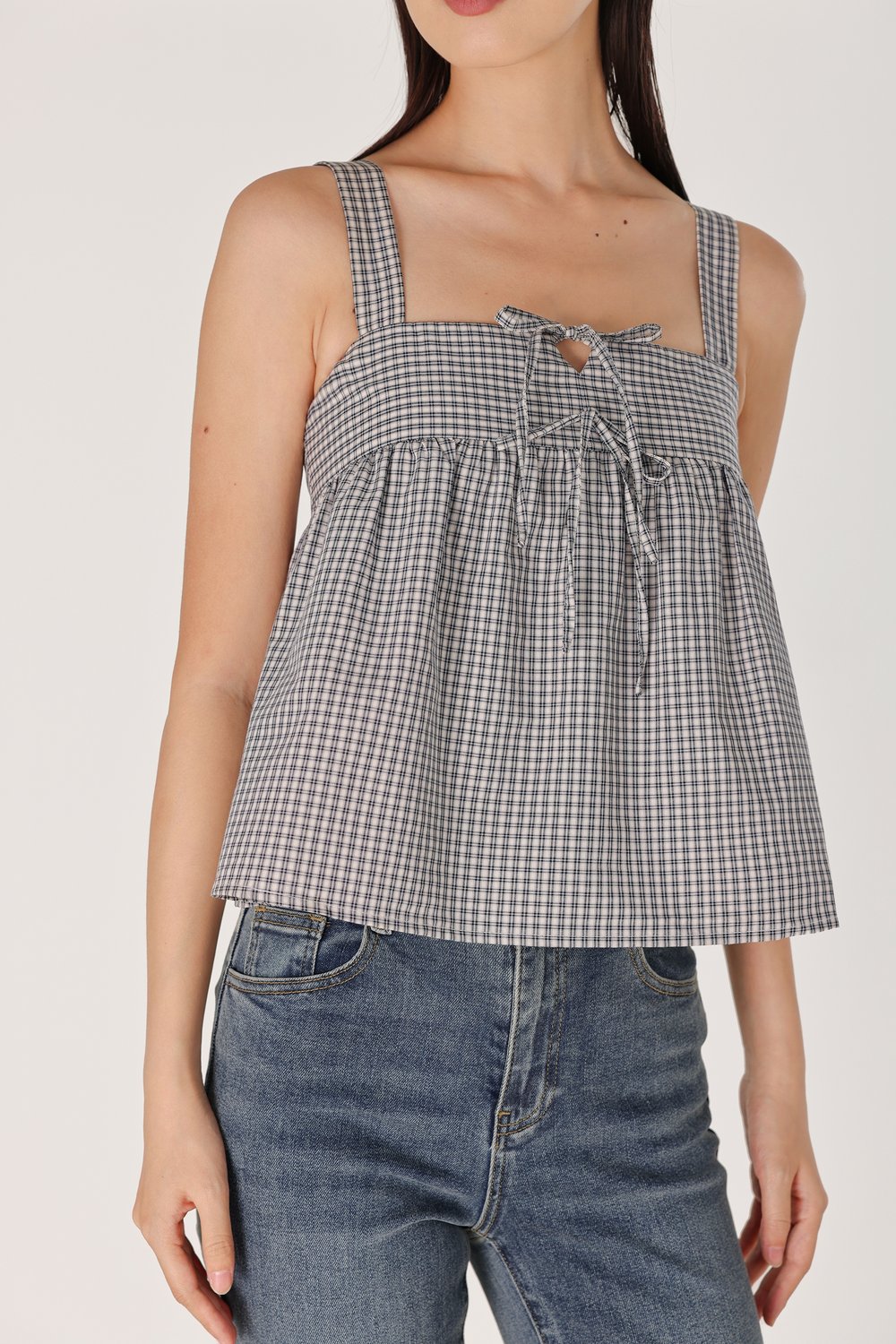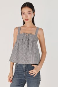 FONNIE PADDED RIBBON-TIE BABYDOLL TENT TOP (CHECKERED)