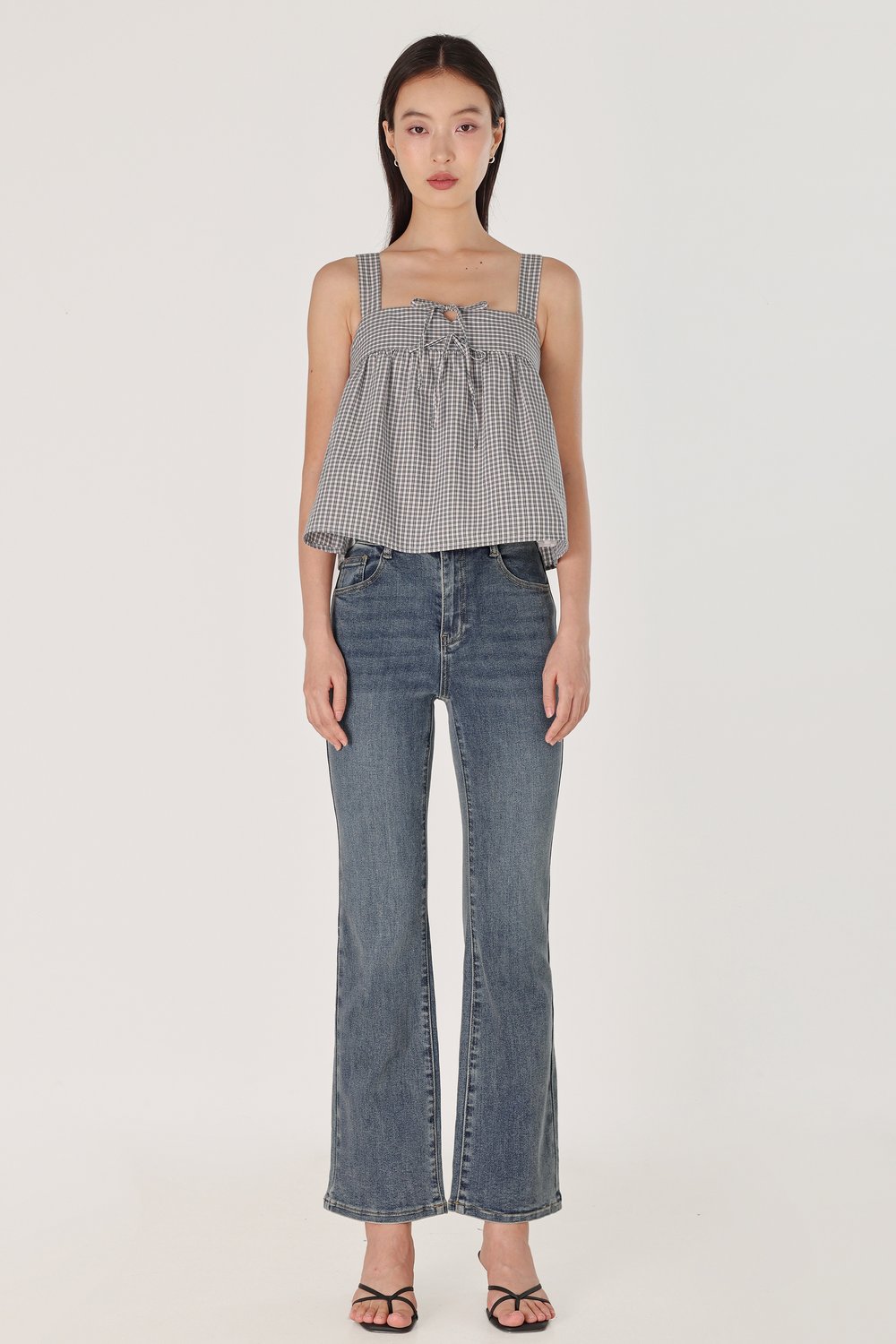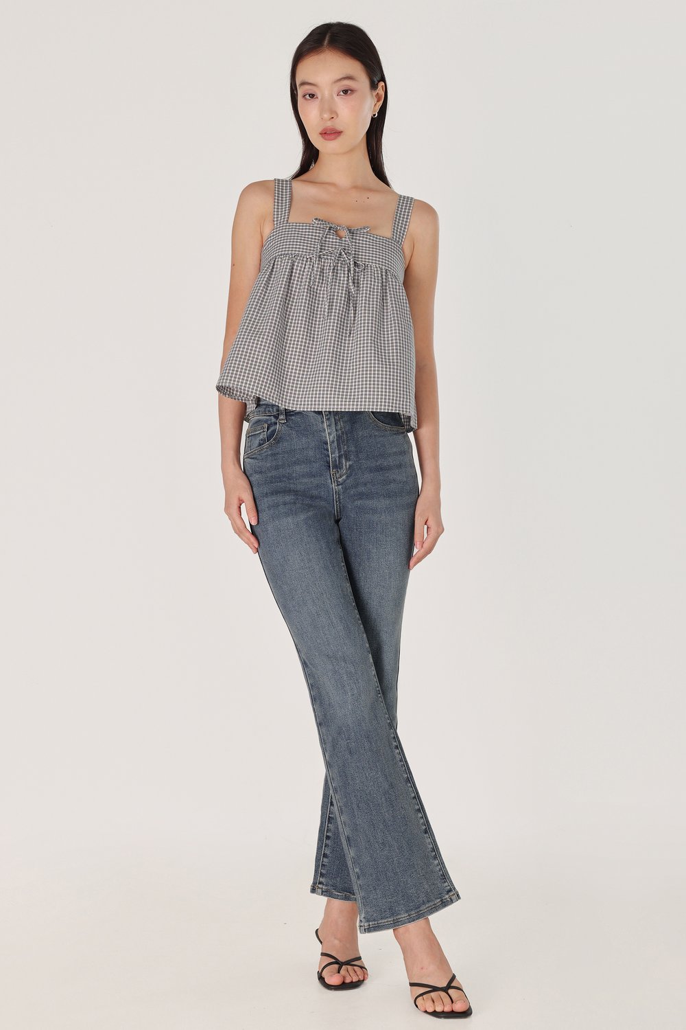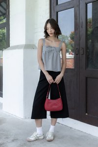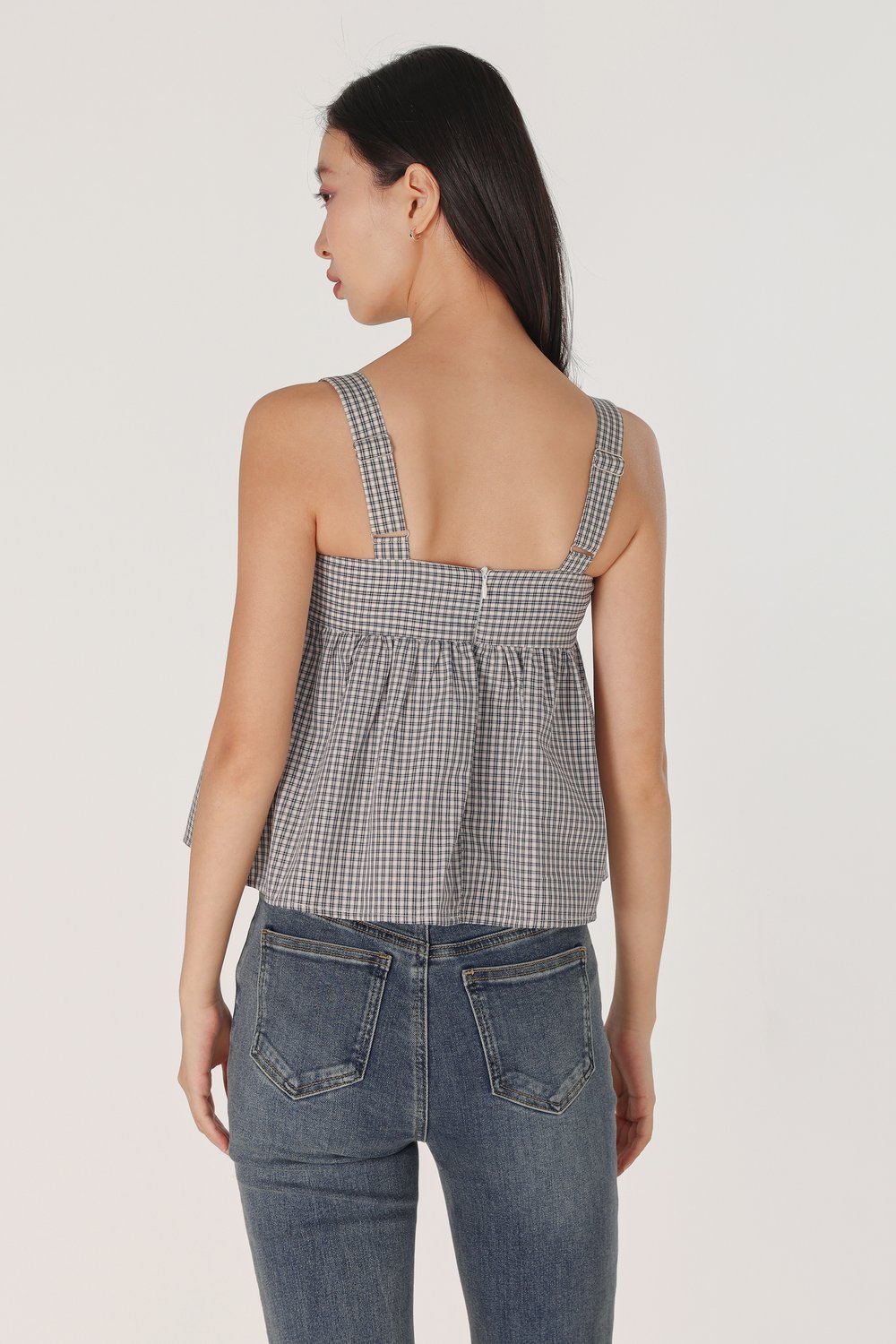 FONNIE PADDED RIBBON-TIE BABYDOLL TENT TOP (CHECKERED)
