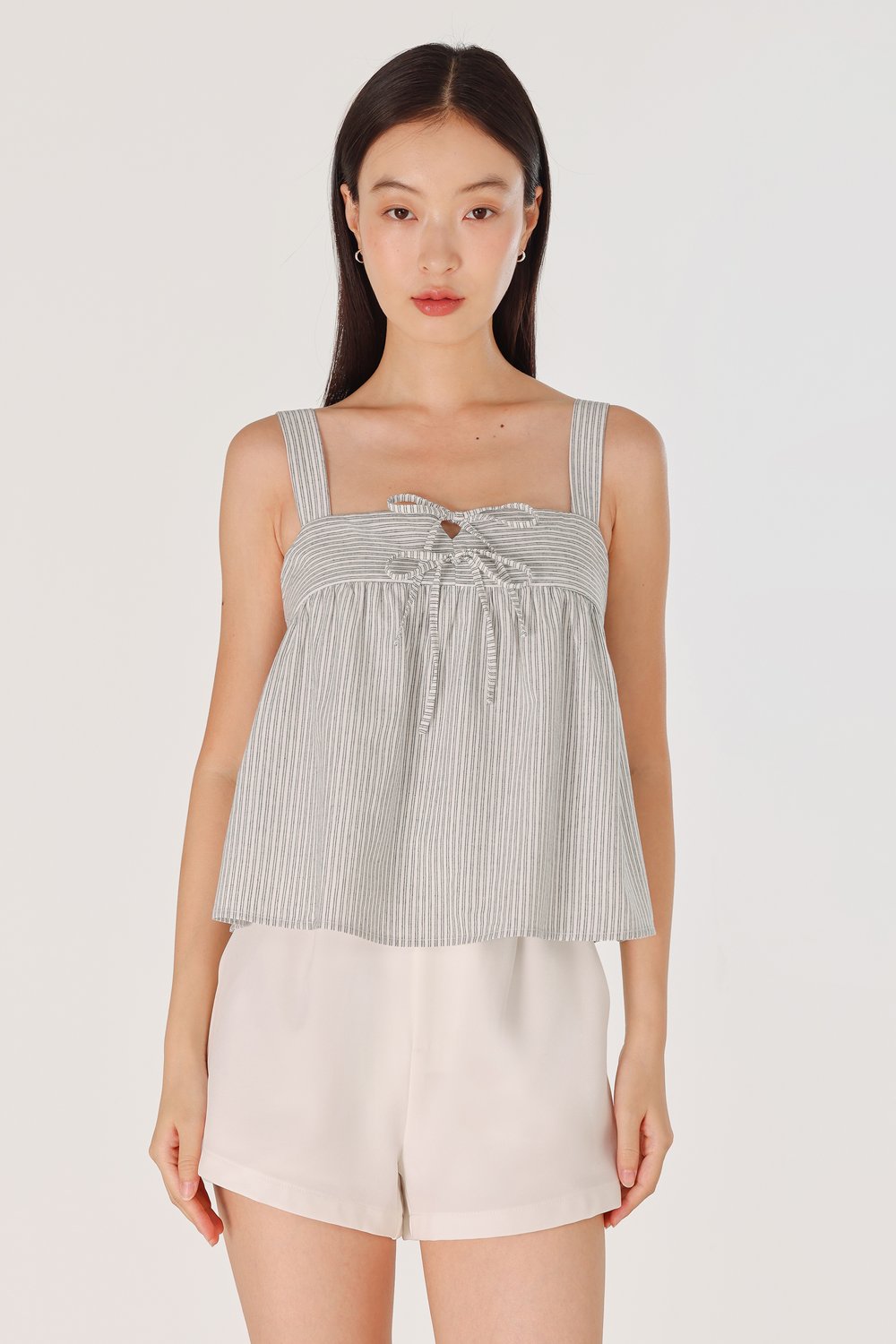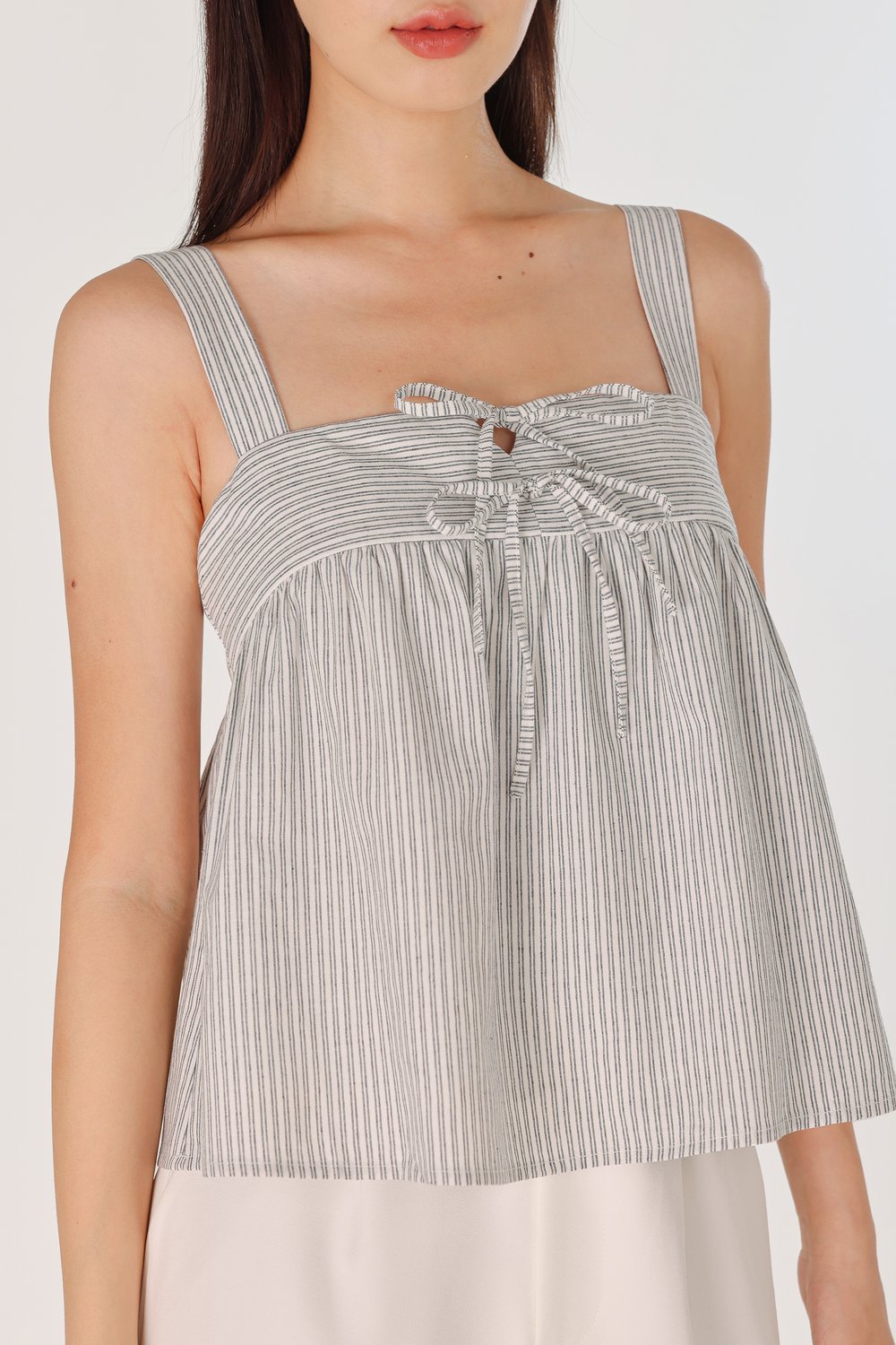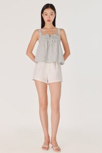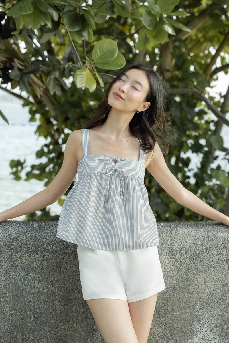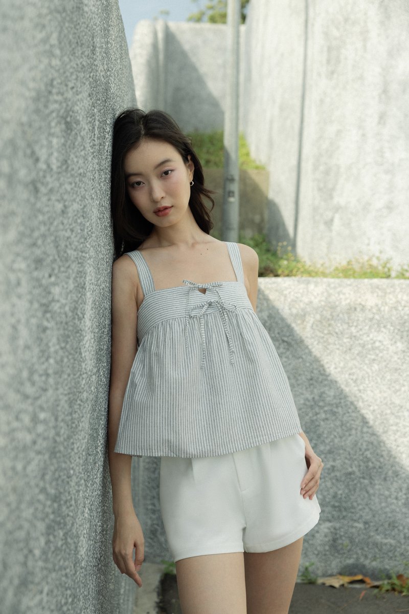 FONNIE PADDED RIBBON-TIE BABYDOLL TENT TOP (STRIPED)