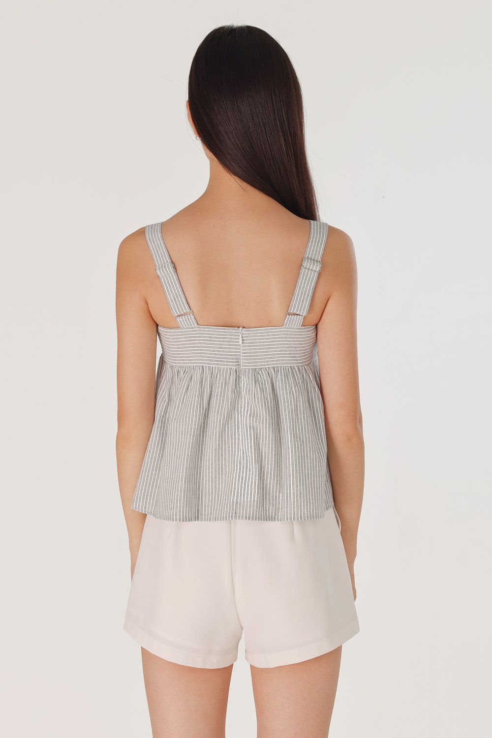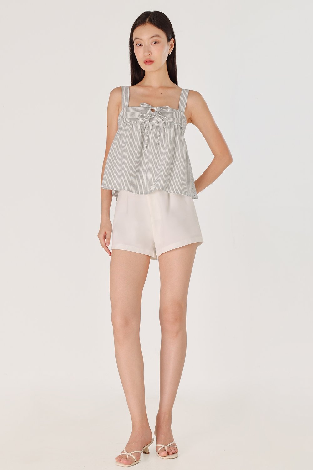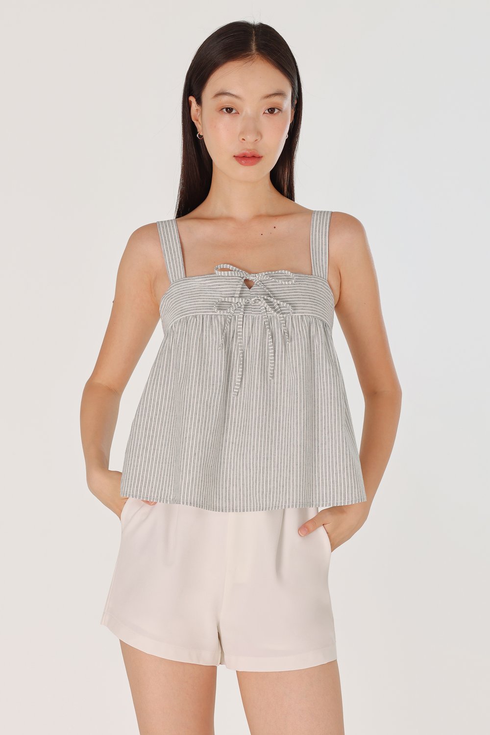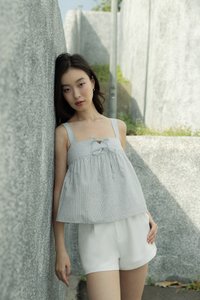 FONNIE PADDED RIBBON-TIE BABYDOLL TENT TOP (STRIPED)