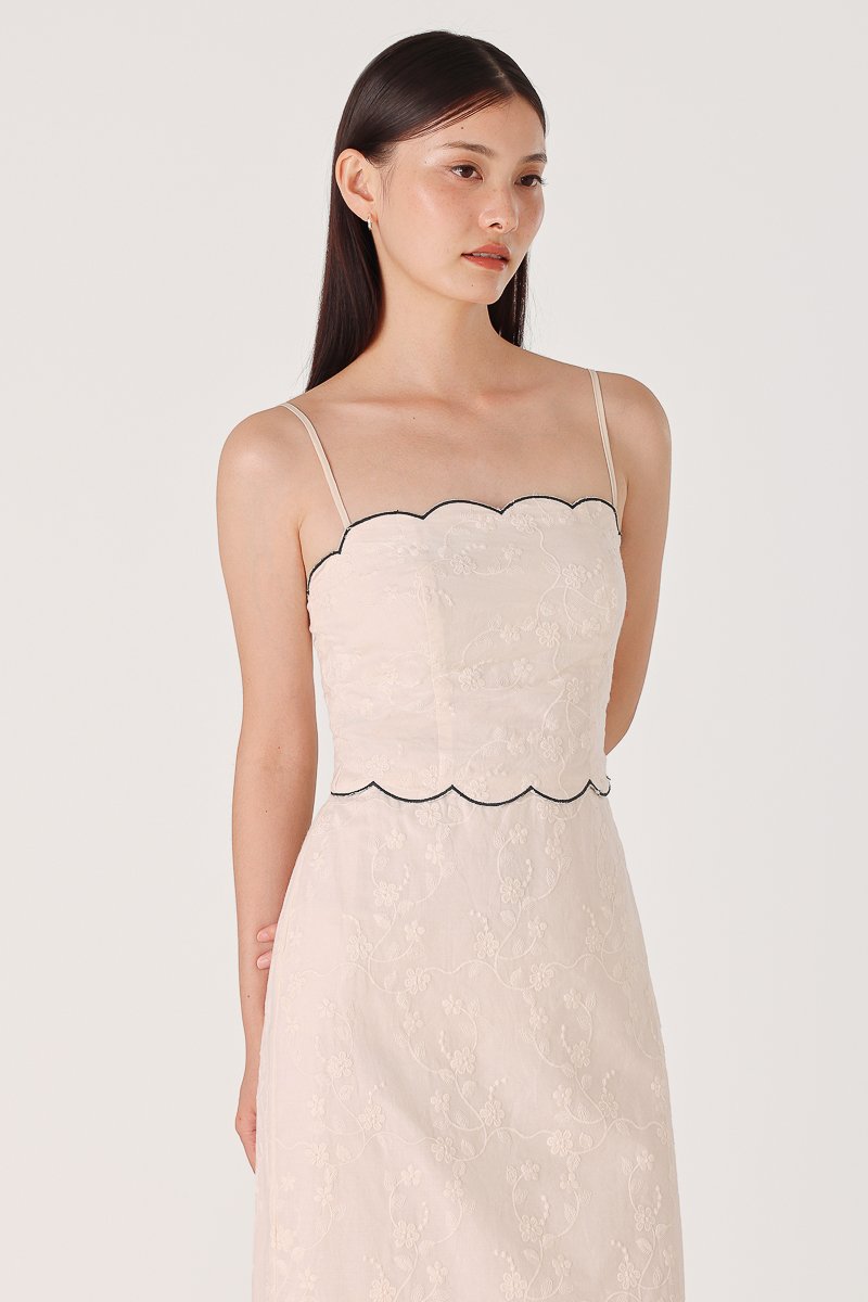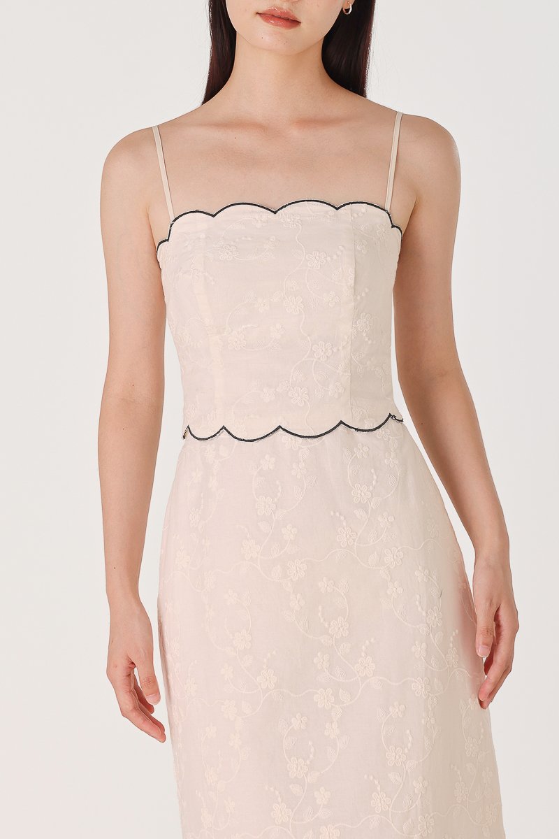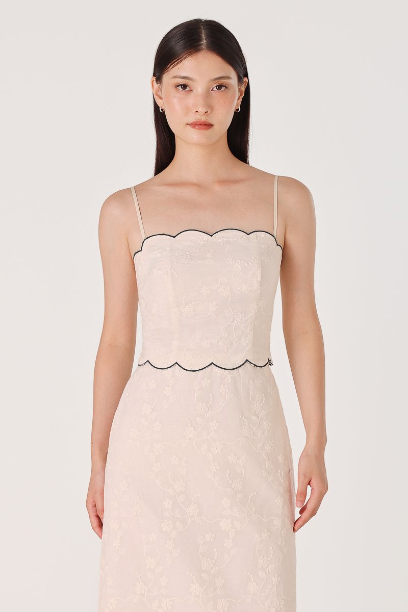FREESIA PADDED EMBROIDERED FLORAL CONTRAST SCALLOP TRIM TOP (OAT)