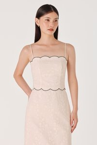 Enjoy 10% off per set if you purchase both Freesia Padded Embroidered Floral Contrast Scallop Trim Top (in any size/color) & Freesia Embroidered Floral Contrast Scallop Hem Midaxi Skirt (in any size/color) here.
