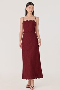 Enjoy 10% off per set if you purchase both Freesia Padded Embroidered Floral Contrast Scallop Trim Top (in any size/color) & Freesia Embroidered Floral Contrast Scallop Hem Midaxi Skirt (in any size/color) here.