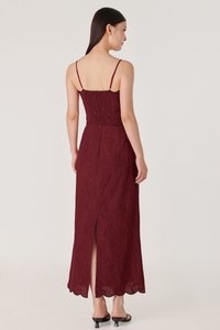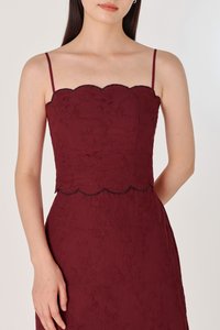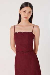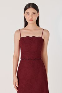 FREESIA PADDED EMBROIDERED FLORAL CONTRAST SCALLOP TRIM TOP (WINE)