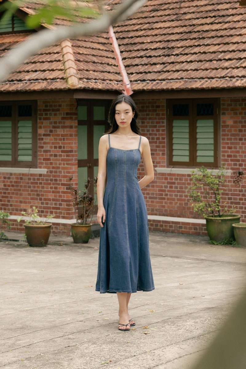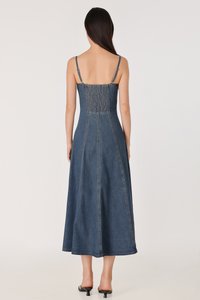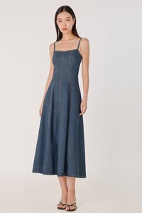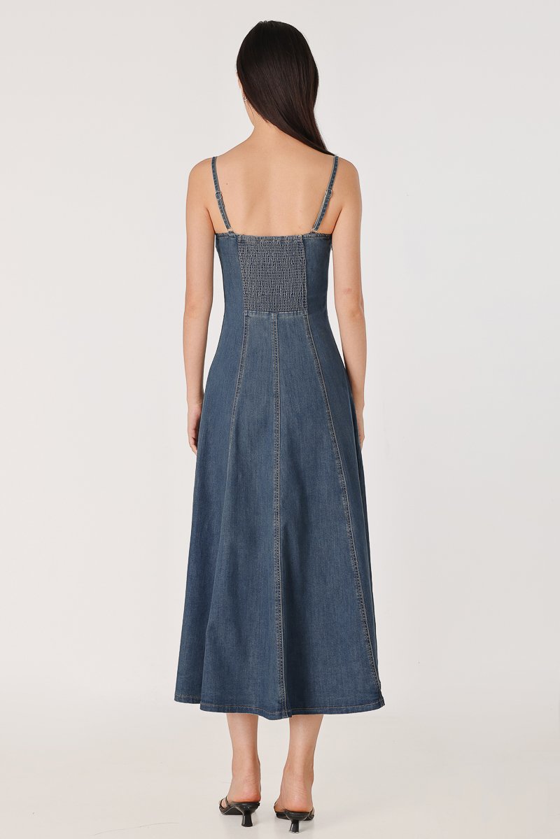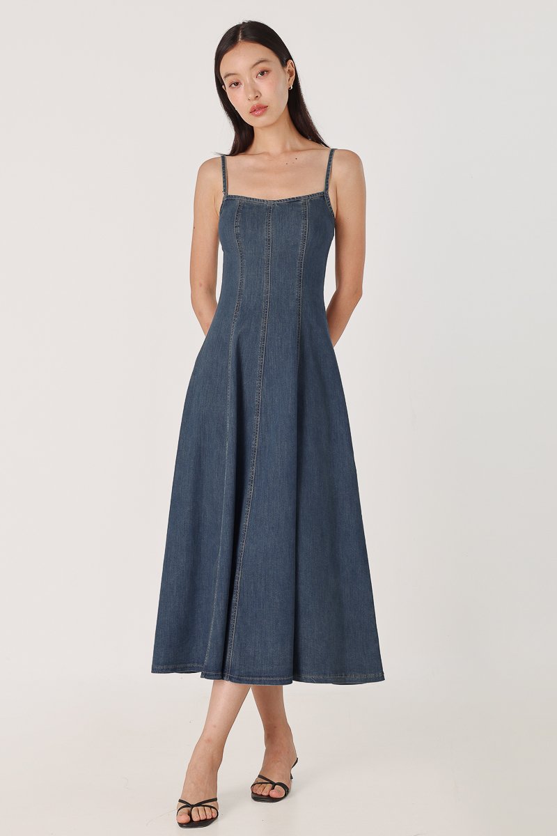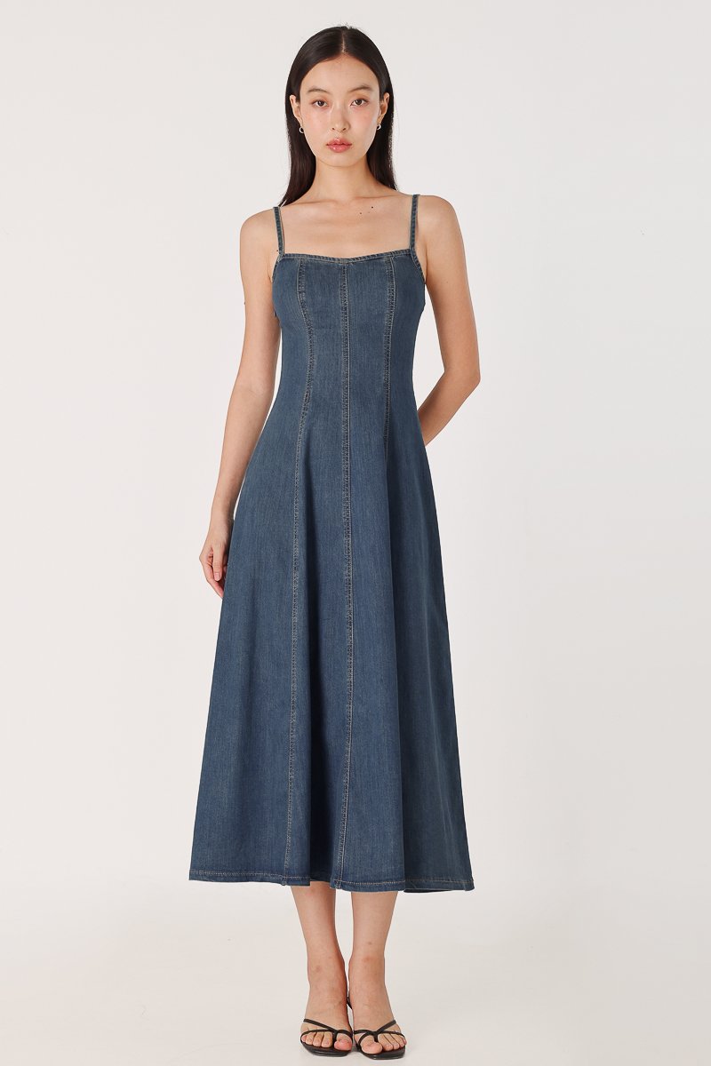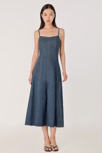 GOOD GRACE PANEL FLARE DENIM MIDAXI DRESS