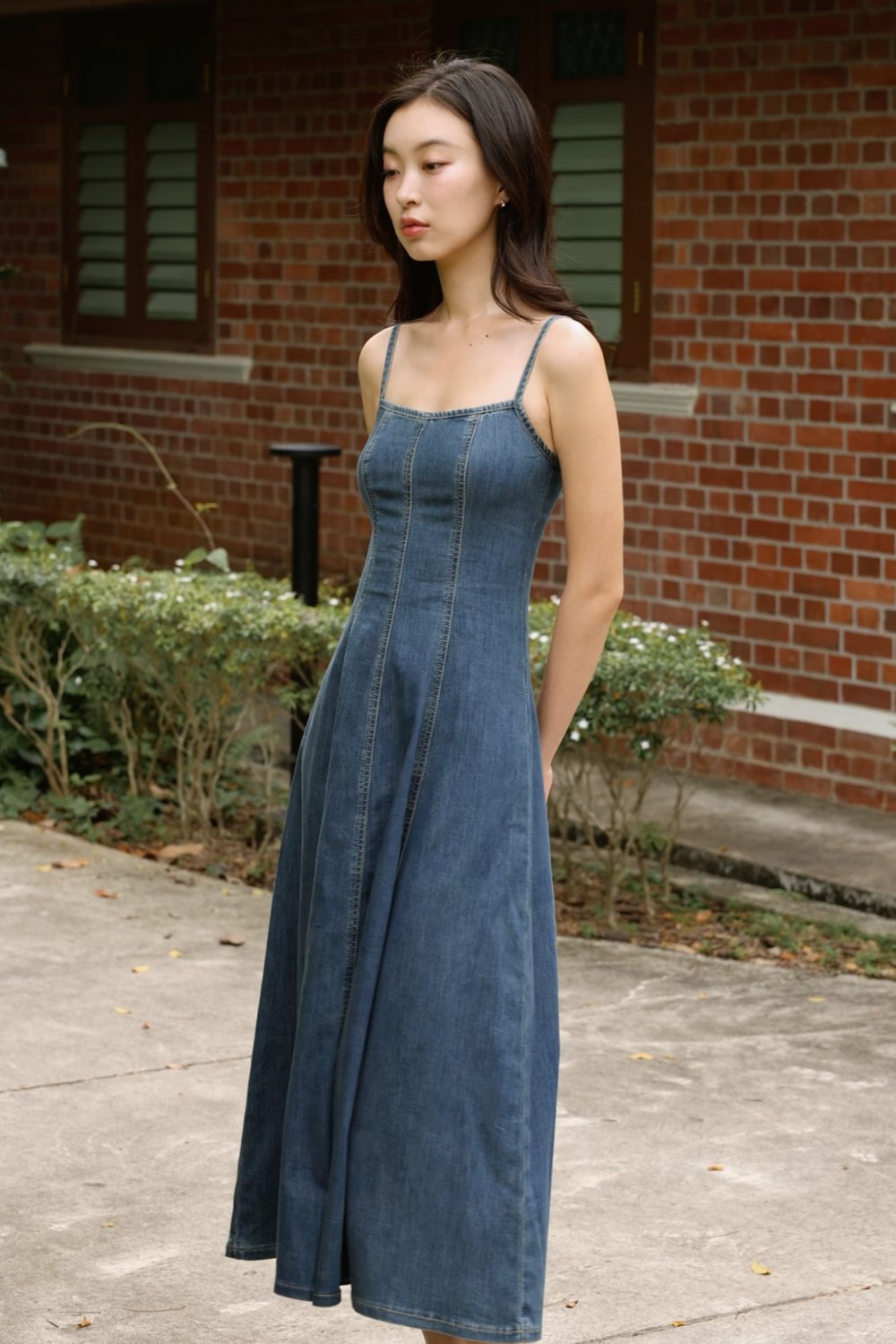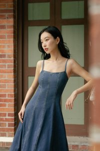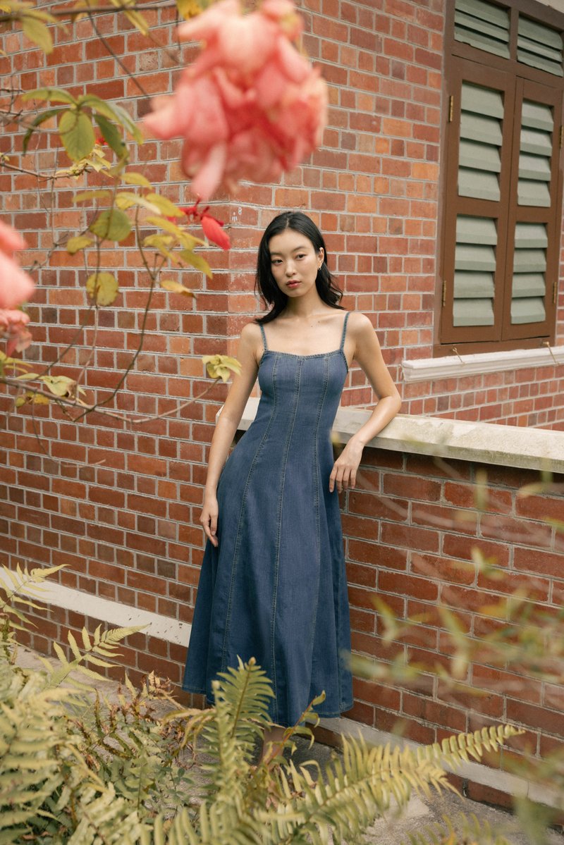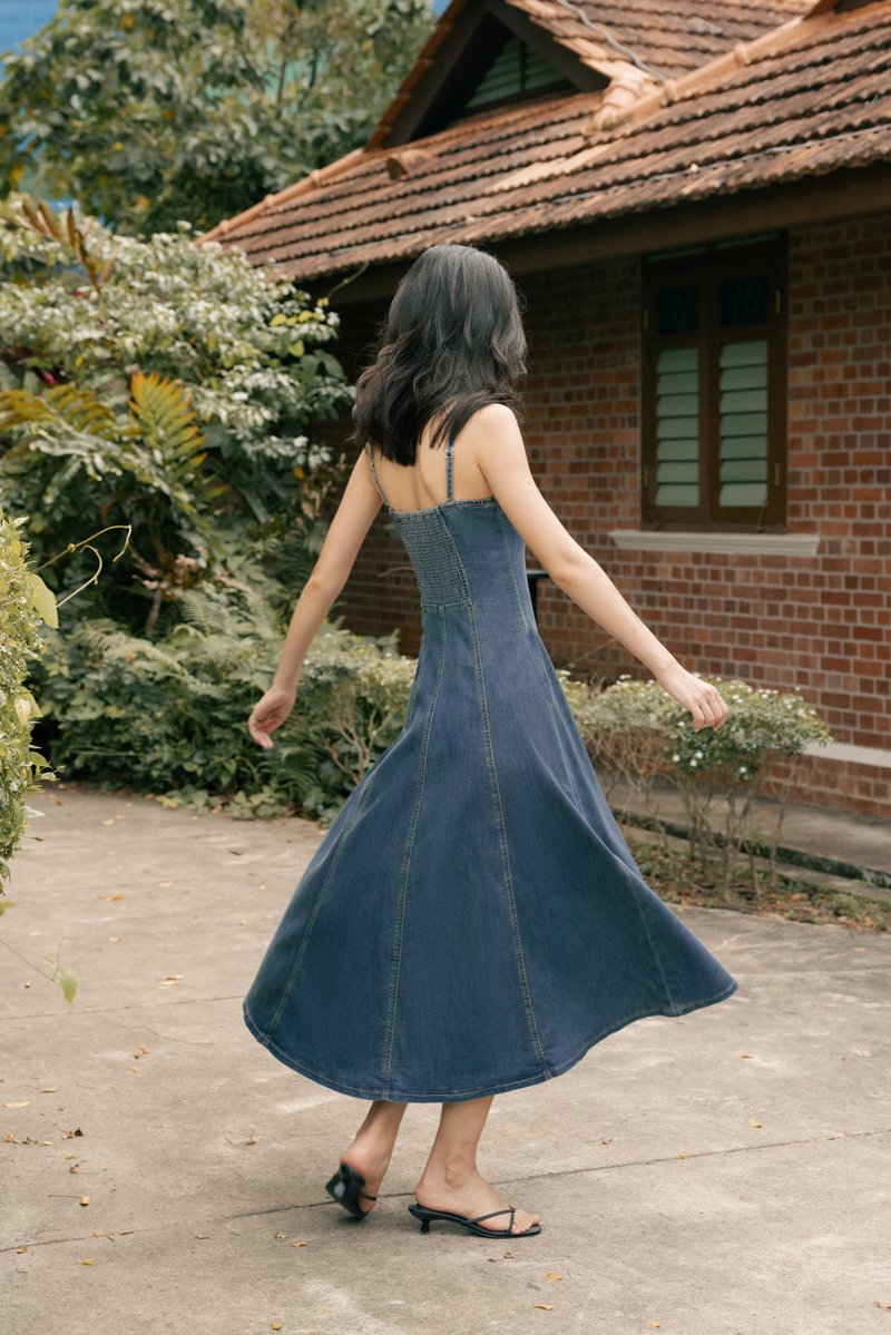 GOOD GRACE PANEL FLARE DENIM MIDAXI DRESS