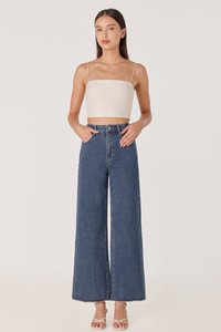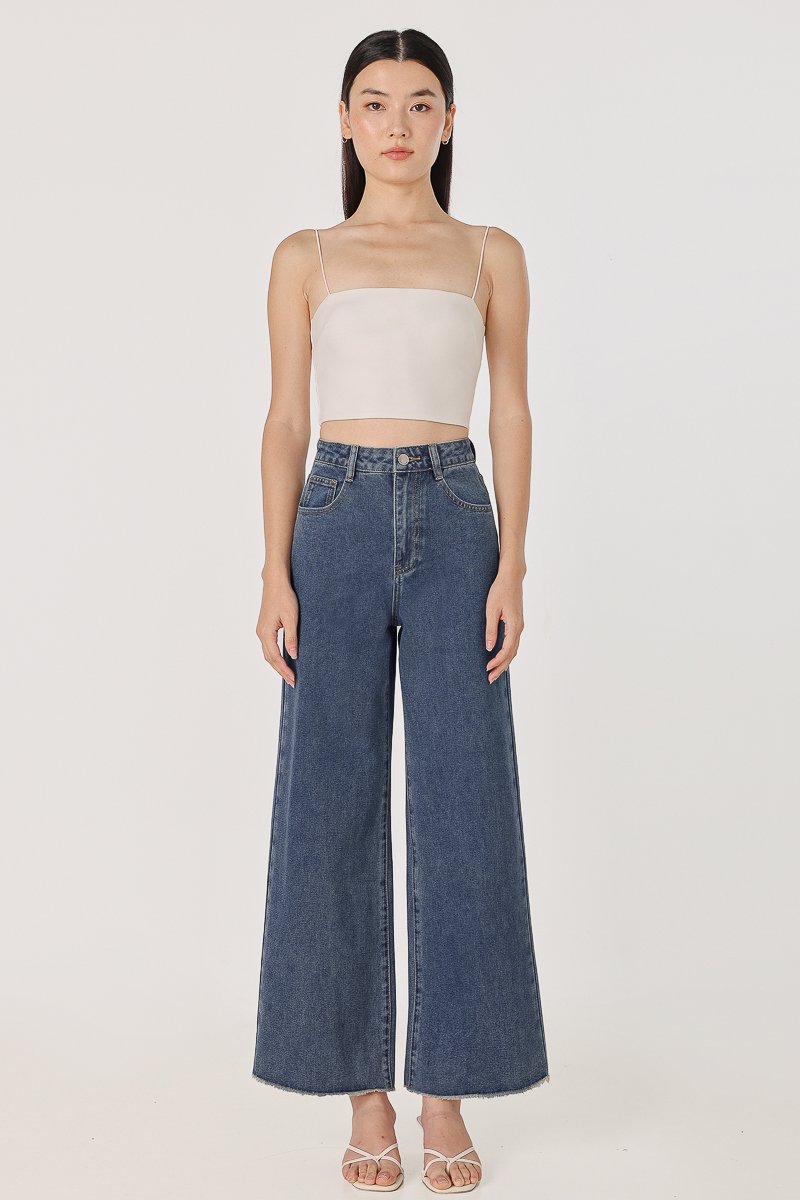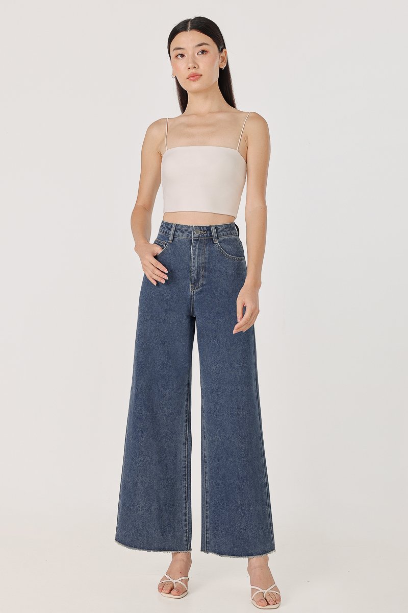 GROUNDBREAKER FRAYED HEM DENIM JEANS - PETITE (DARK WASHED)