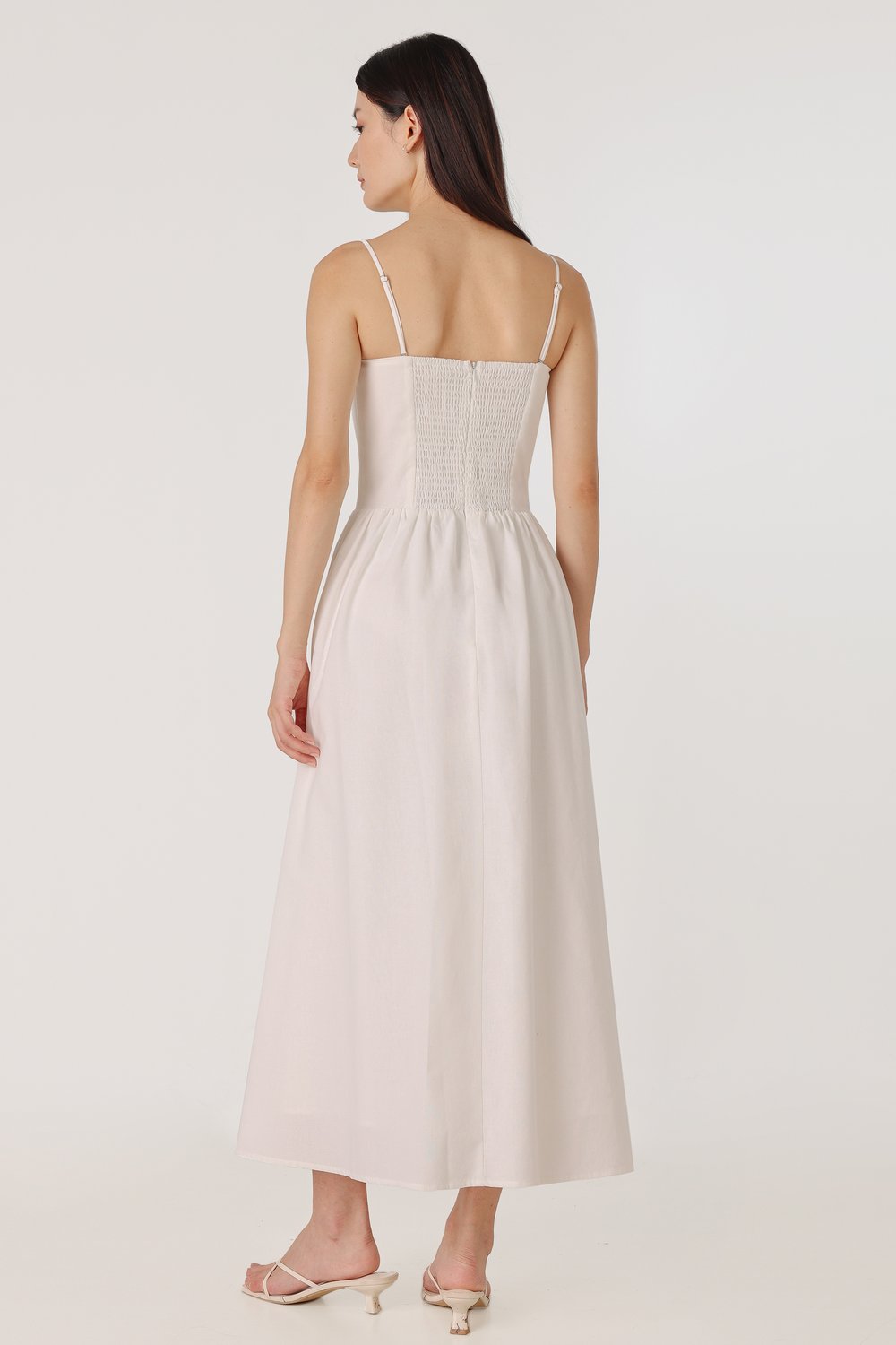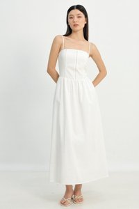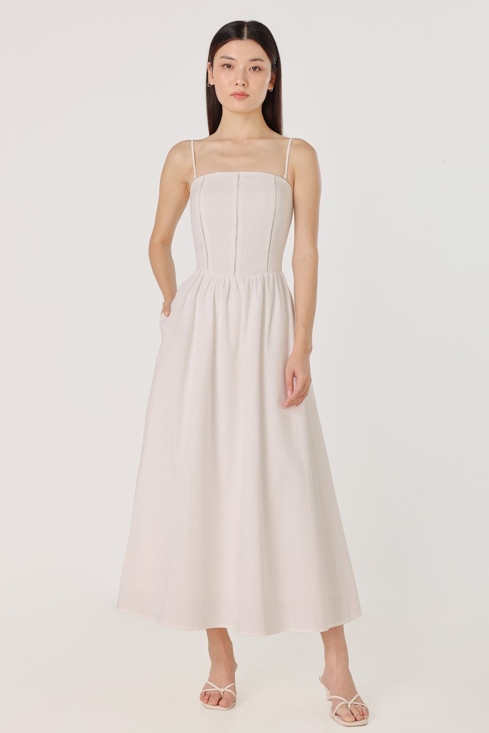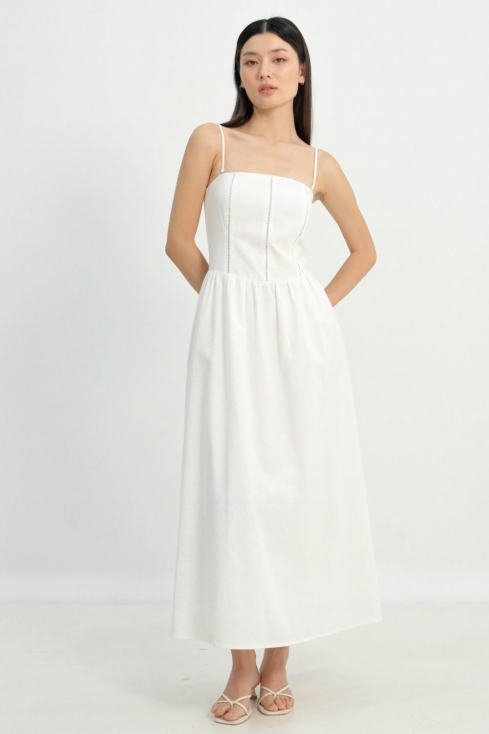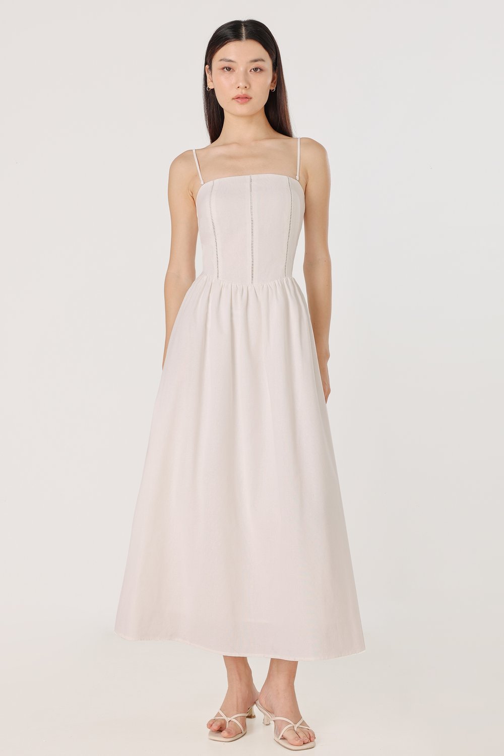 HARTLIE PADDED LINEN EYELET INSERT TWO-WAY MIDAXI DRESS *BFF*