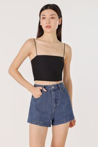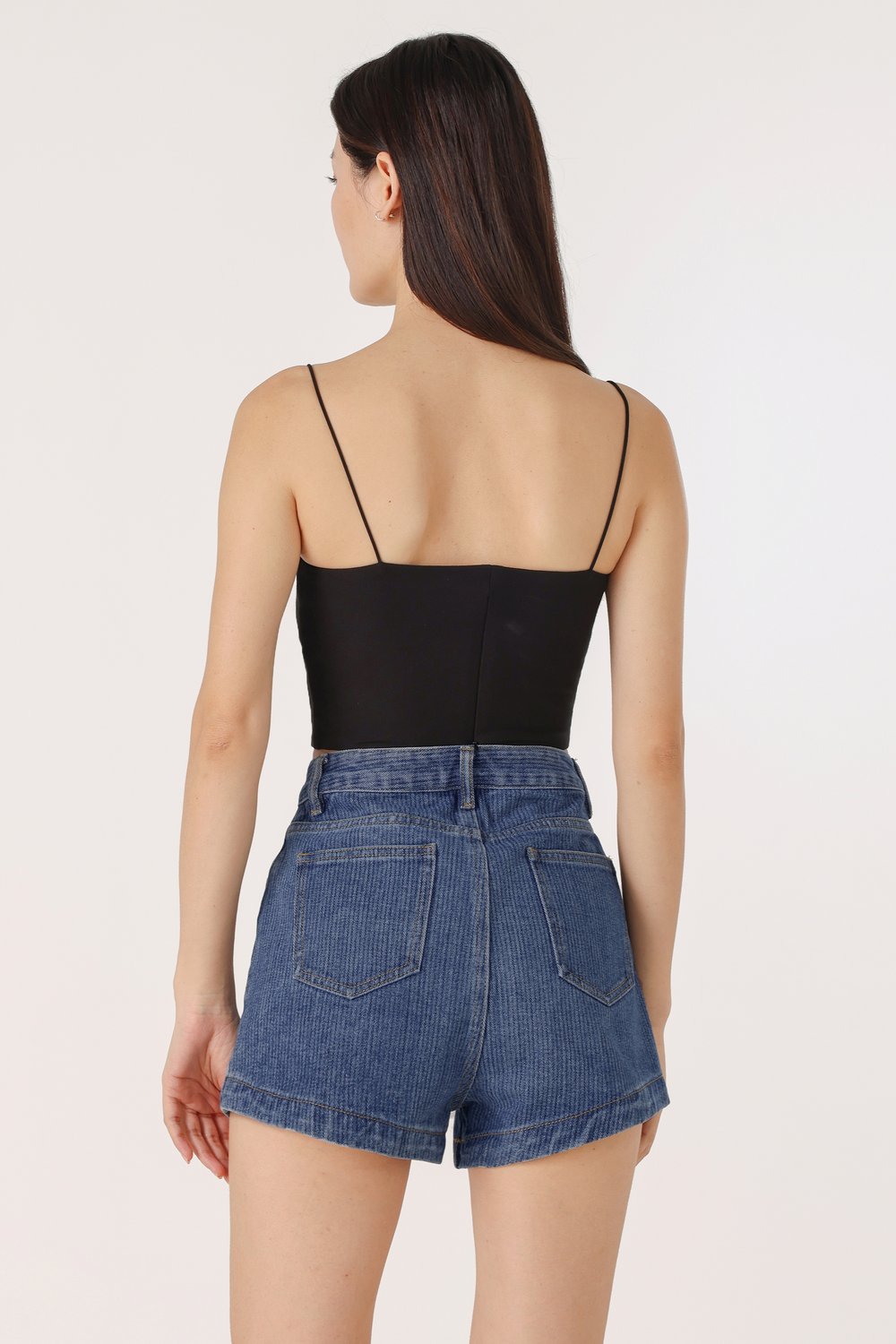 ILLIE STRIPED BASIC DENIM SHORTS (DARK WASHED) *BFF*