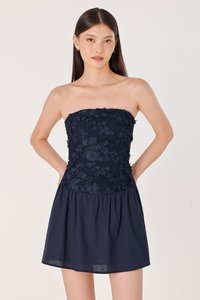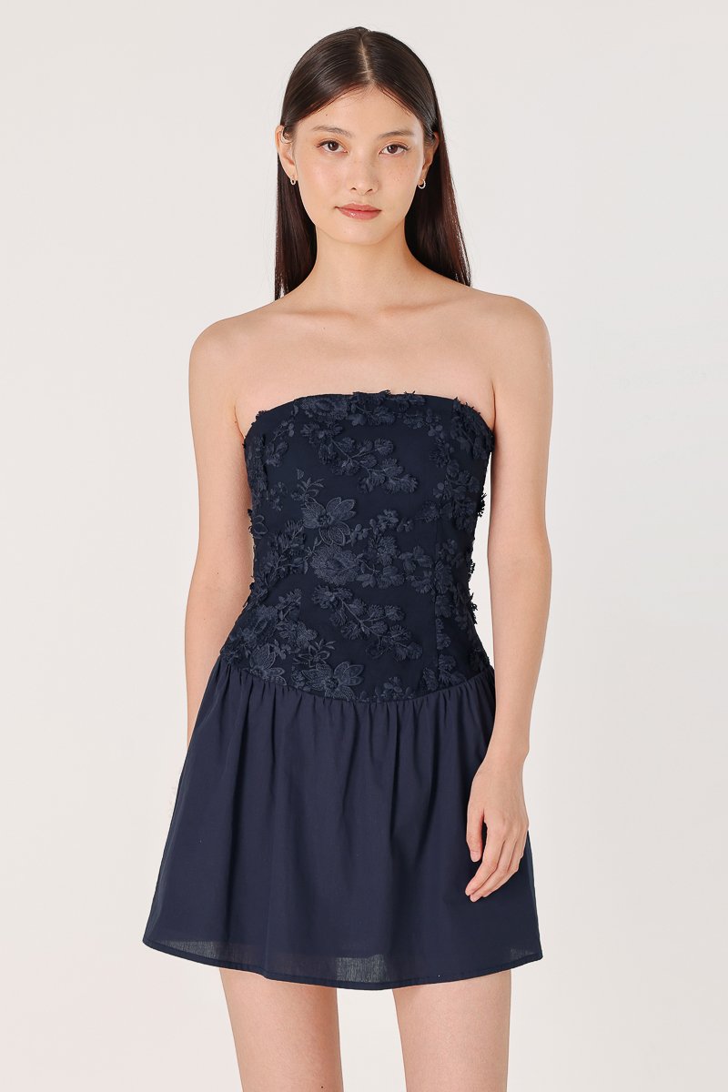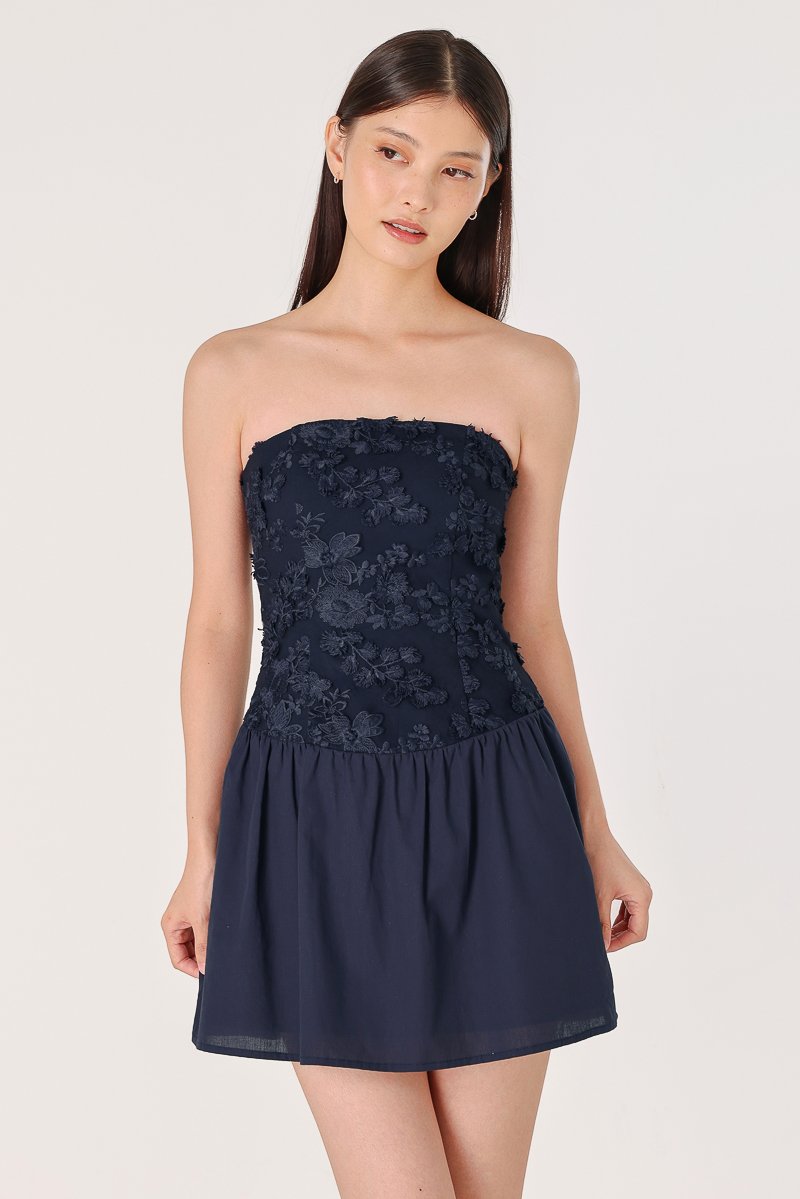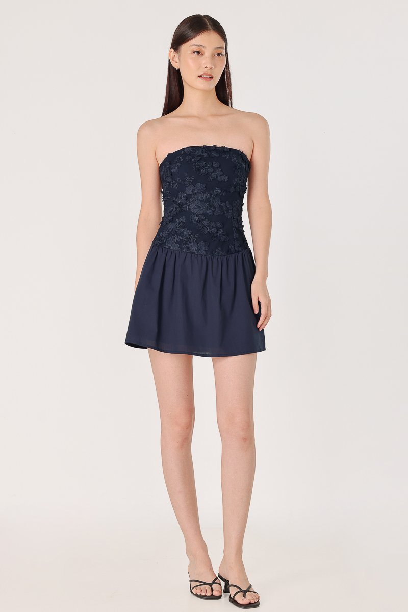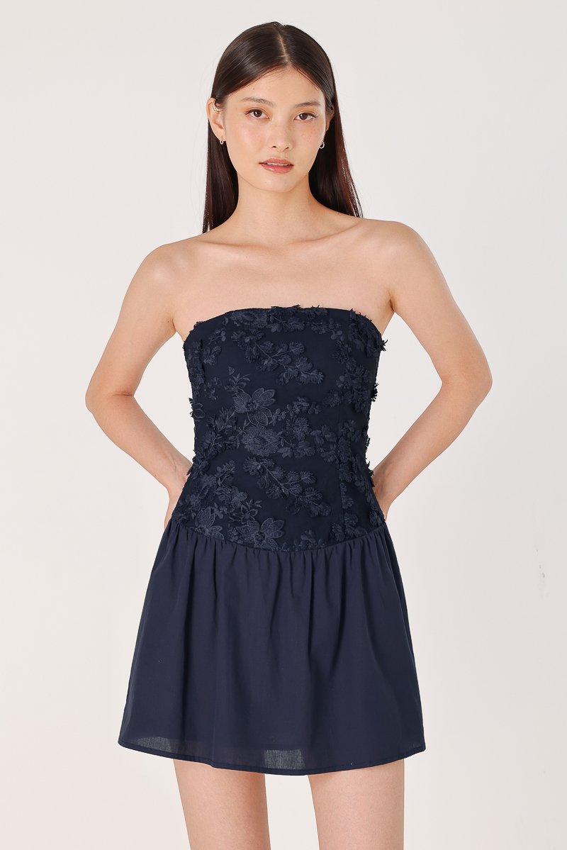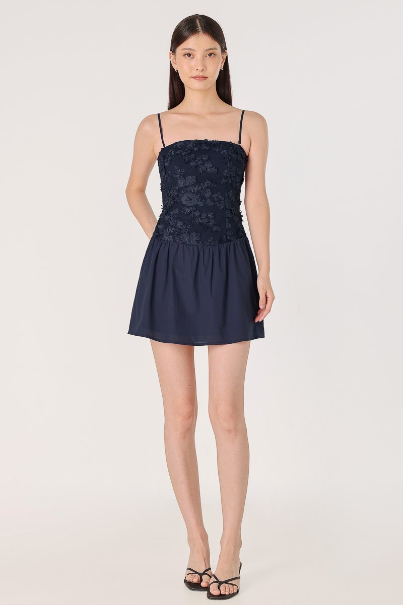 IRIS PADDED EMBROIDERED FLORAL MESH TWO-WAY SKORTS DRESS (MIDNIGHT BLUE)