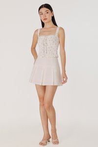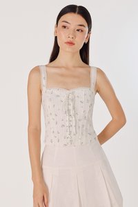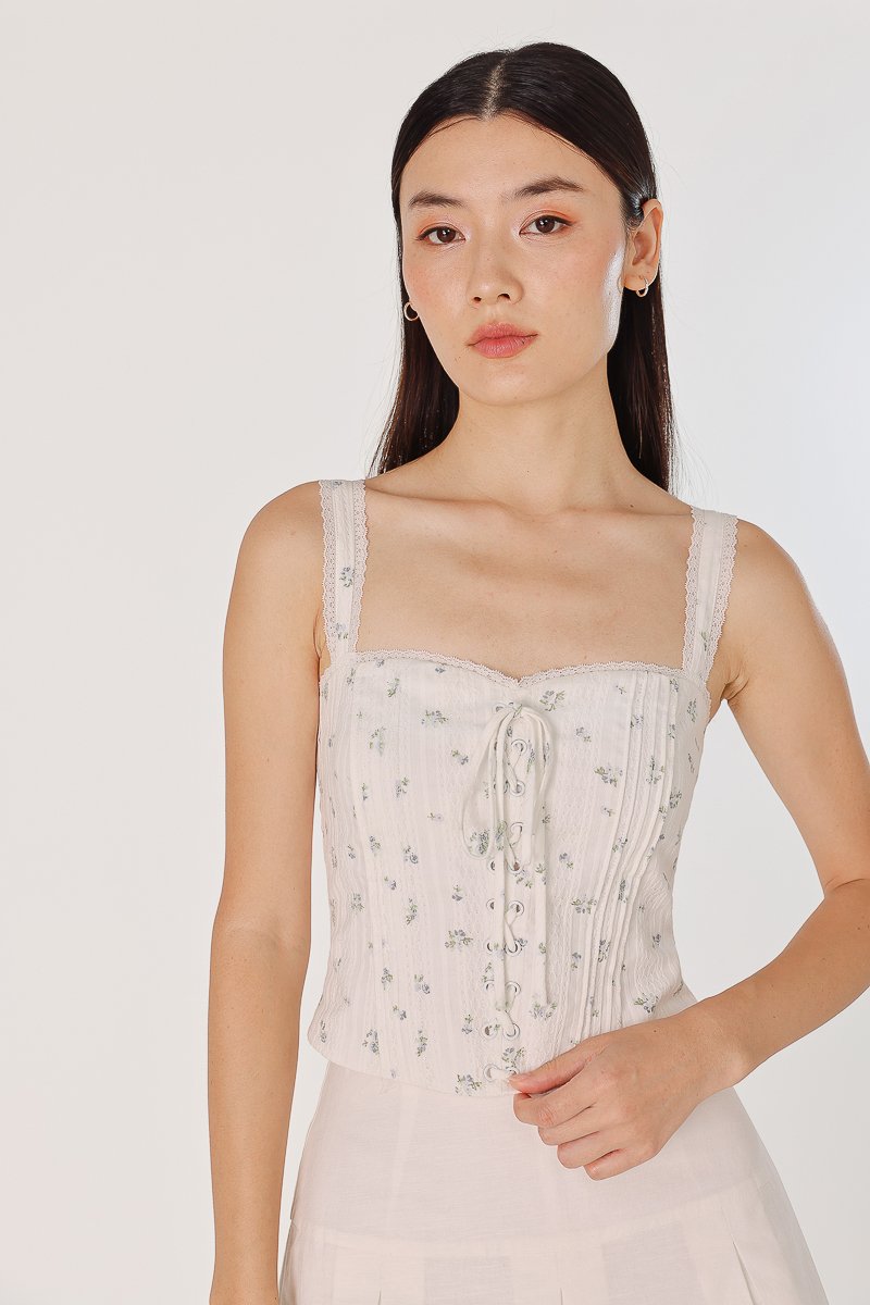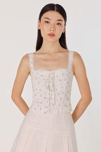 IVANNA PADDED FLORAL PINTUCK CORSET TOP