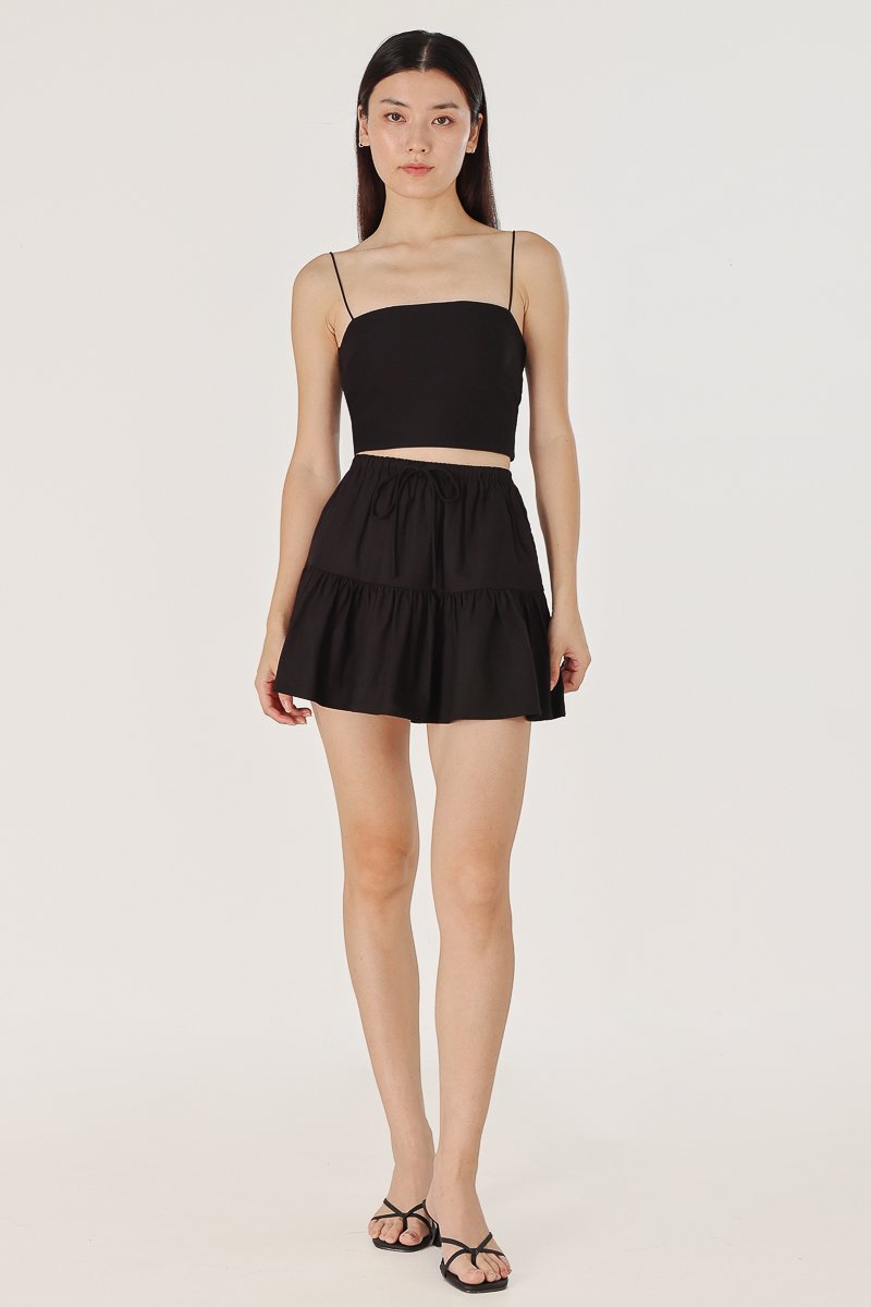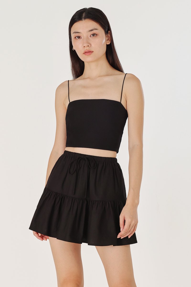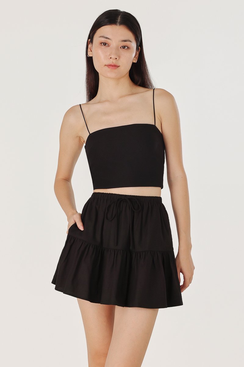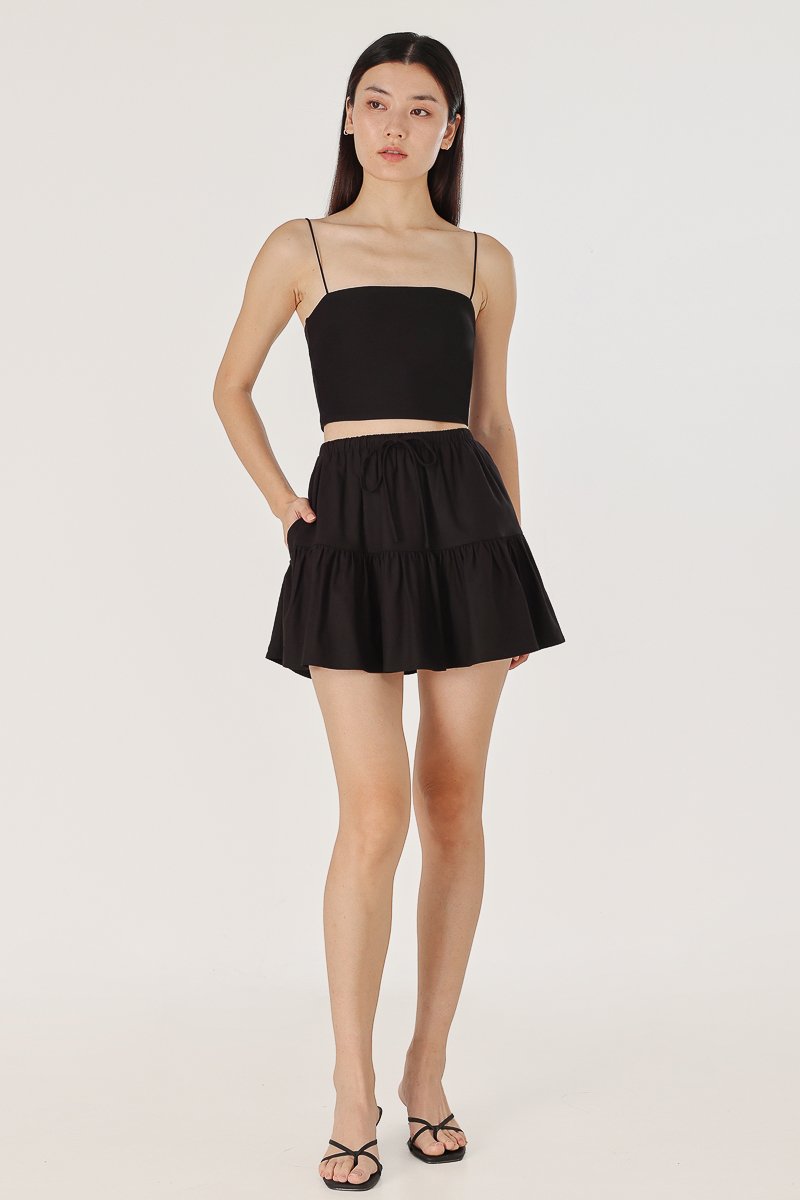IVONNE LINEN RIBBON DROPWAIST SKORTS (BLACK)