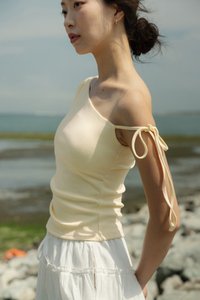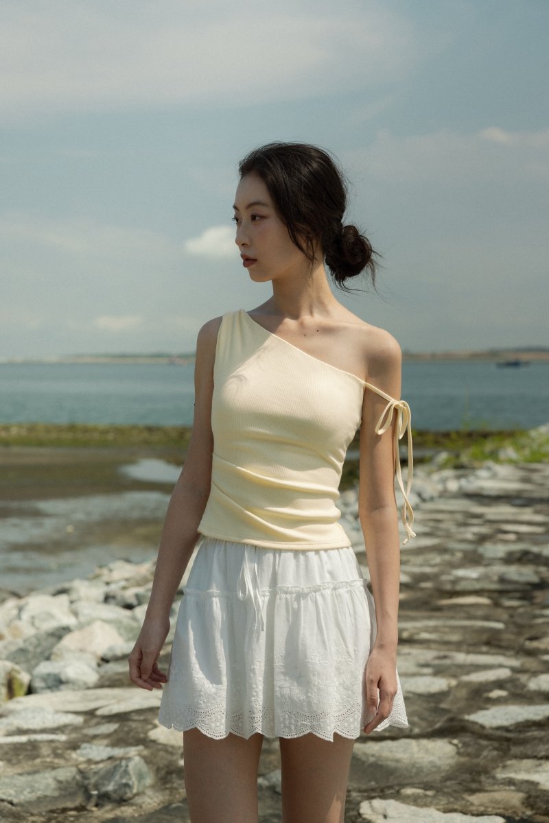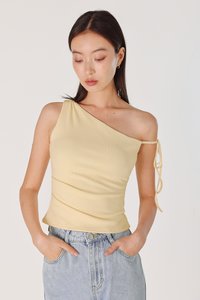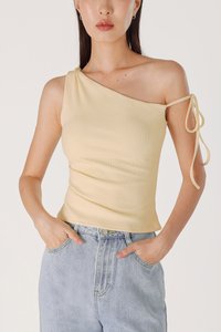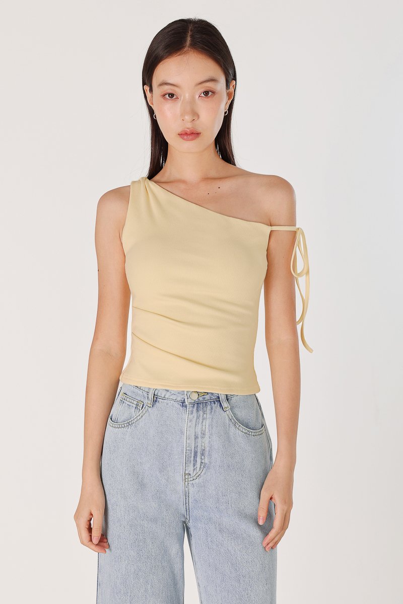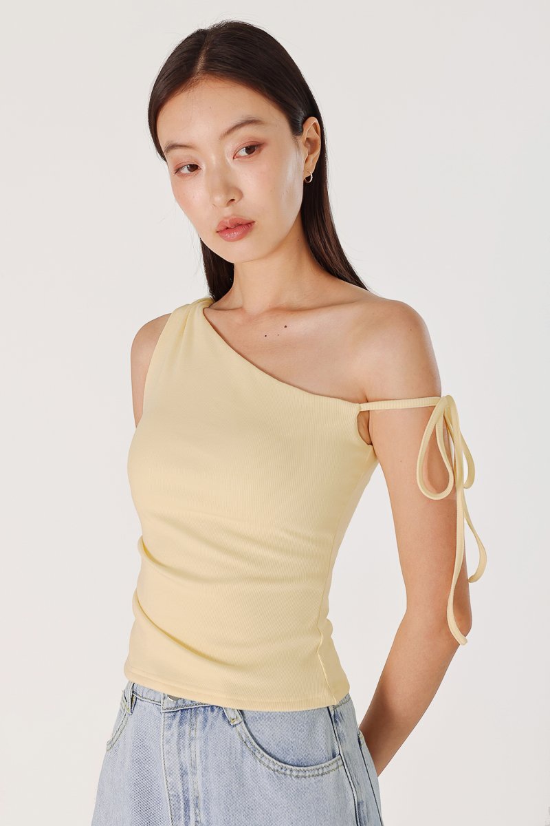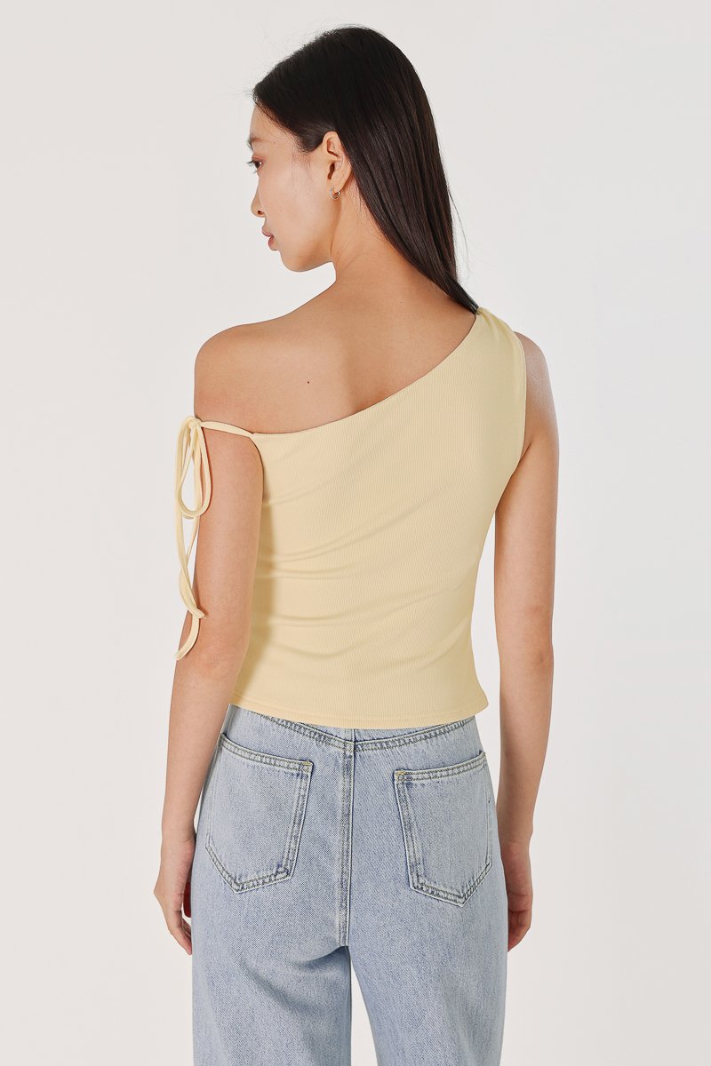 JARELLE PADDED OFF-SHOULDER TIE RIBBON RIBBED TOP (YELLOW)