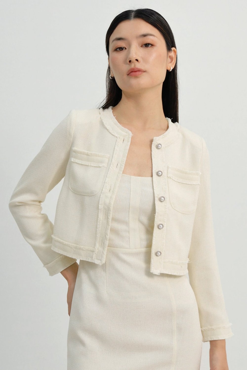 JAZELLE FRAYED TWEED POCKET BUTTON JACKET (CHAMPAGNE) *BFF*