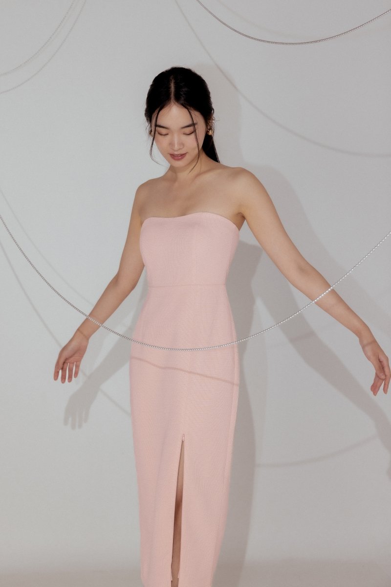 JAZELLE PADDED TWEED SWEETHEART TUBE MIDAXI DRESS (PINK)