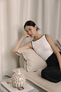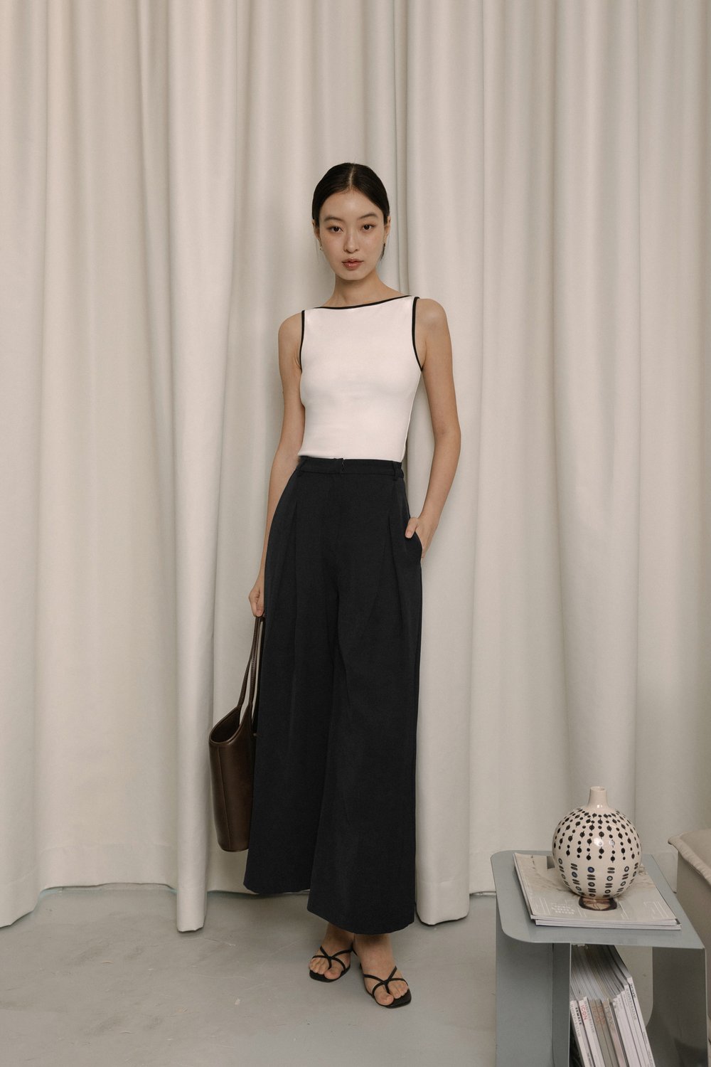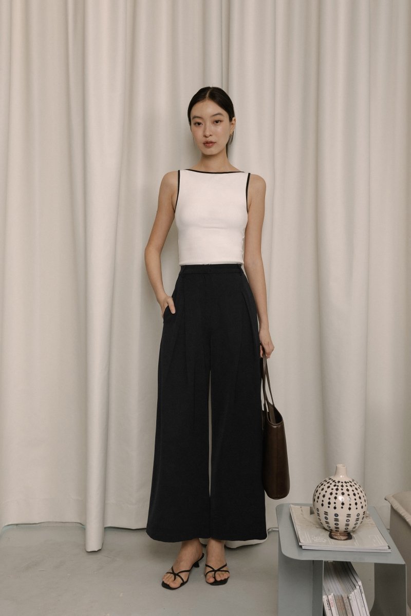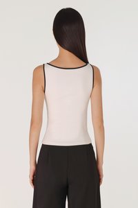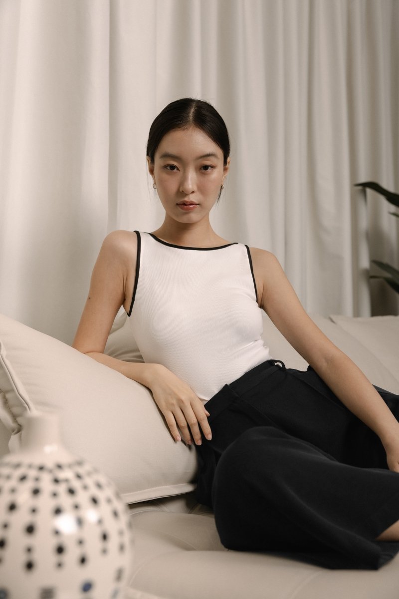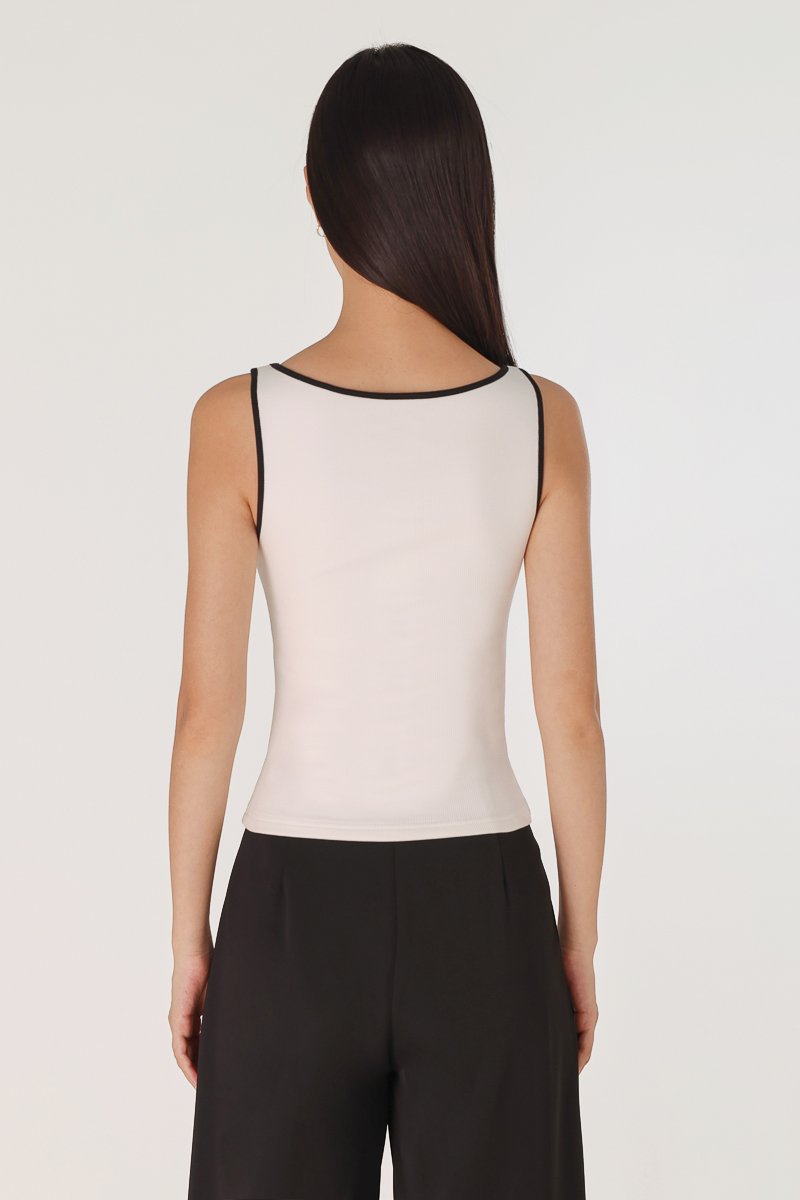 JERNELL PADDED CONTRAST TRIM RIBBED BOATNECK TOP (WHITE)