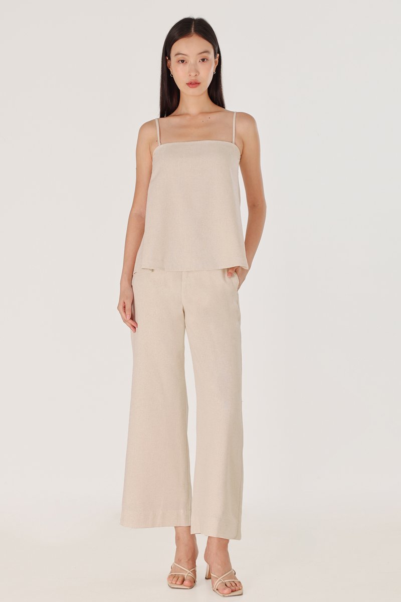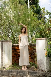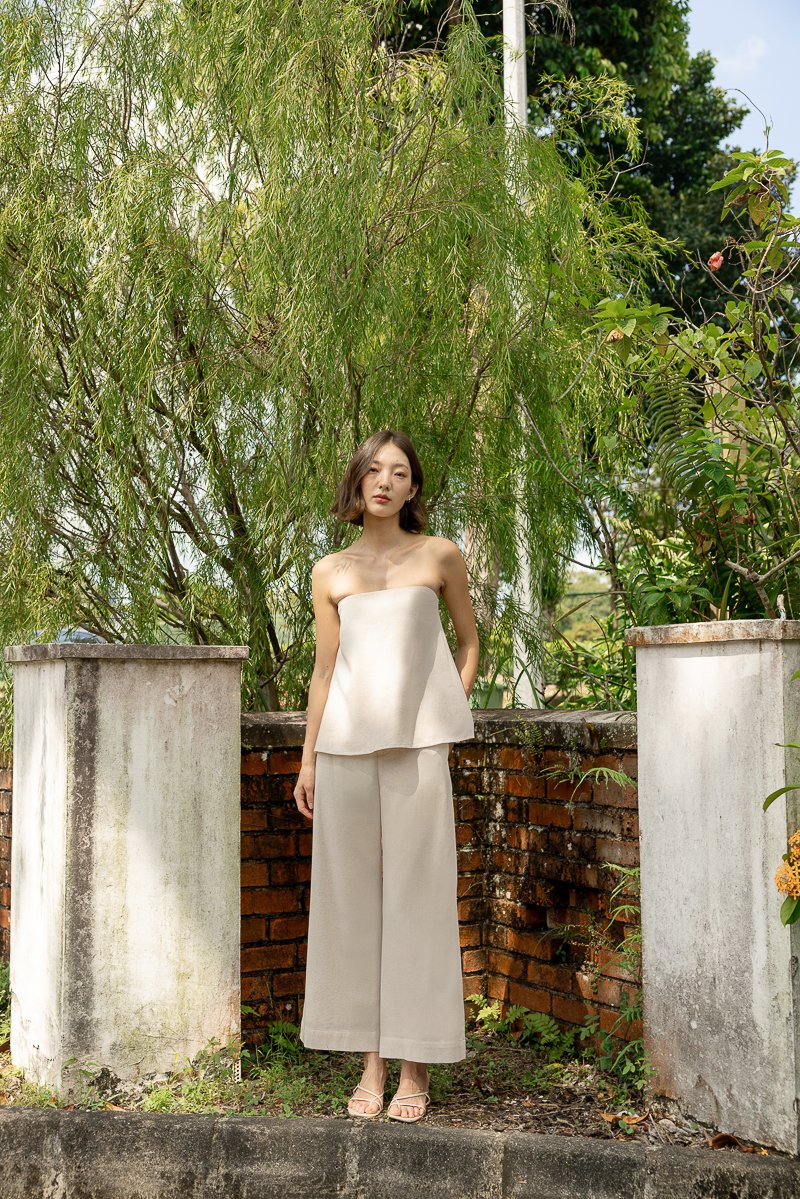 Enjoy 10% off per set if you purchase both Judith Padded Linen Two-Way Flare Top (in any size/color) & Judith Linen Front Clasp Wide Leg Pants (in any size/length/color) as a set here.