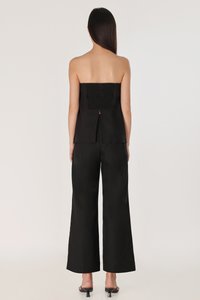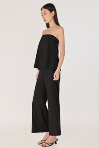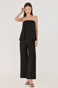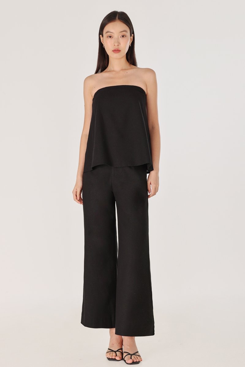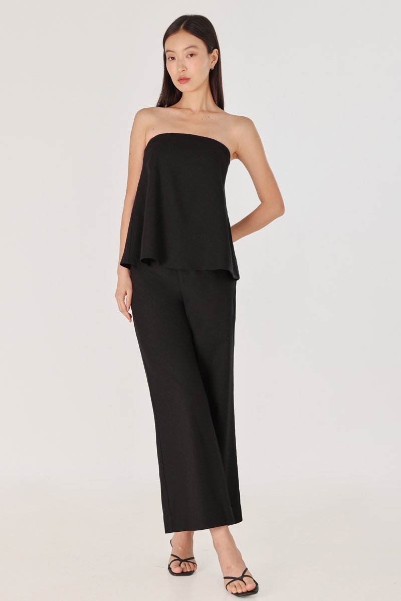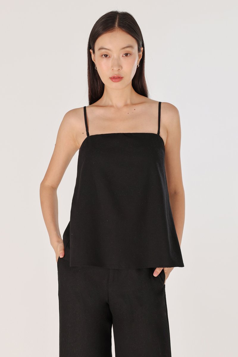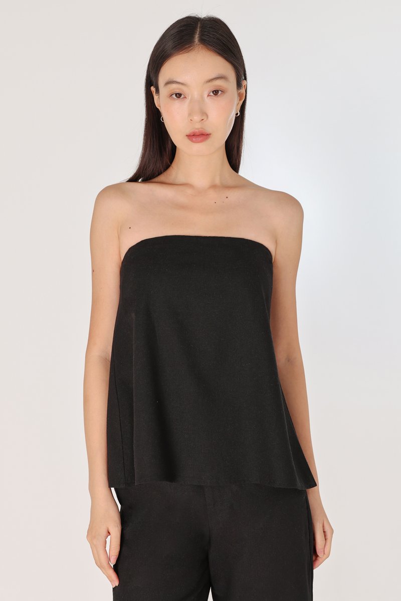 JUDITH PADDED LINEN TWO-WAY FLARE TOP (BLACK)