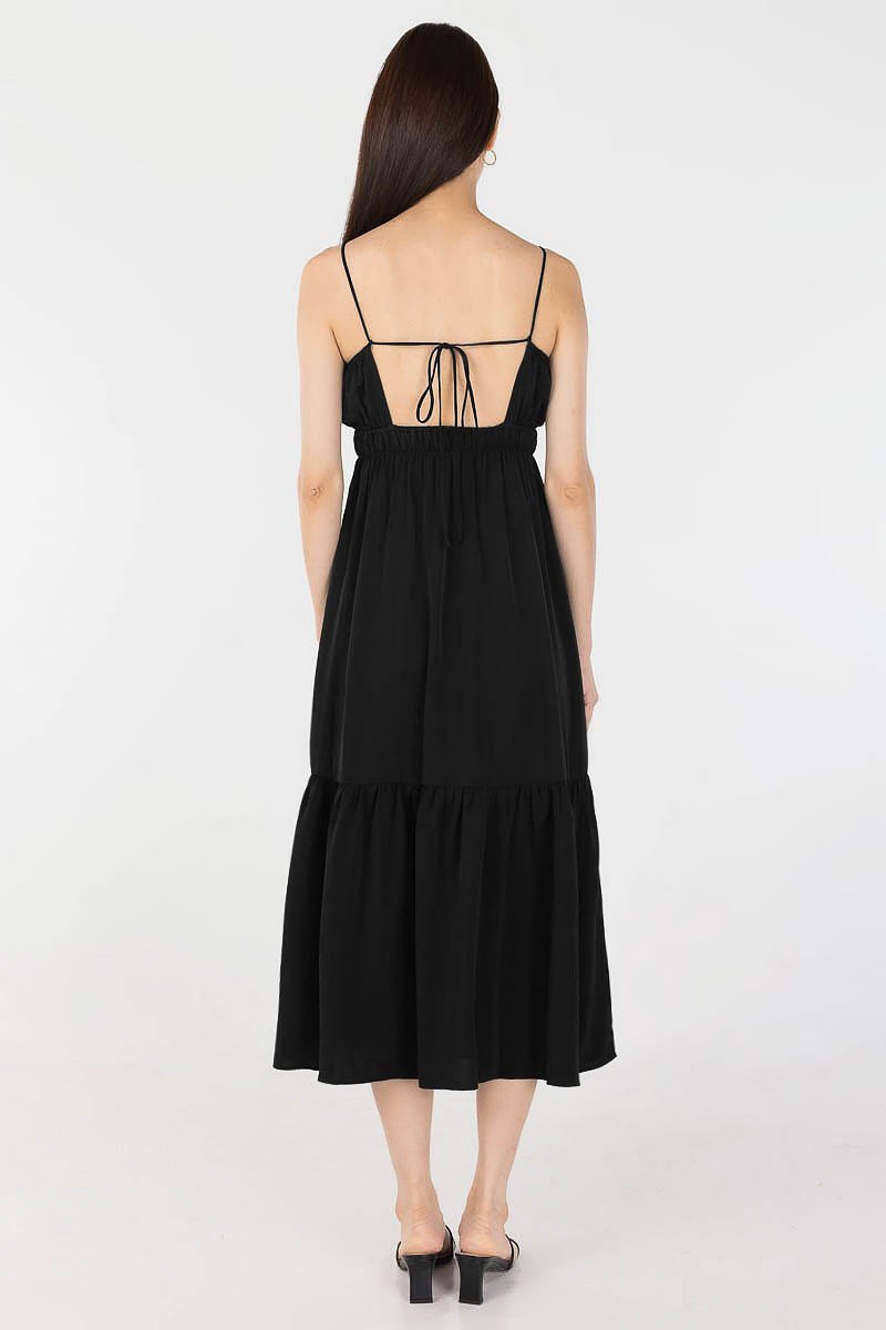 JULIET RUCHED TIE-BACK PADDED MAXI DRESS #MADEBYLOVET (BLACK)
