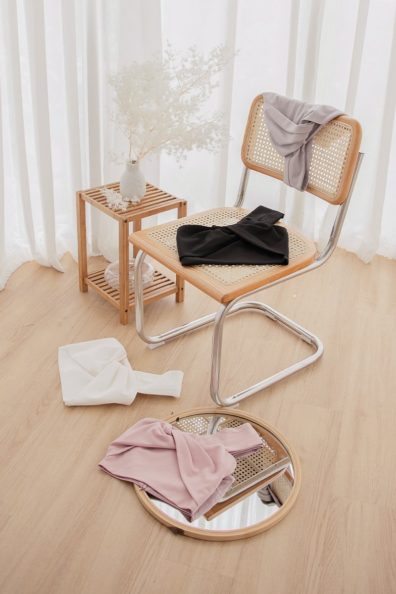 Note that fabric for White is slightly thicker as it did not undergo any Dye process. Therefore, it is slightly less stretchy compared to Black, Pink & Lilac.