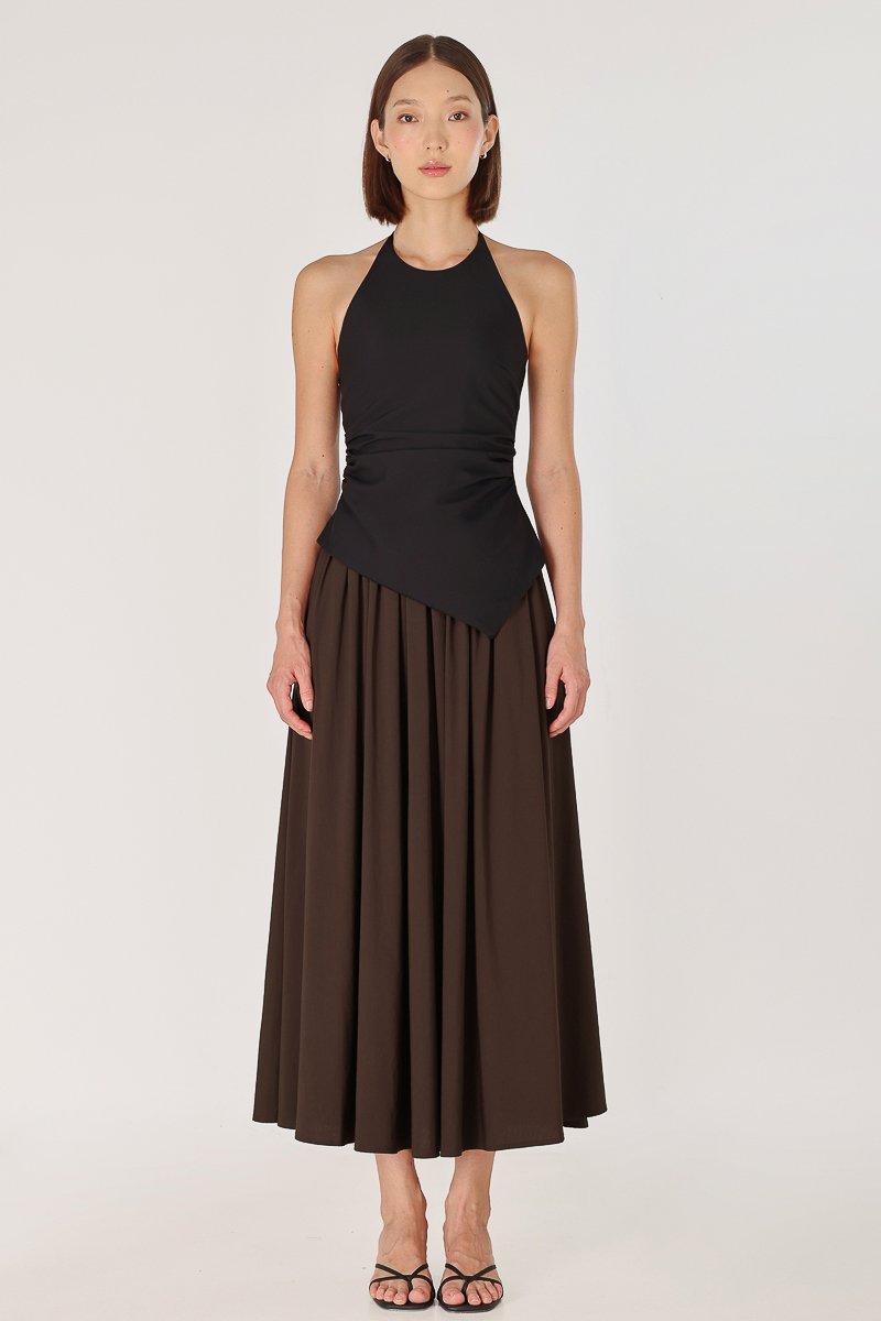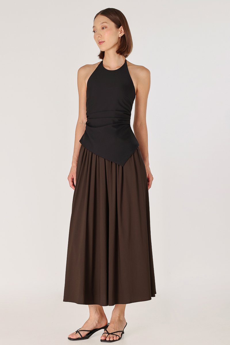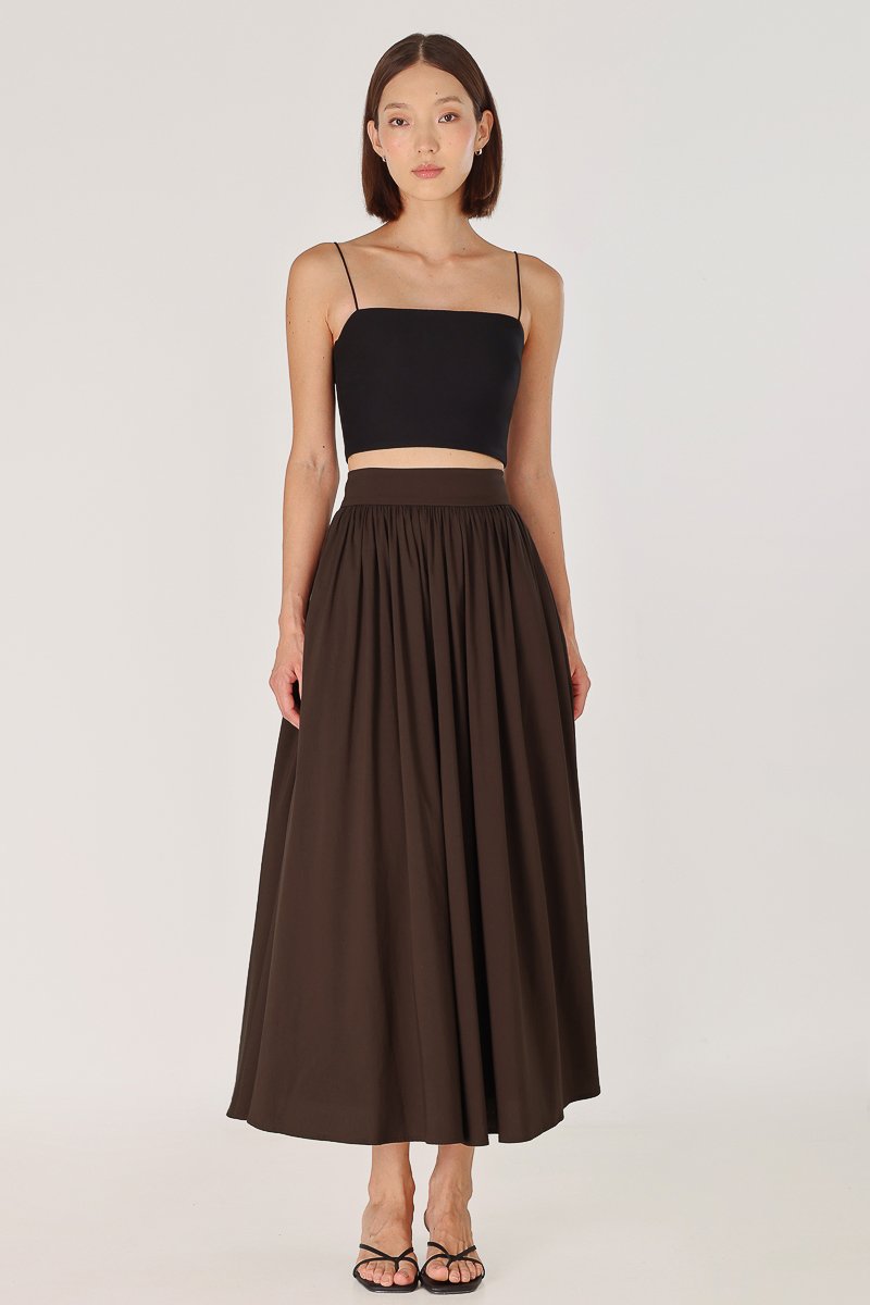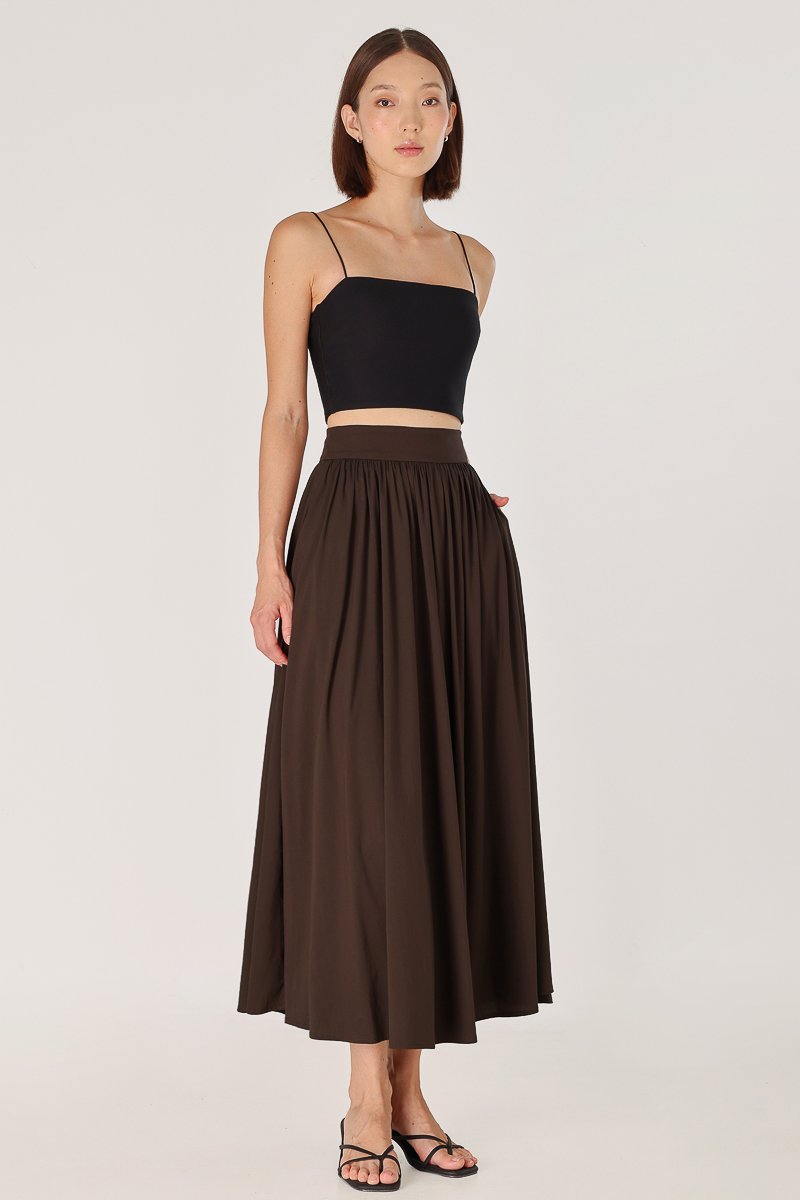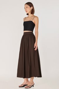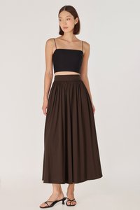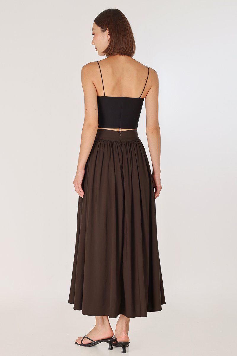 LAVERN THICK WAISTBAND FLARE MAXI SKIRT - REGULAR (BROWN)