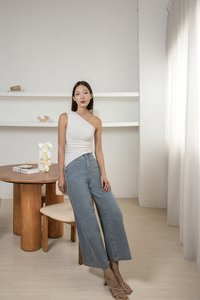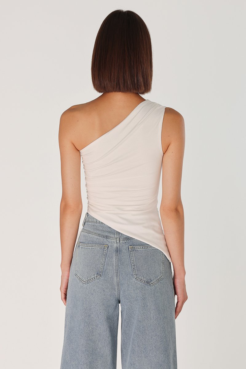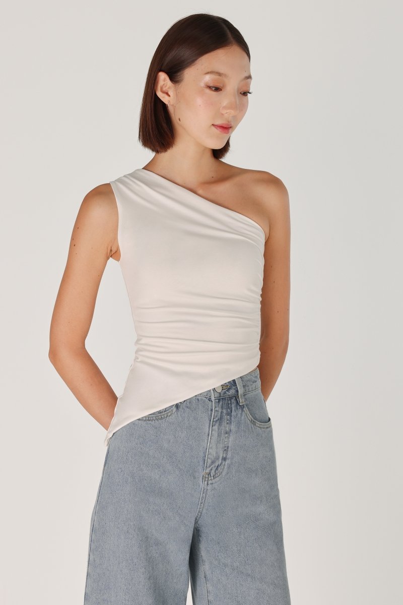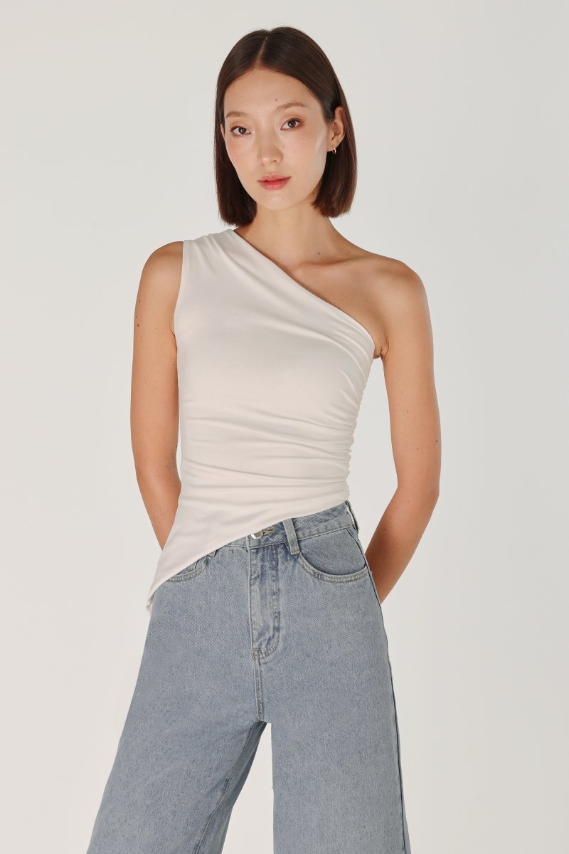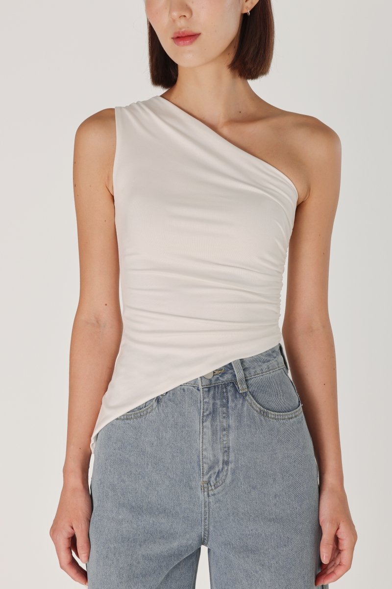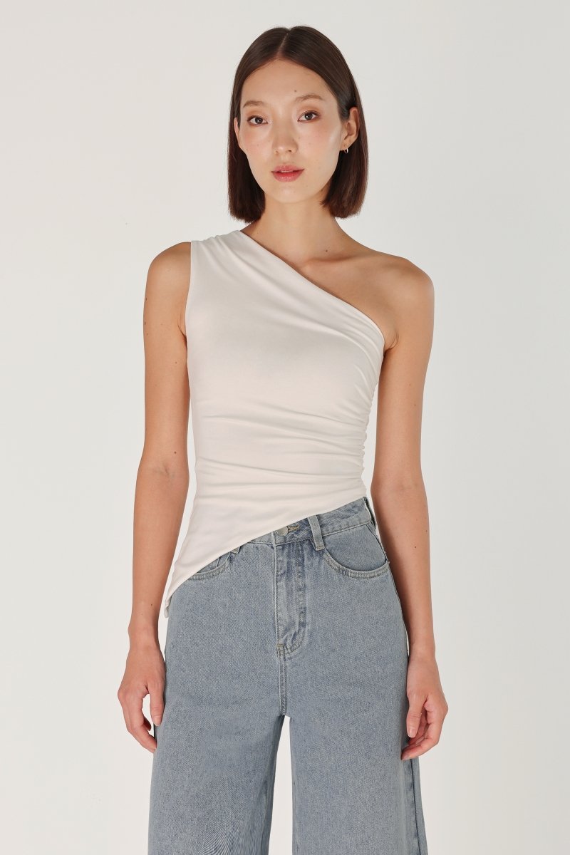 LENA PADDED RUCHED ASYMMETRICAL TOGA TOP (WHITE)