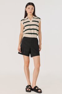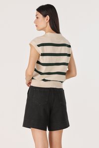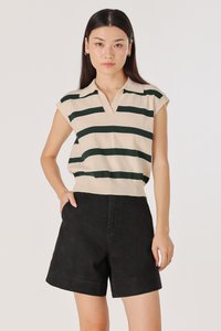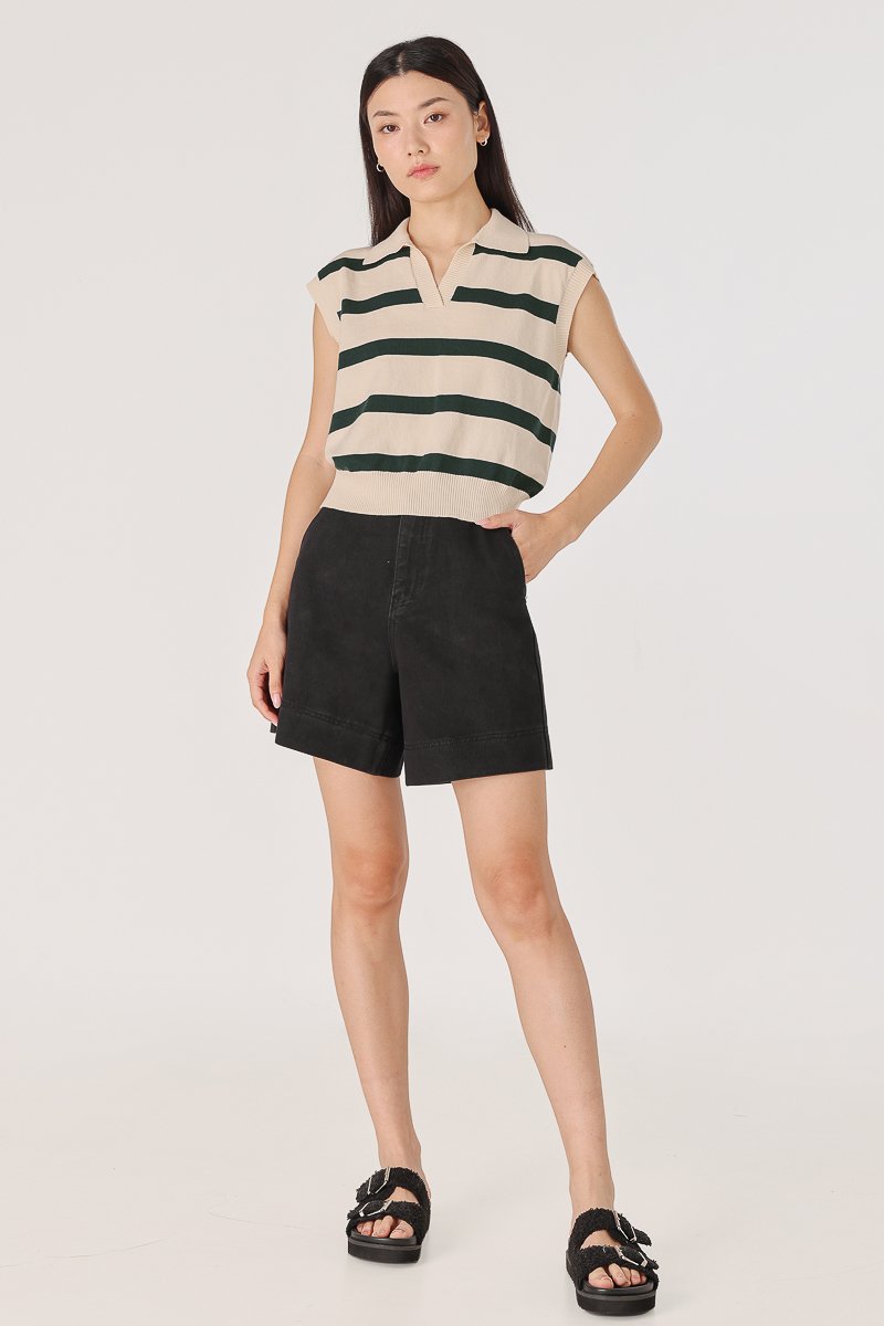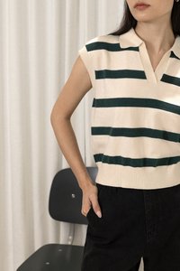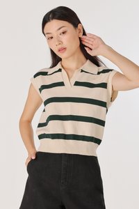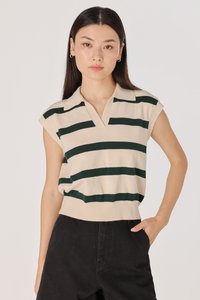 LEONOR STRIPED COLLARED BOXY KNIT TOP (CREAM WITH GREEN STRIPES)