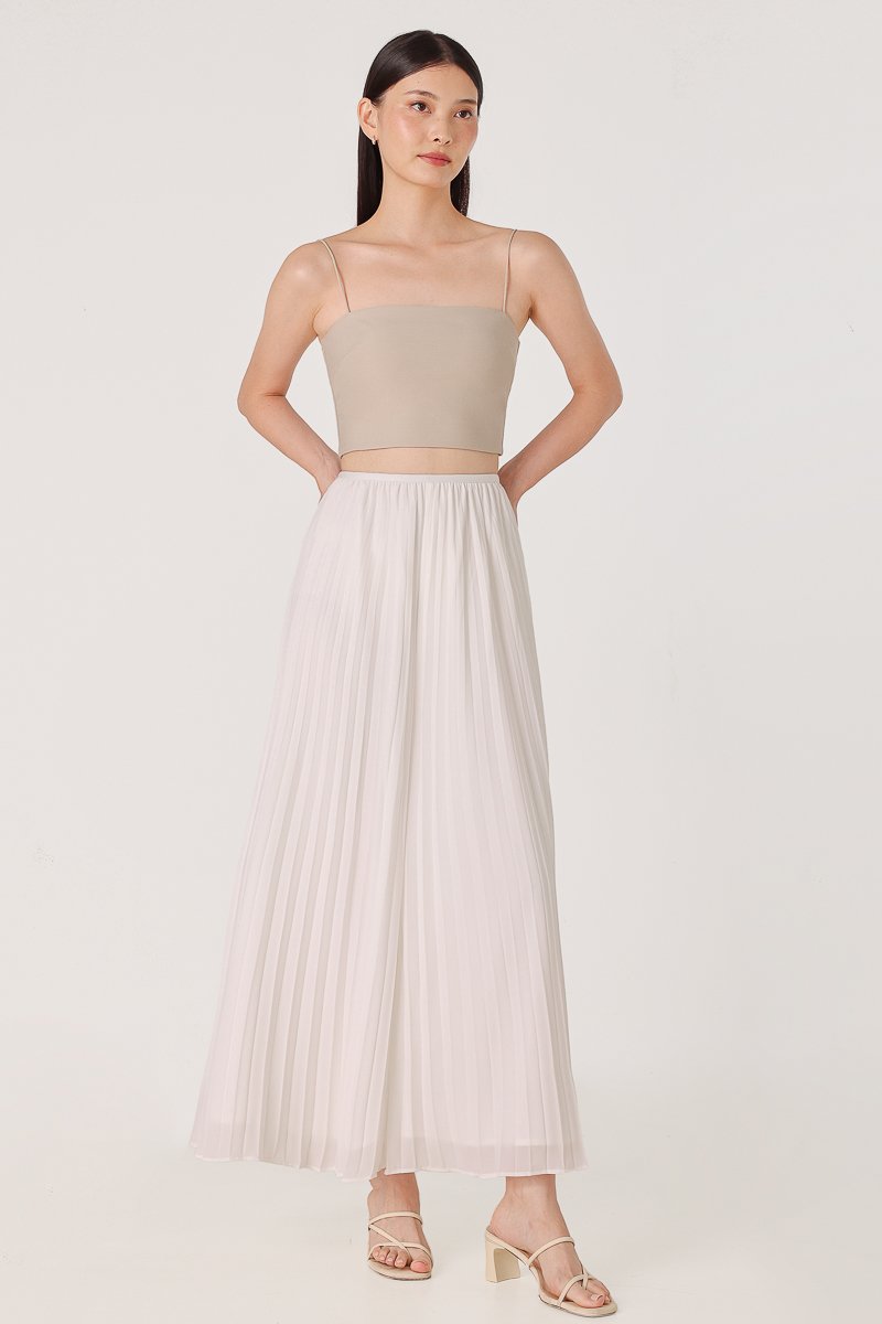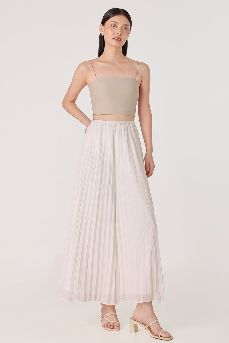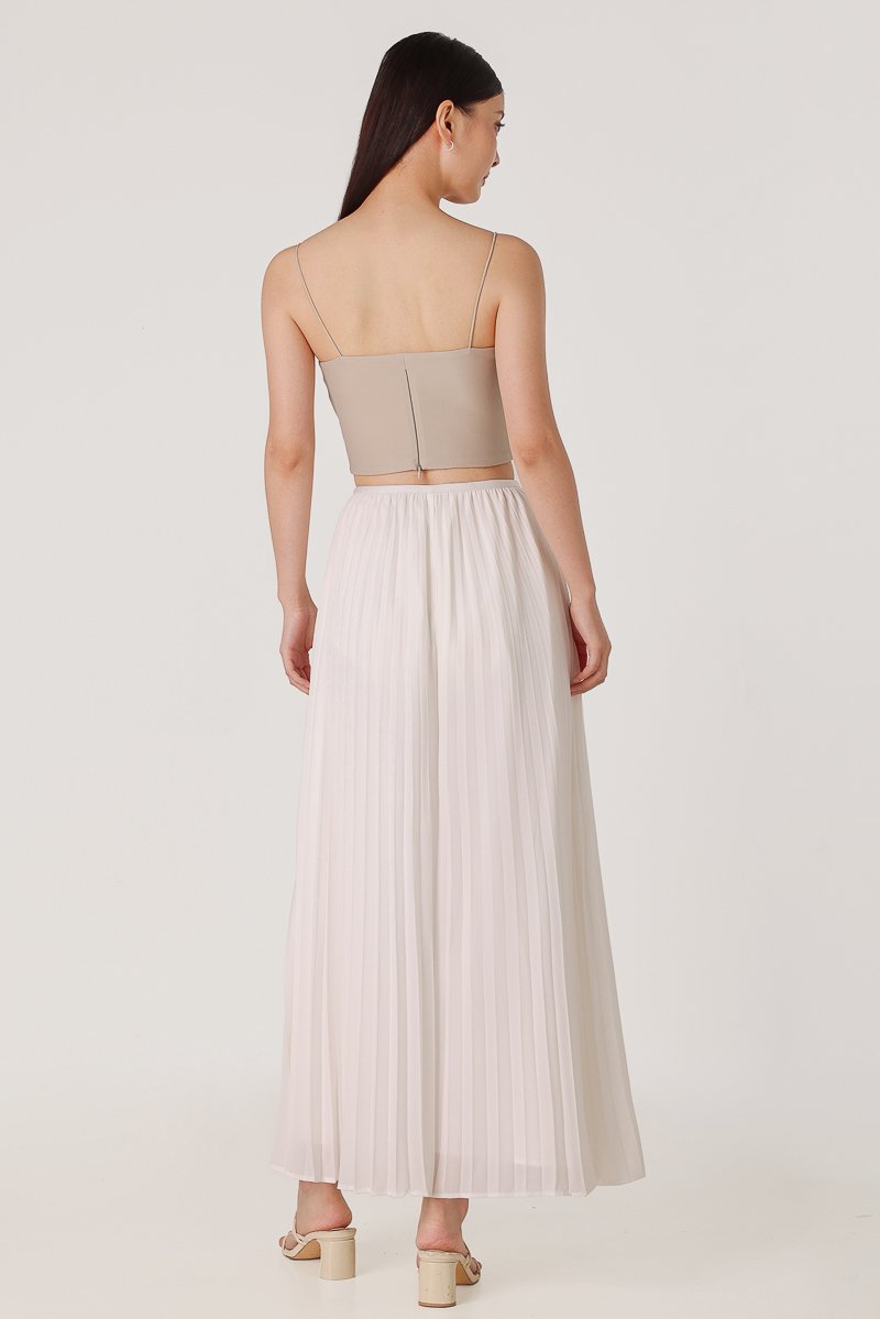LIYA CHIFFON PLEATED FLARE PANTS (WHITE)