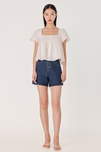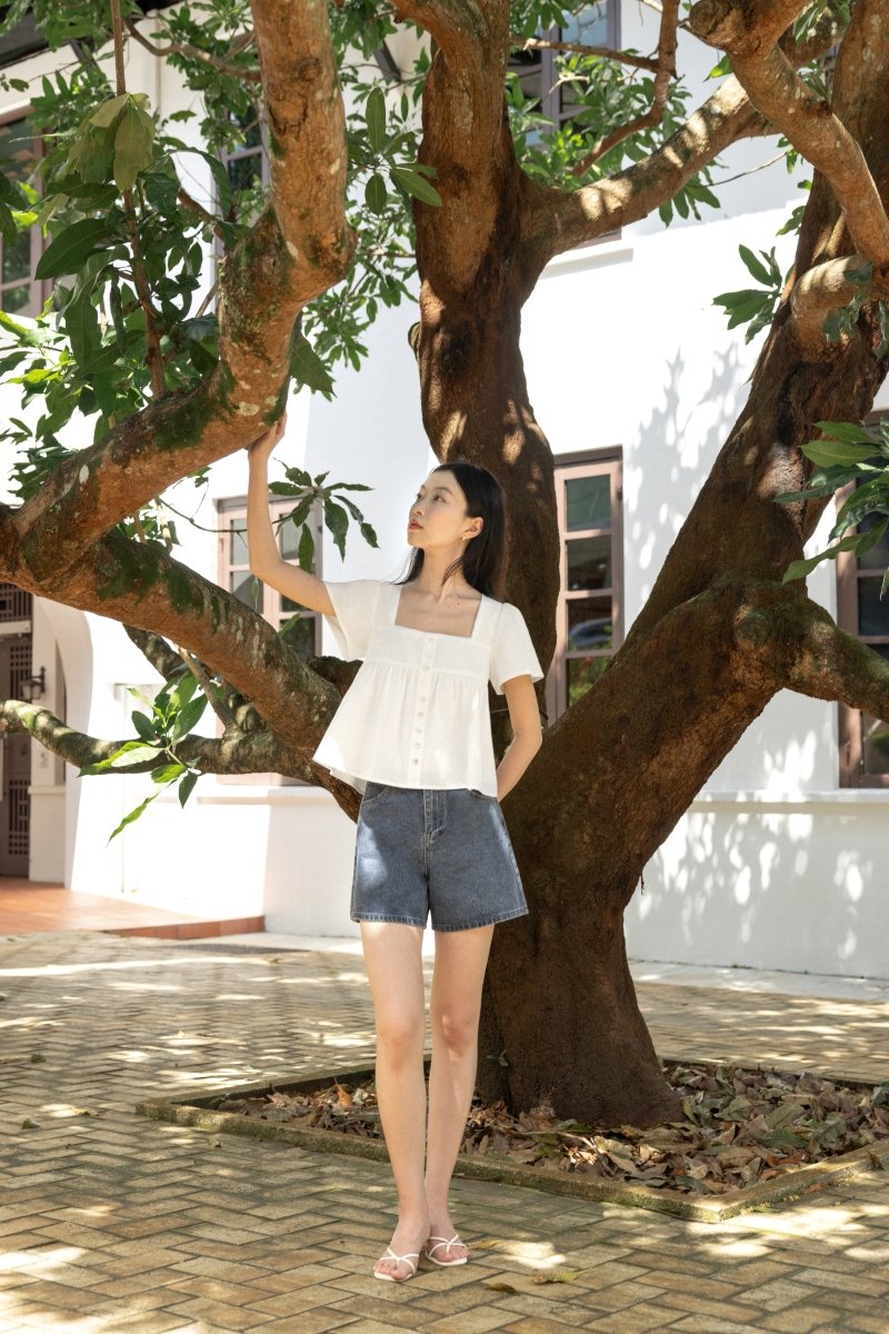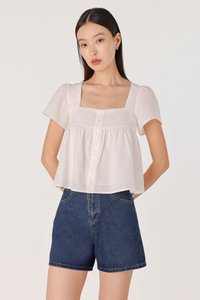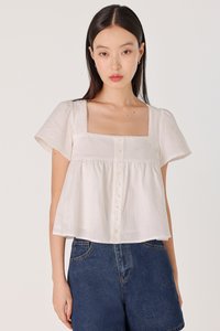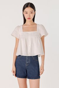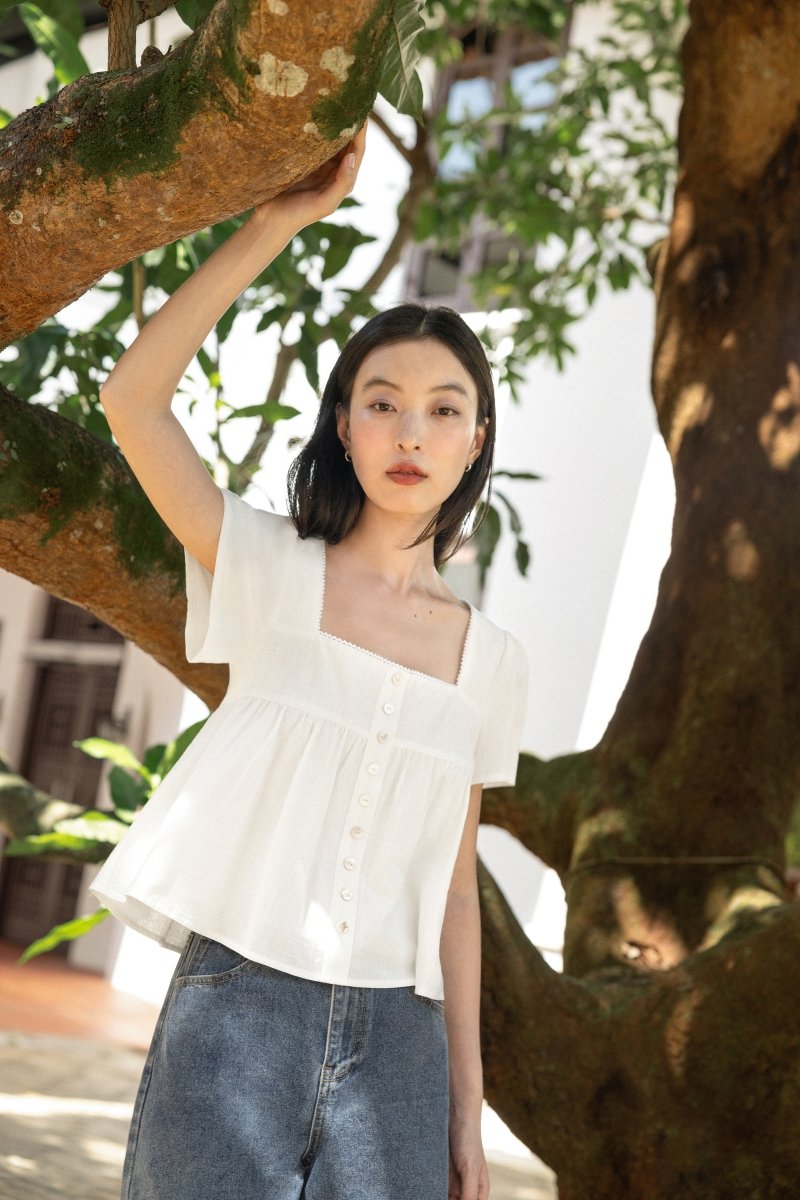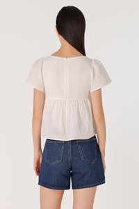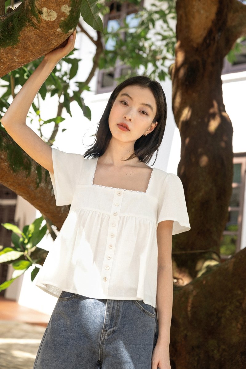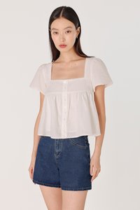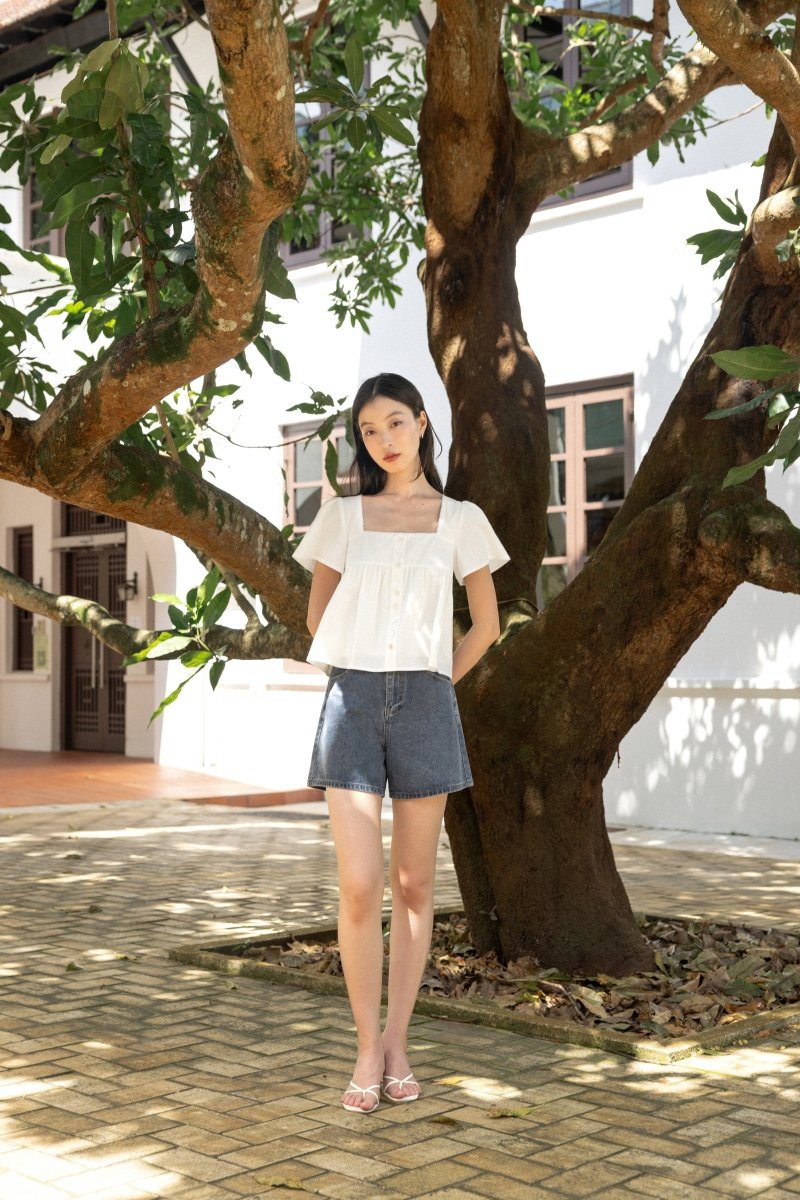LUCELIA FLUTTER SLEEVE BUTTON BLOUSE (WHITE)