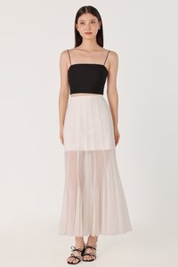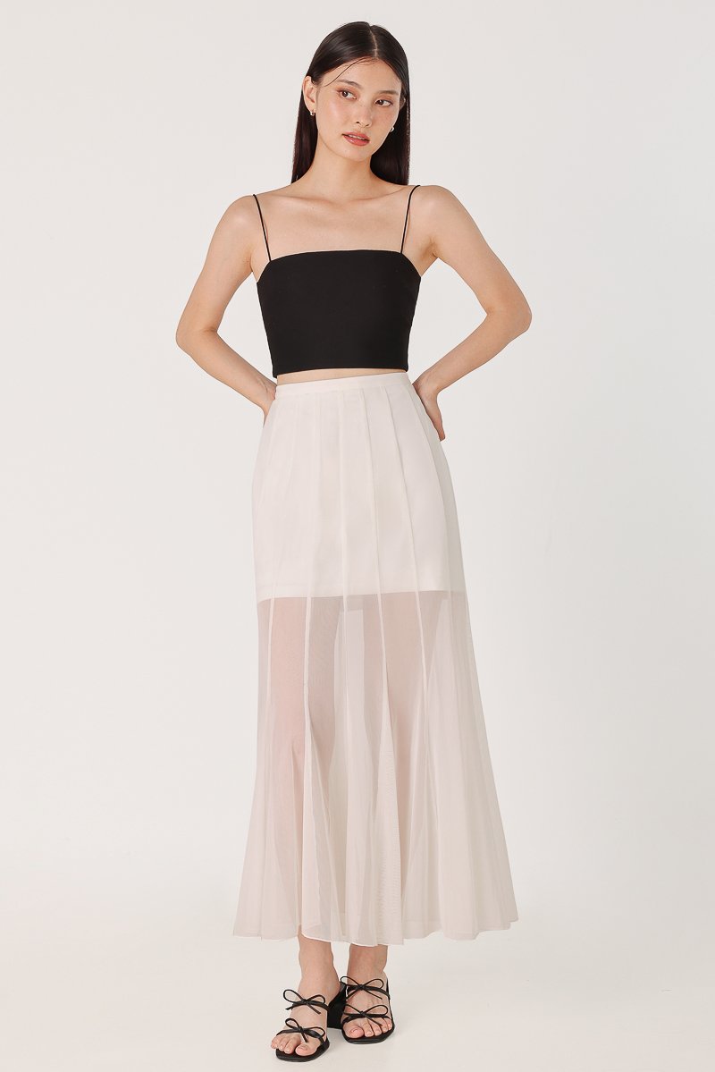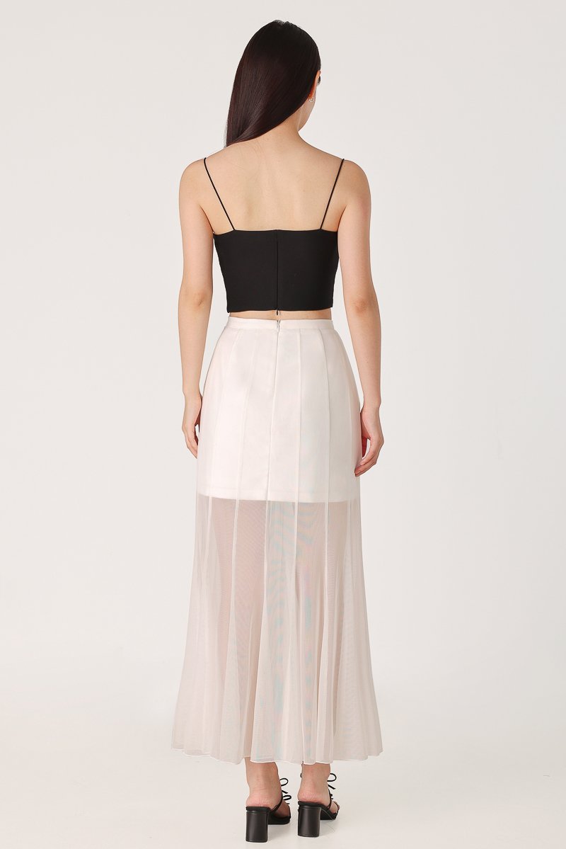 LUCILLE MESH PANELLED FLARE MAXI SKIRT - PETITE (WHITE)
