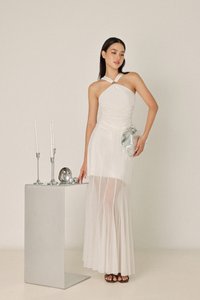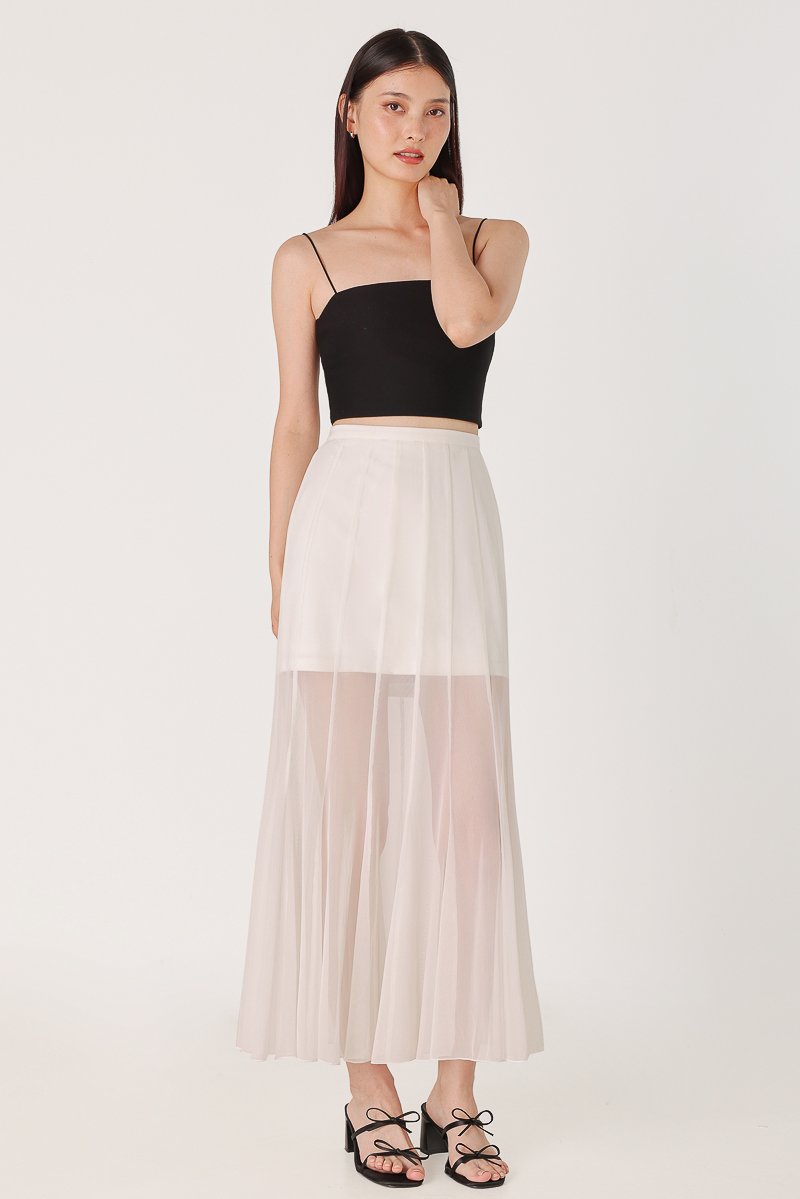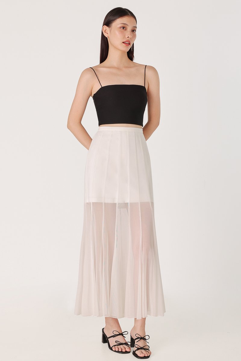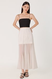 LUCILLE MESH PANELLED FLARE MAXI SKIRT - REGULAR (WHITE)