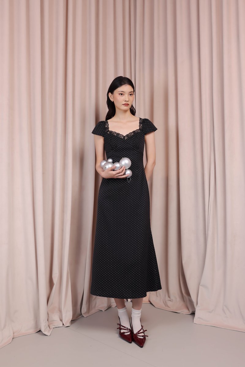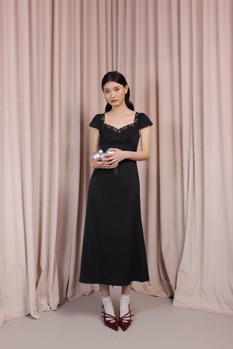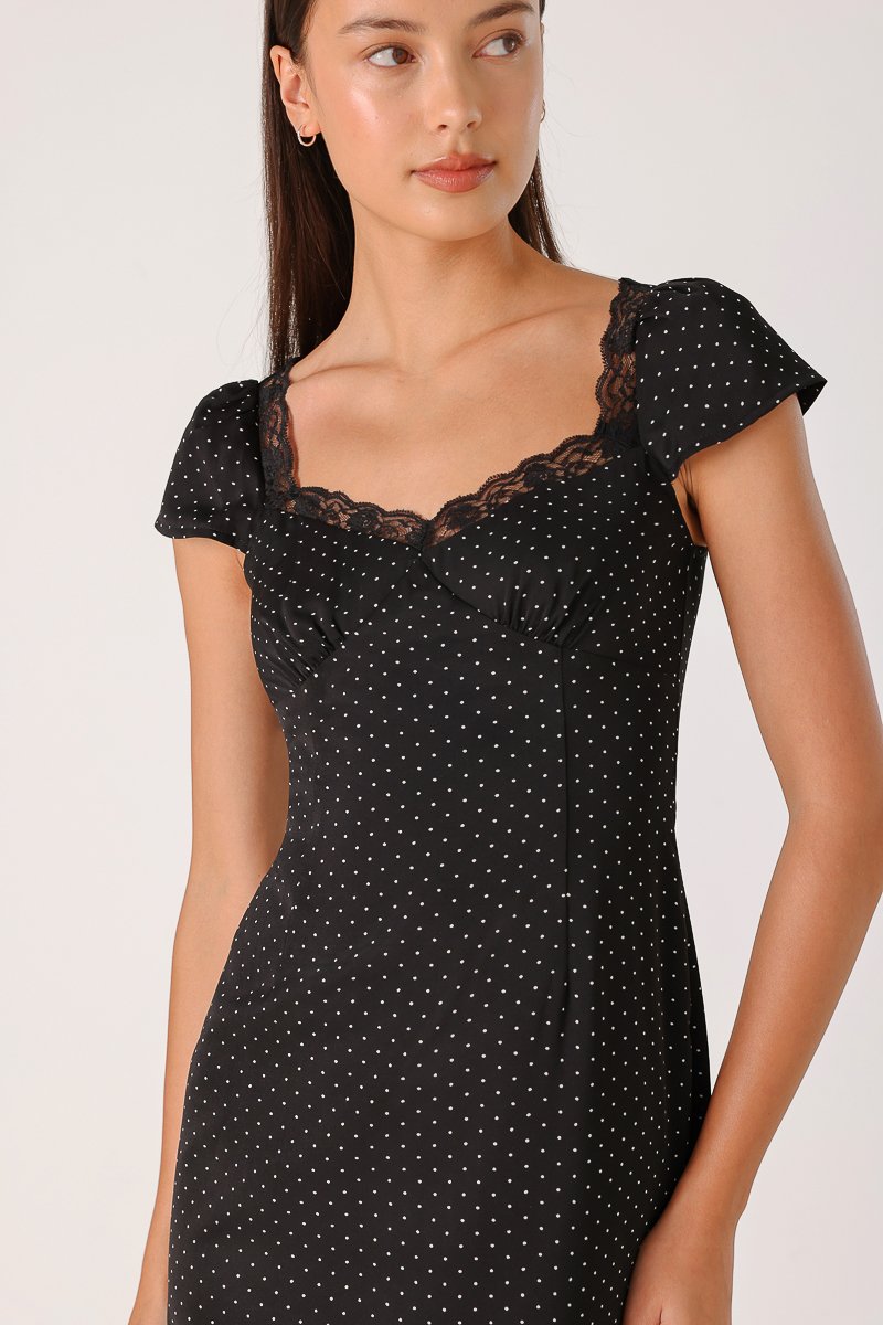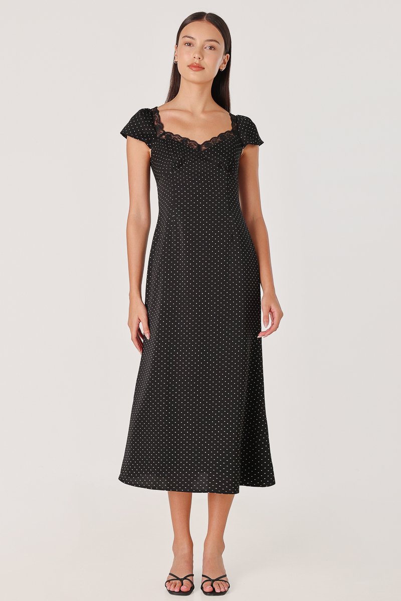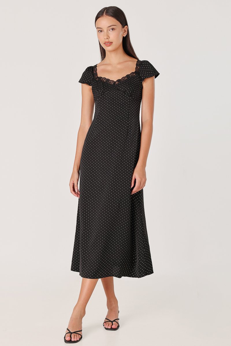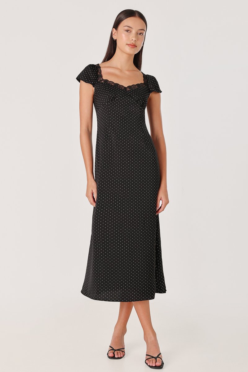 LUZELLA LACE TRIM CAP SLEEVE BIAS MIDAXI DRESS (POLKA DOT)