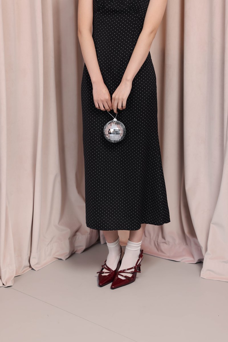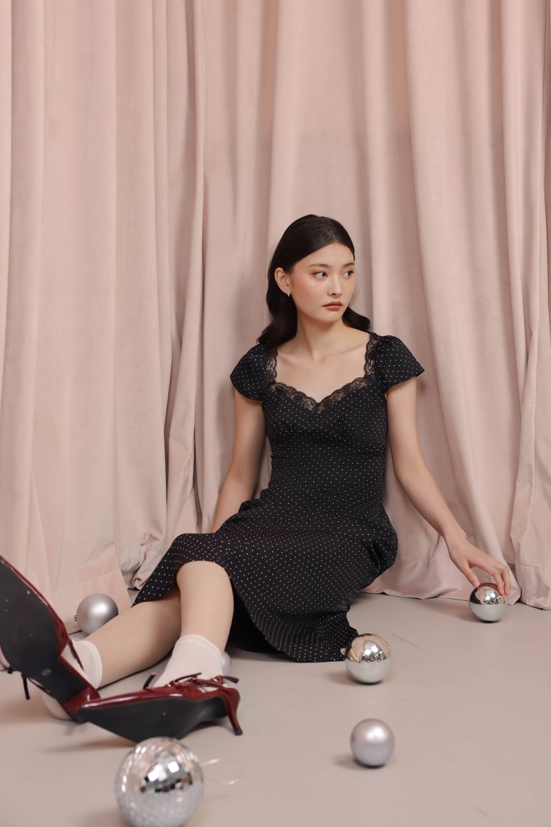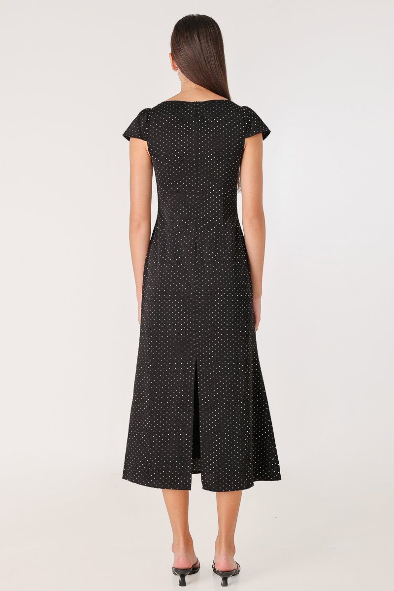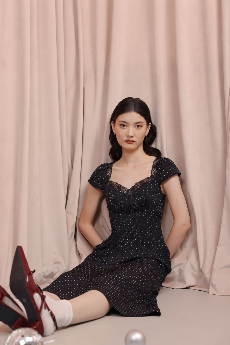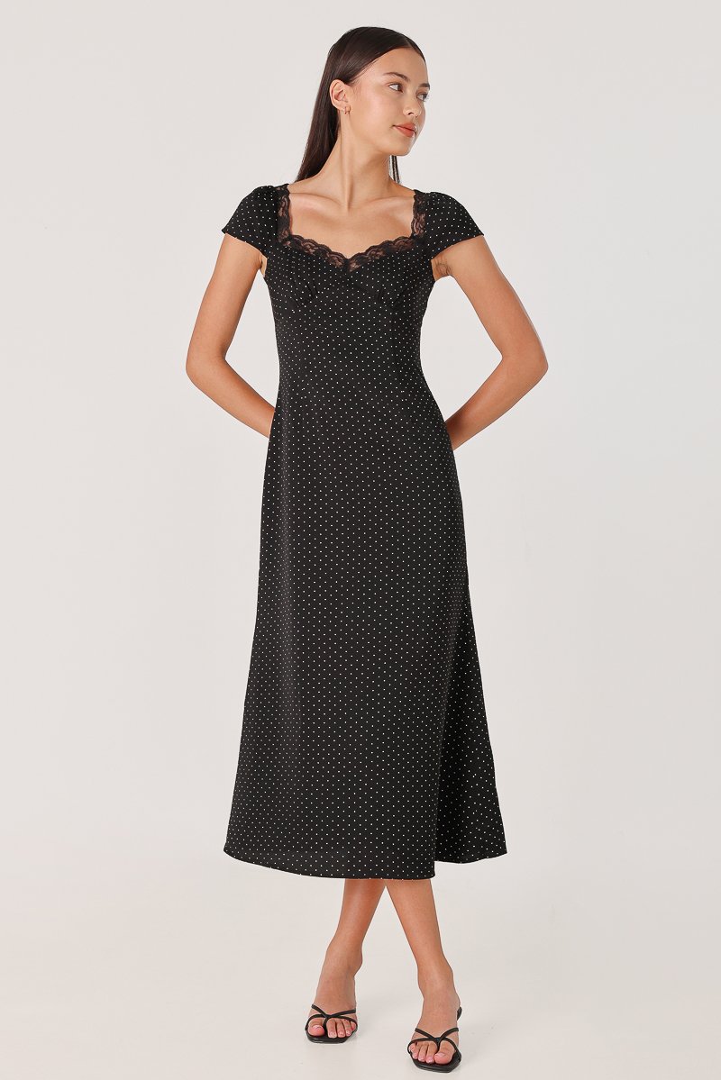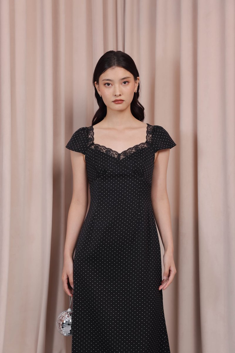 LUZELLA LACE TRIM CAP SLEEVE BIAS MIDAXI DRESS (POLKA DOT)