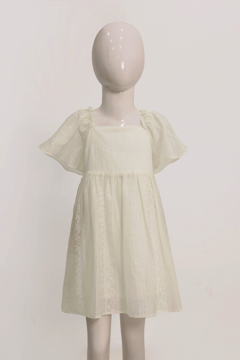 LYDIA FLORAL EMBROIDERED FLUTTER SLEEVE DRESS - MINI GIRL (CREAM) *BFF*
