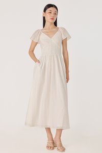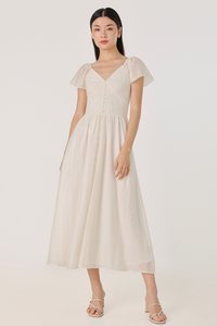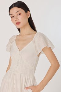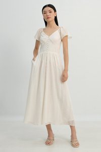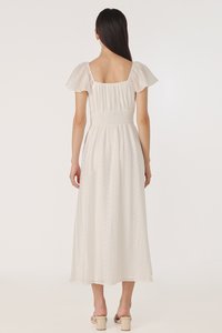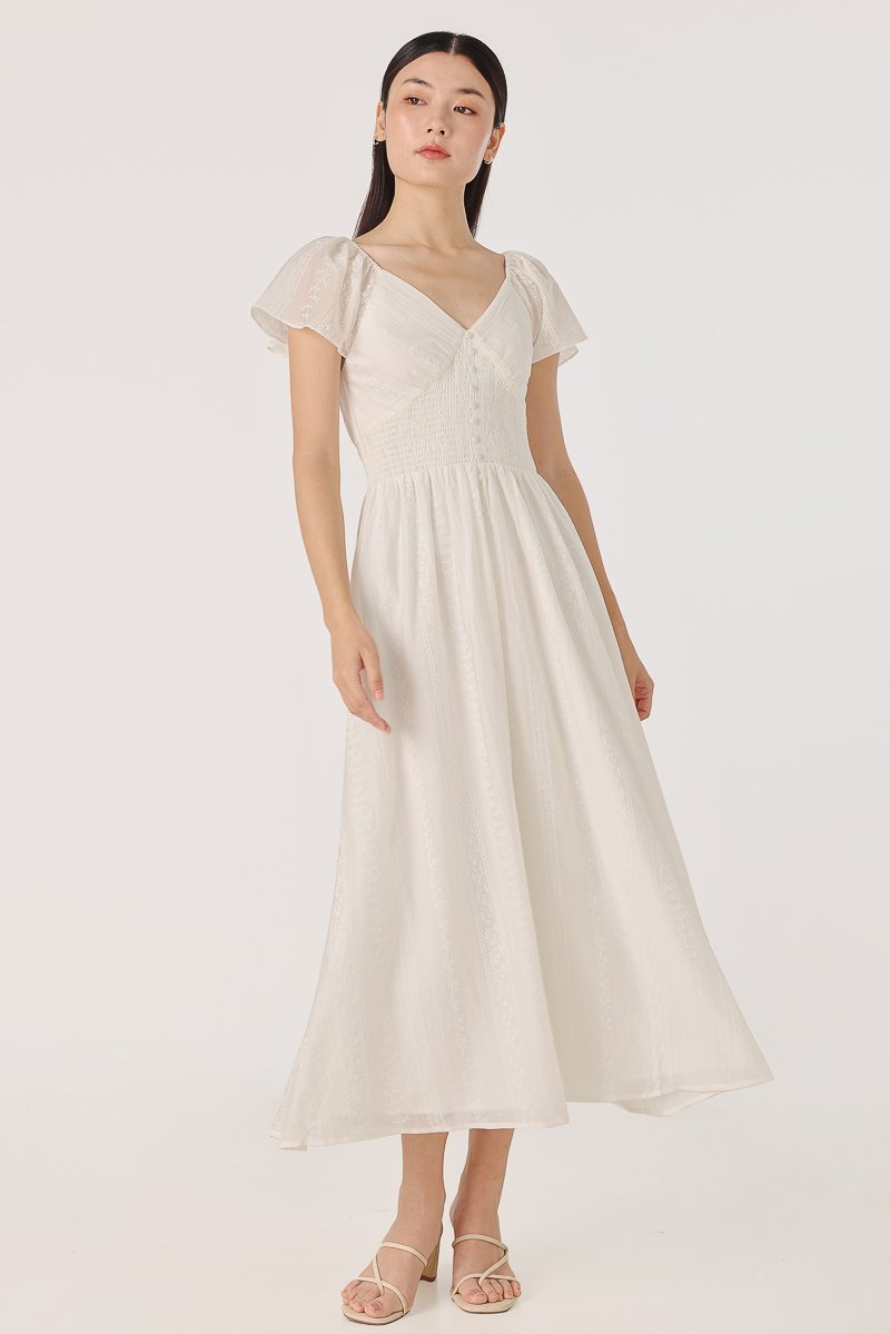 LYDIA FLORAL EMBROIDERED FLUTTER SLEEVE SMOCKED WAIST MAXI DRESS (CREAM) *BFF*