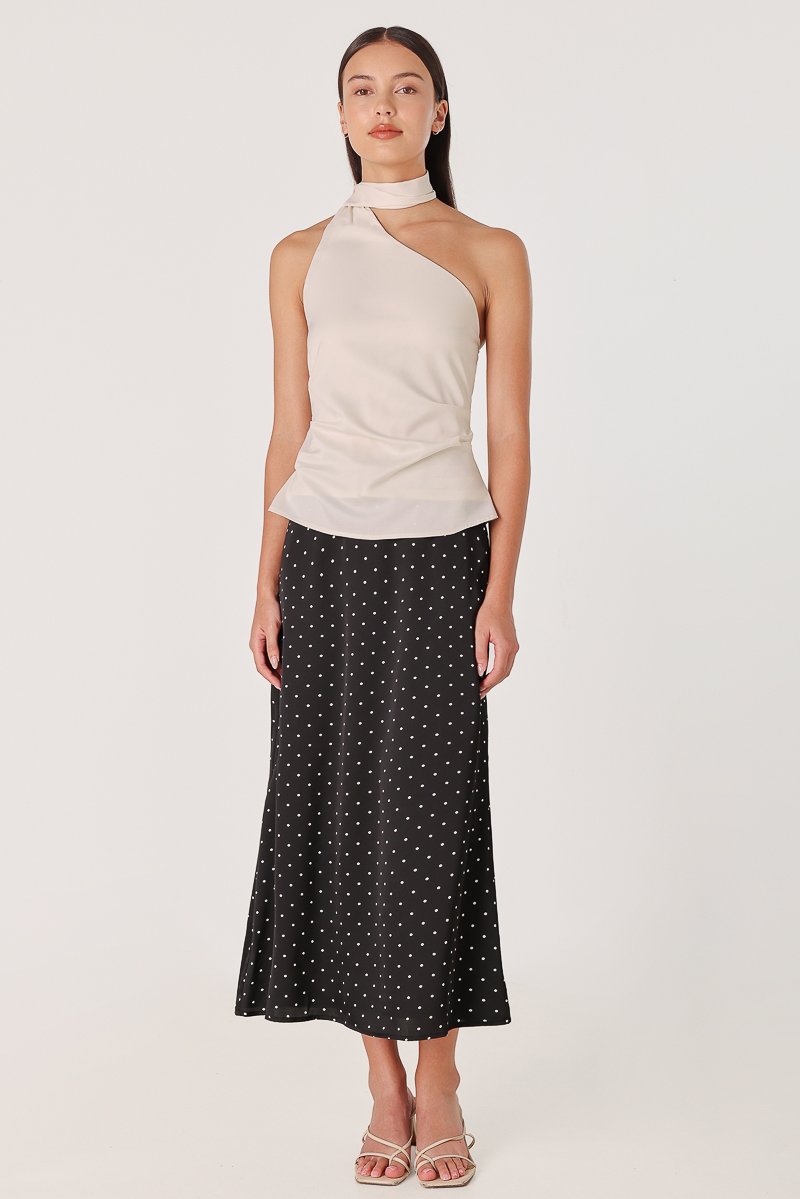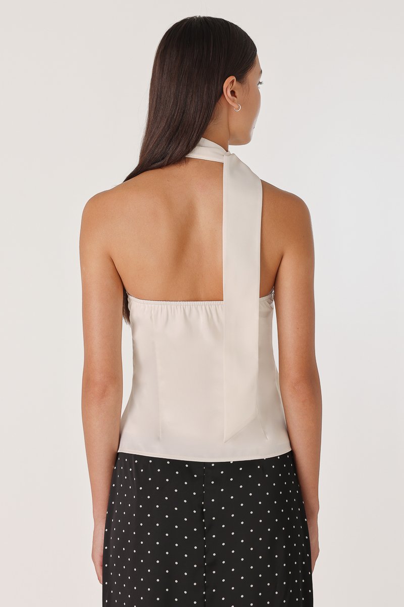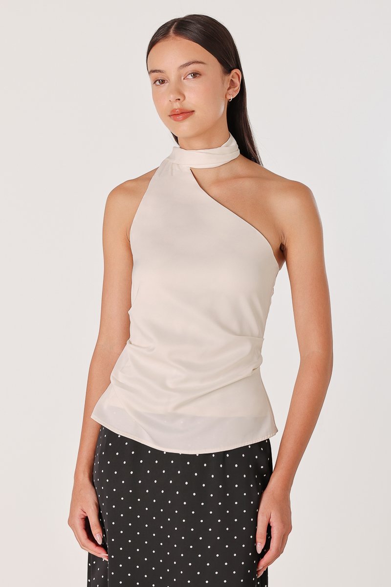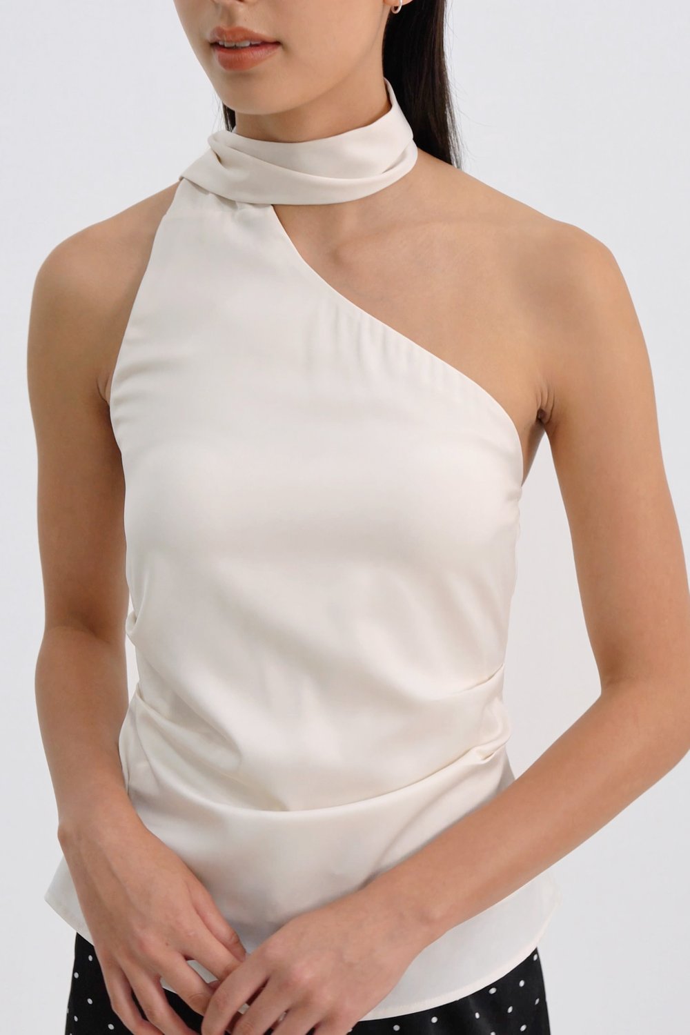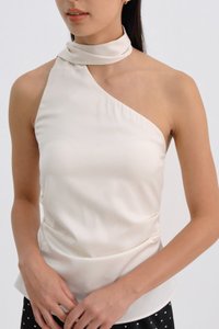 LYNDEN PADDED SATIN SCARF TOP (CHAMPAGNE)