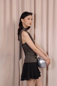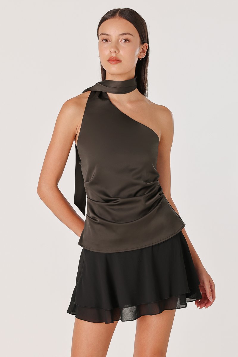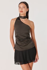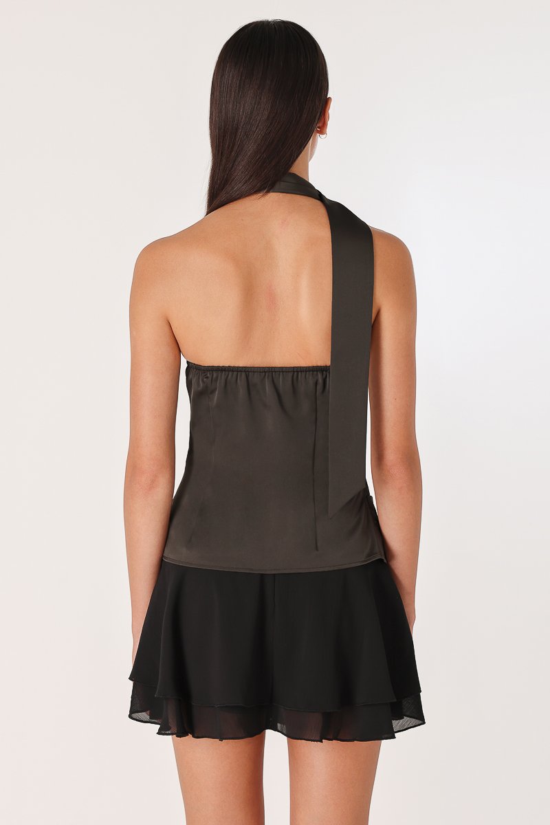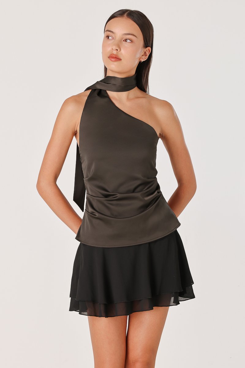 LYNDEN PADDED SATIN SCARF TOP (ESPRESSO)