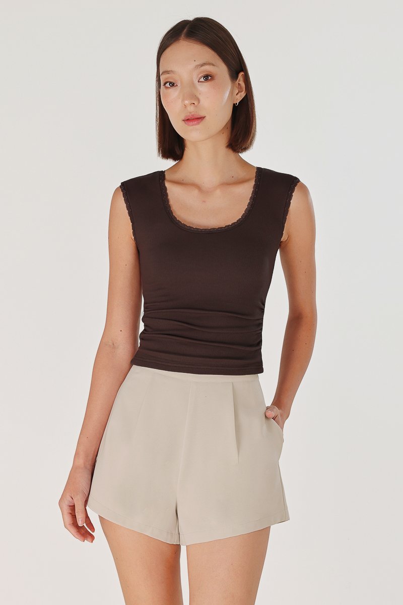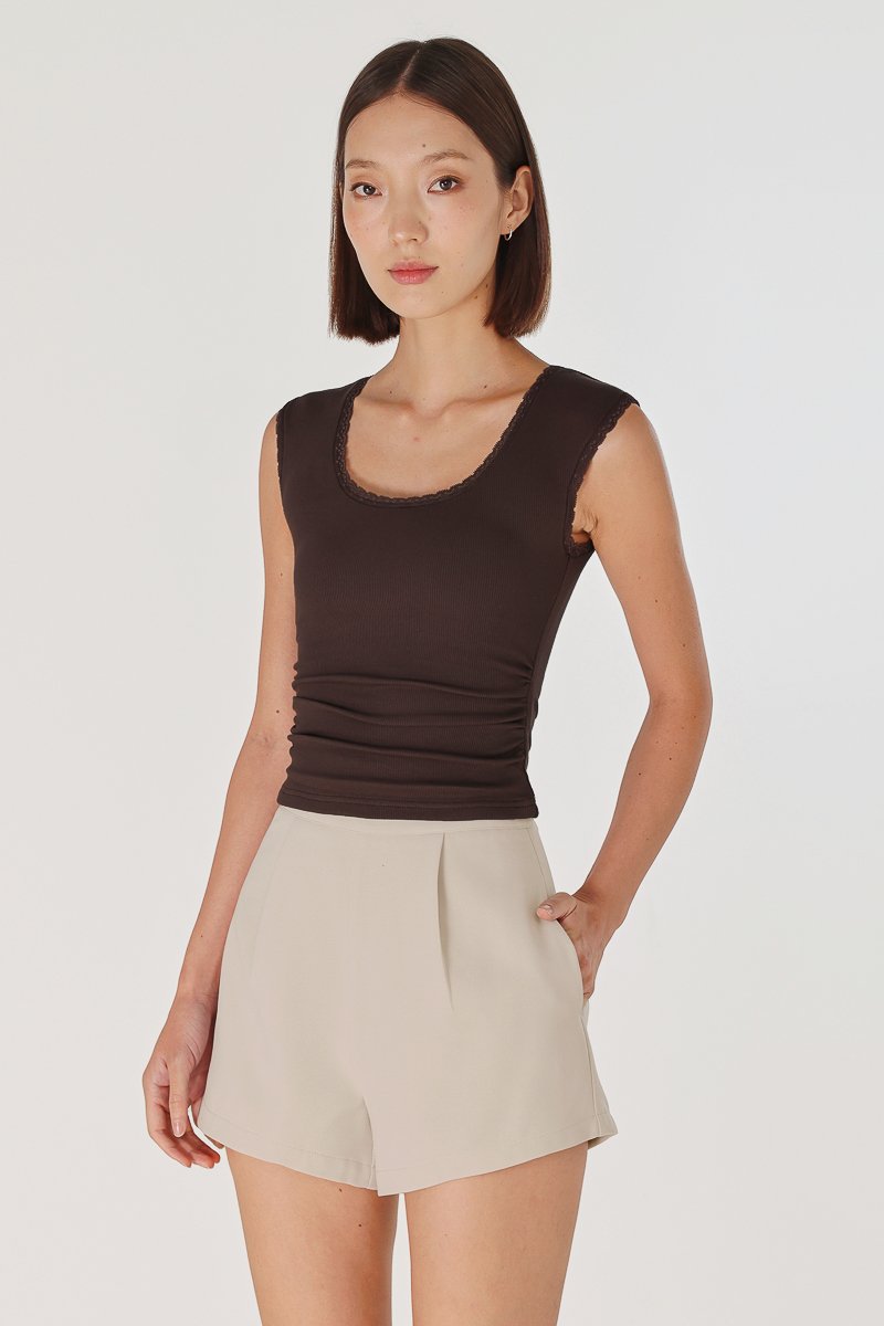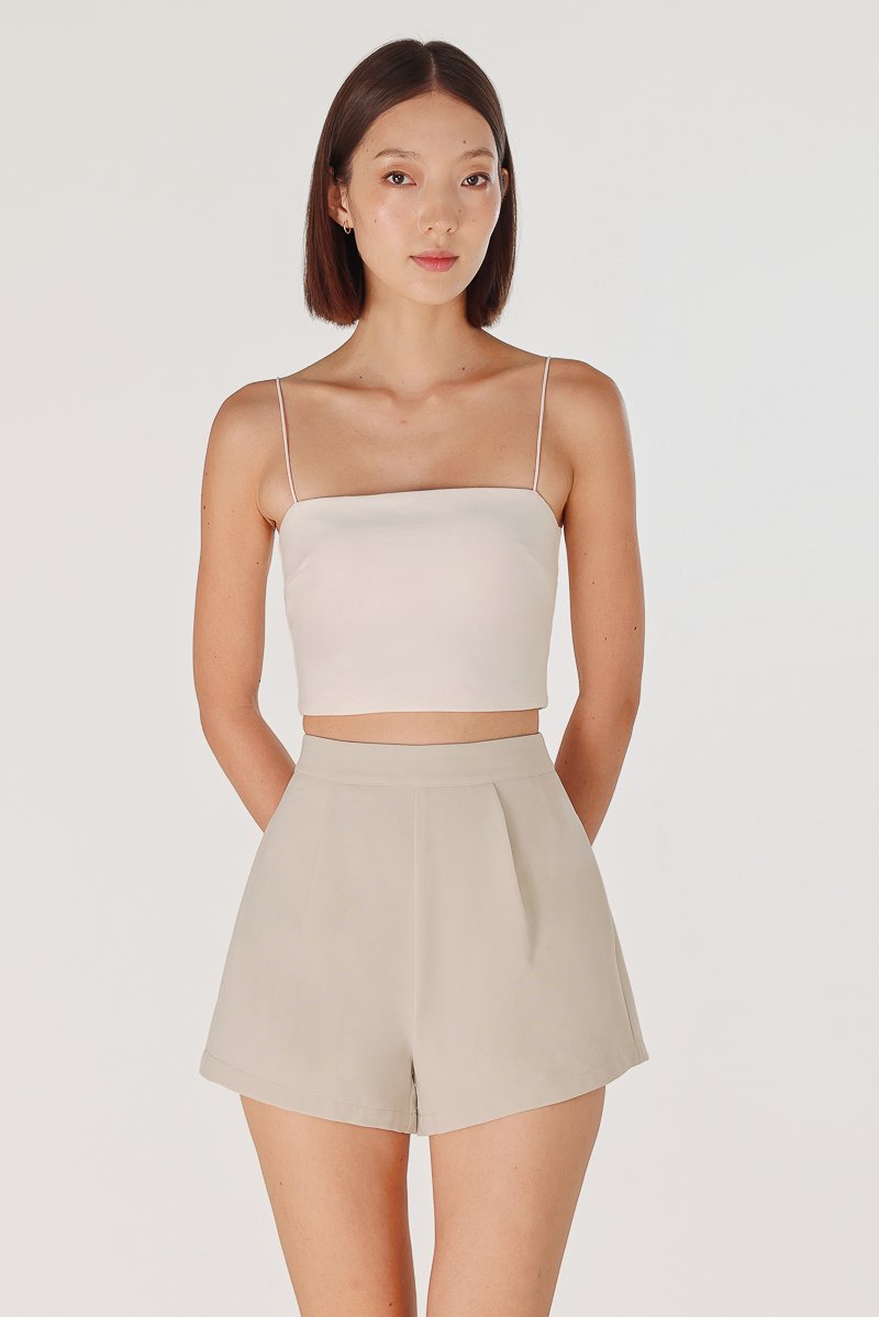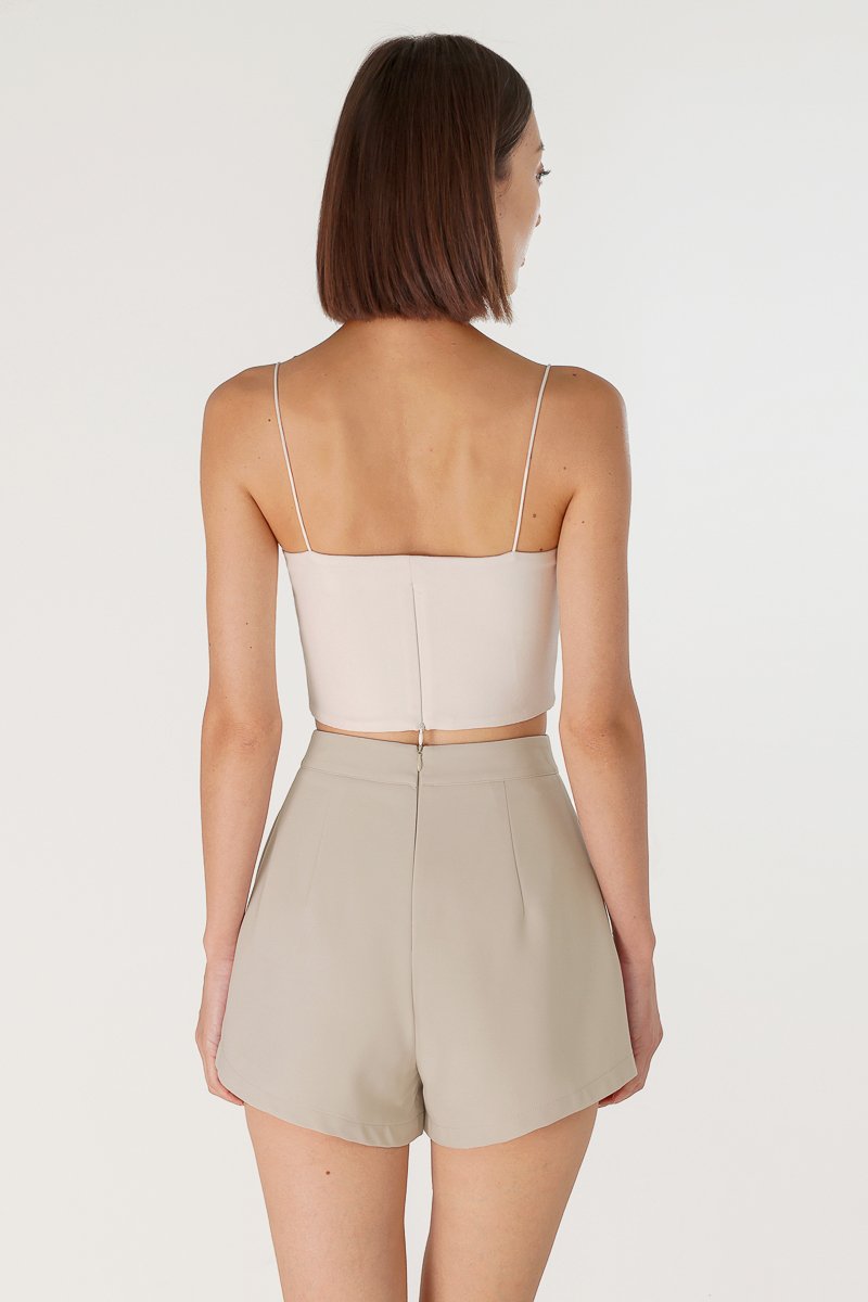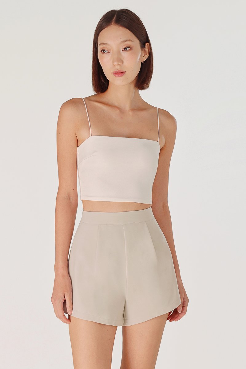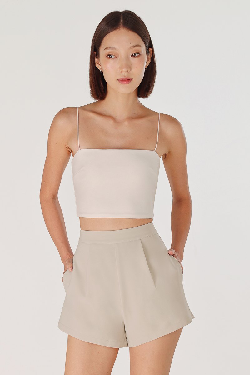 MABEL BASIC SLANT HEM SHORTS (BONE)