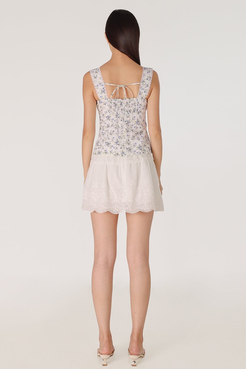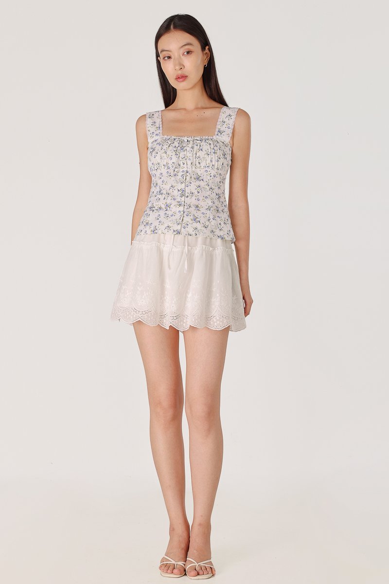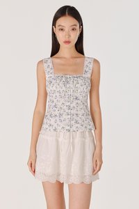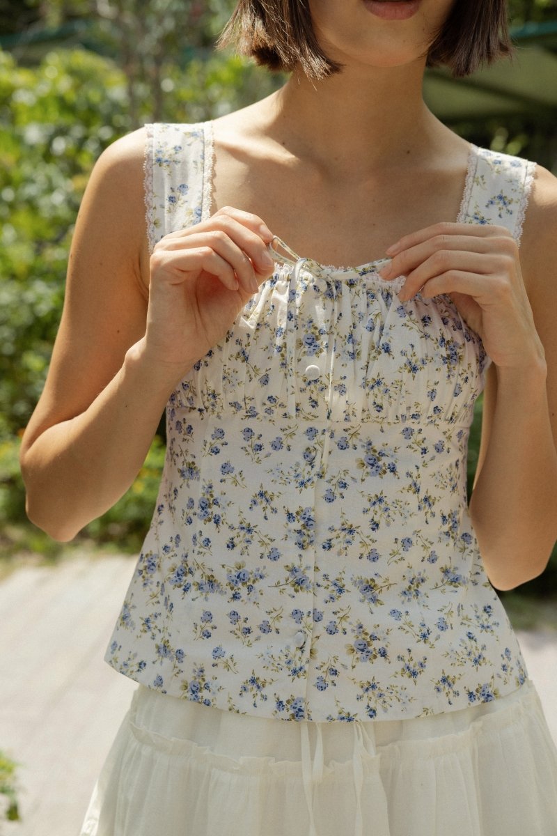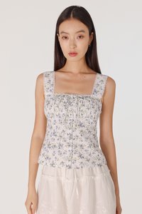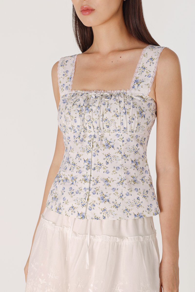 MABLE PADDED RUCHED LACE TRIM RIBBON BUTTON TOP (FLORAL)