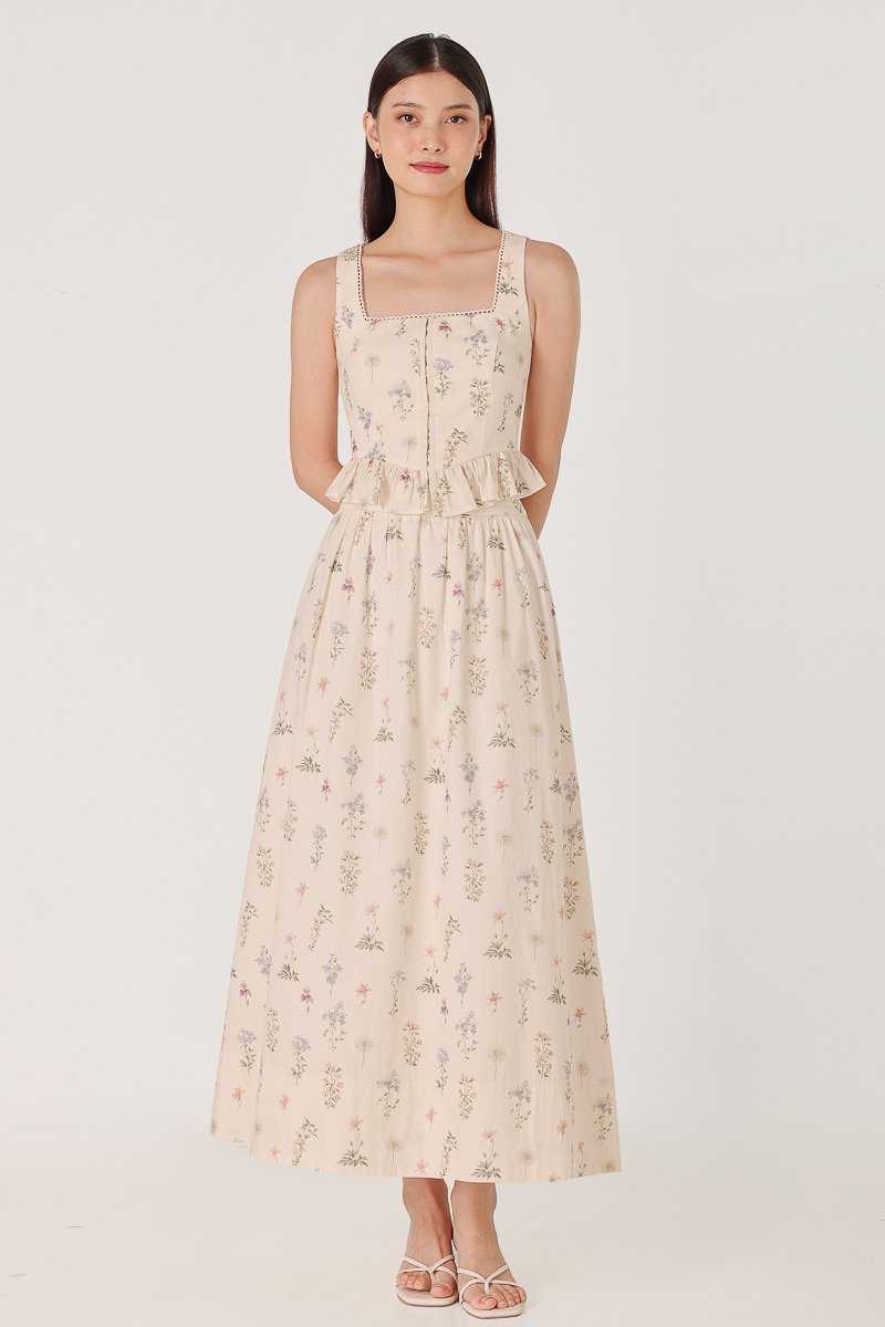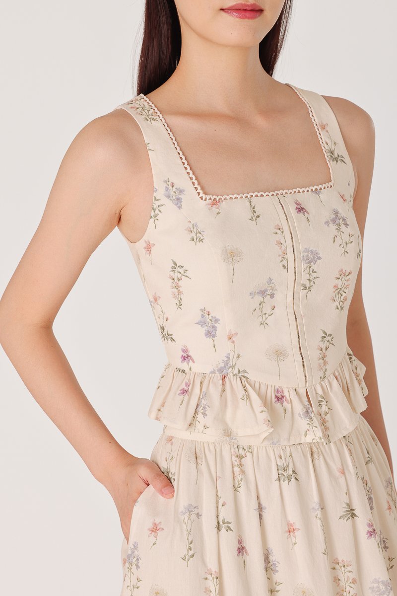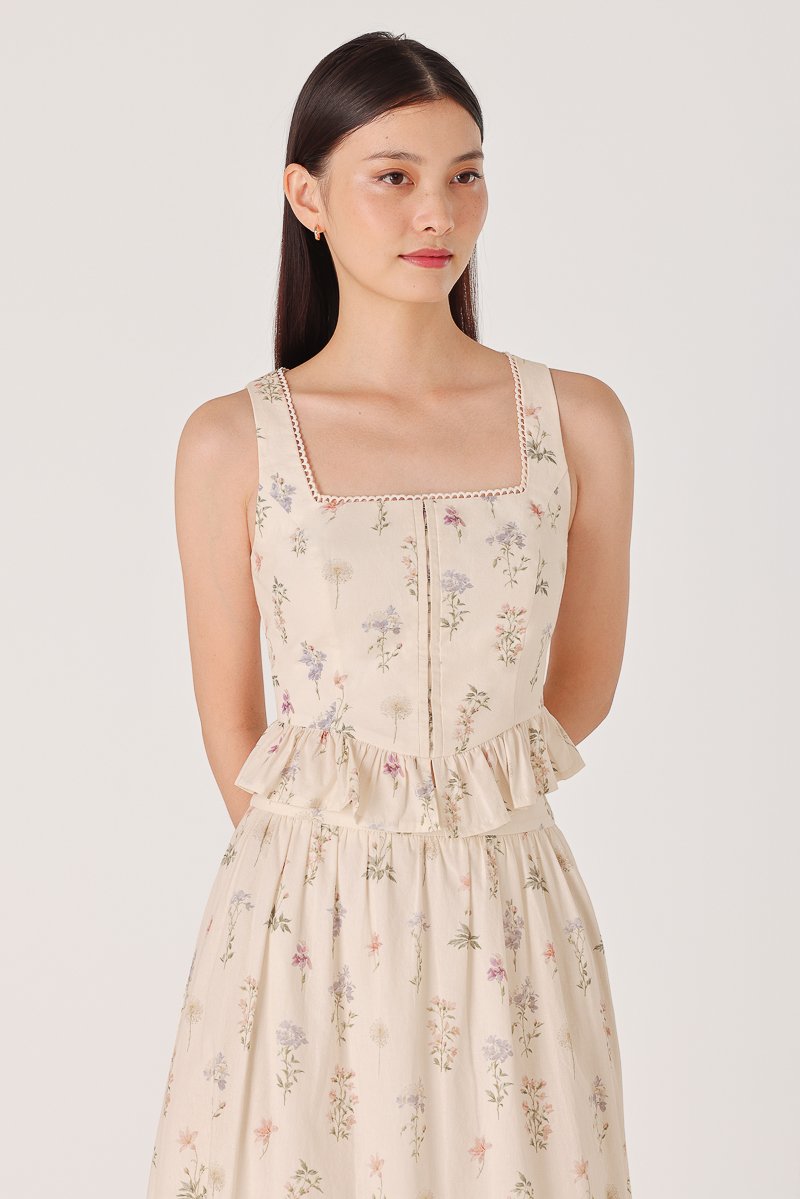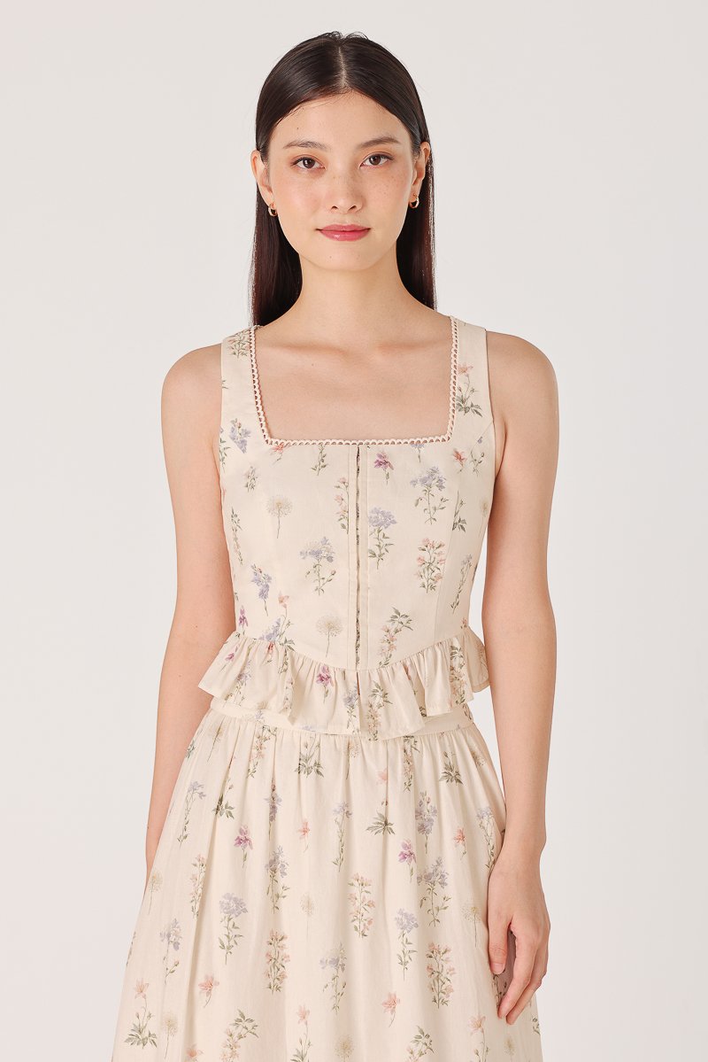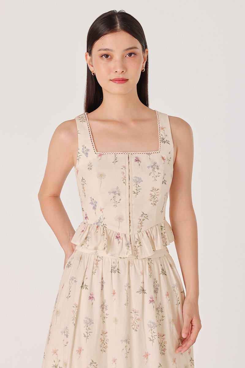 MAGNOLIA PADDED FLORAL CORSET RUFFLE HEM TOP