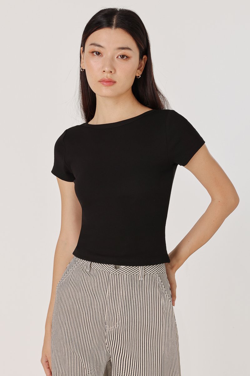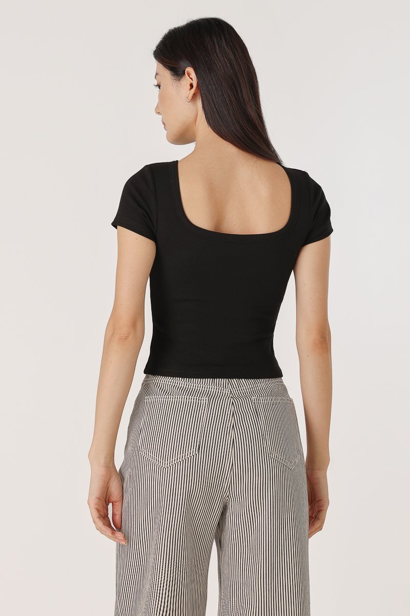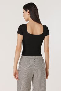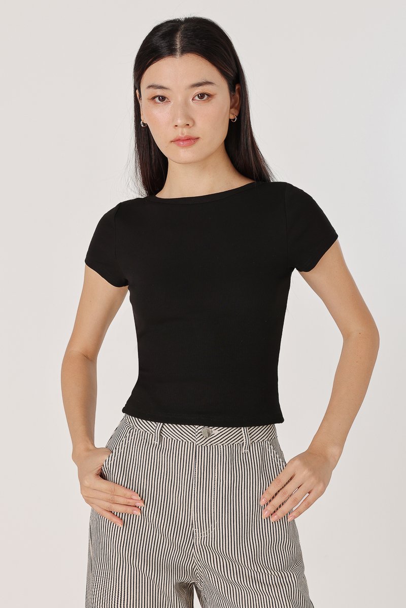 MARINA REVERSIBLE PADDED SLEEVE RIBBED TOP (BLACK)