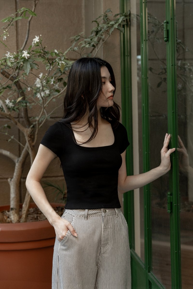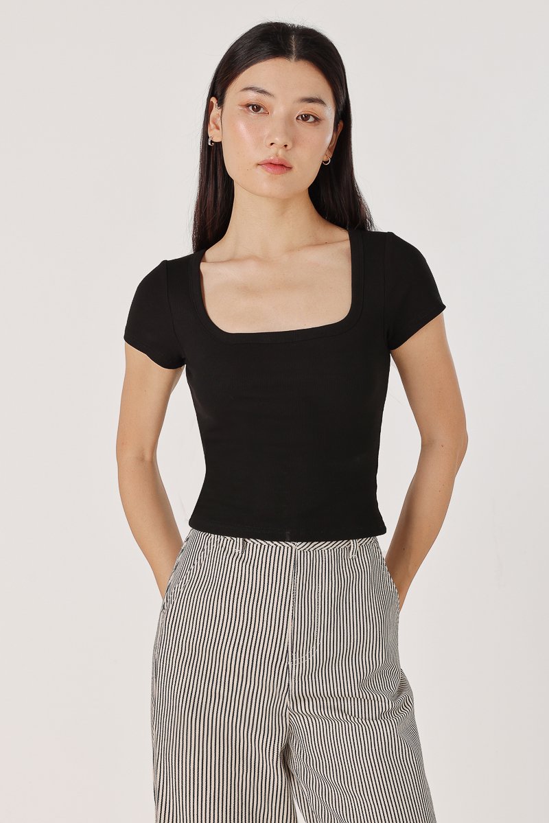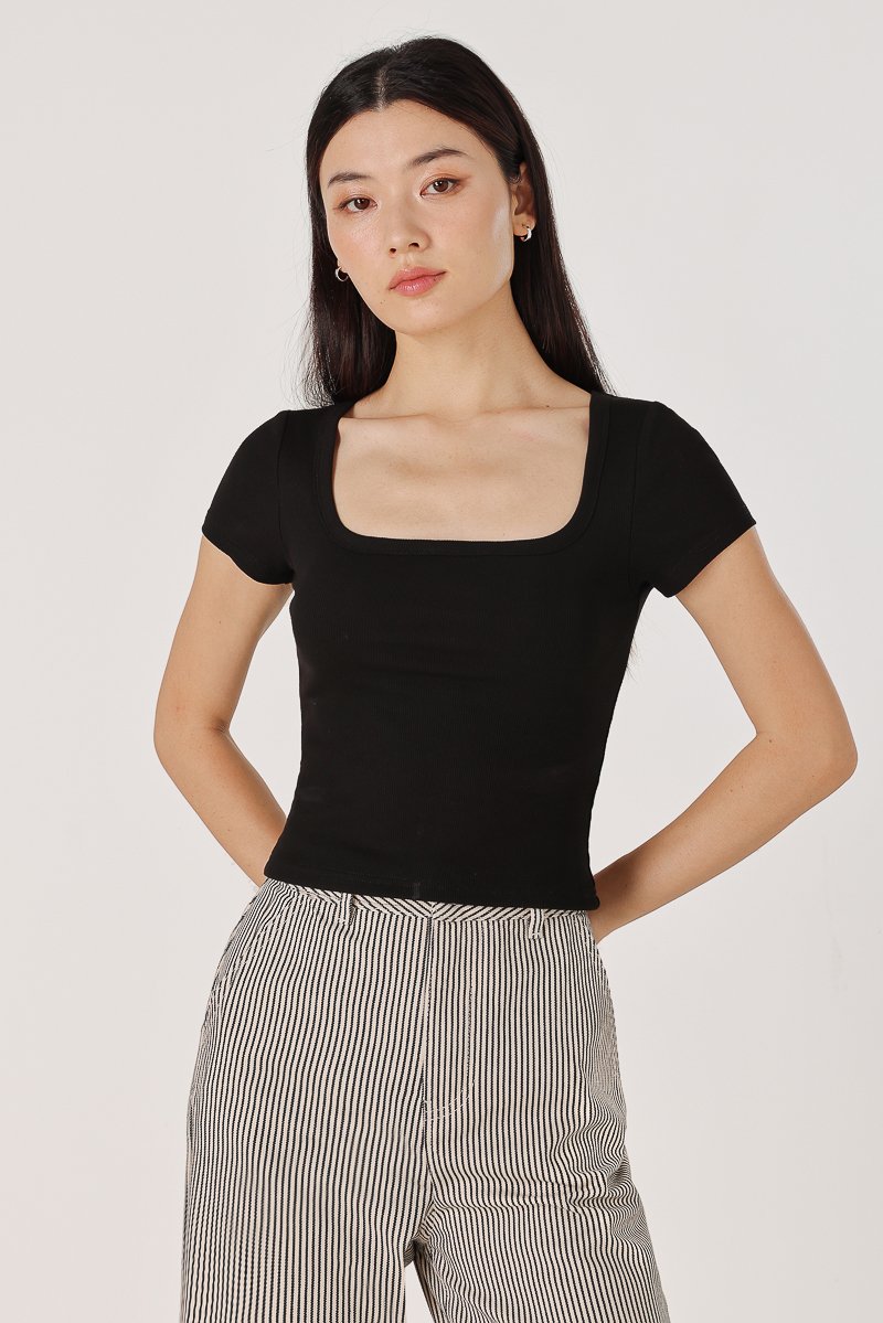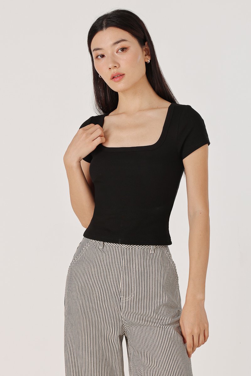 MARINA REVERSIBLE PADDED SLEEVE RIBBED TOP (BLACK)