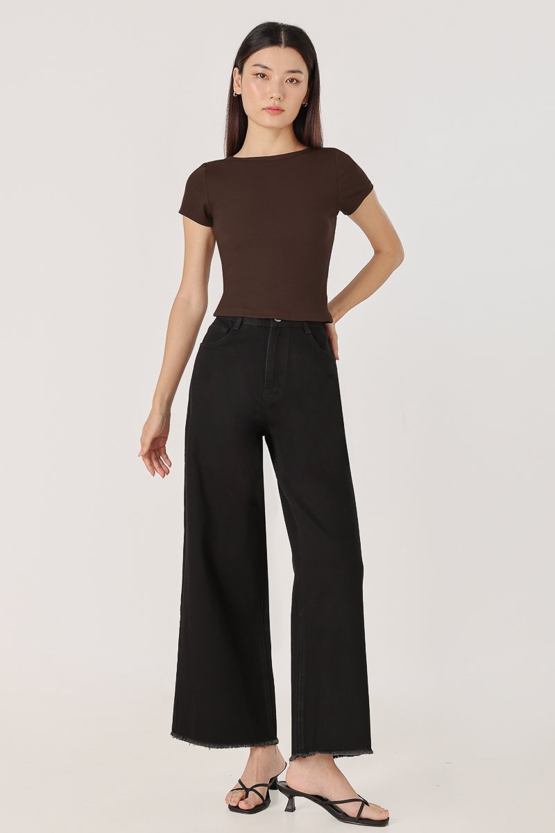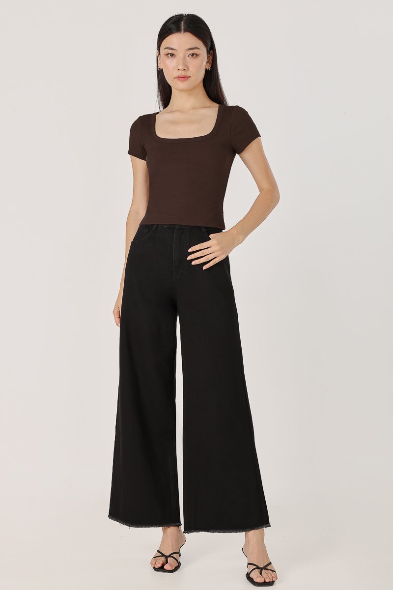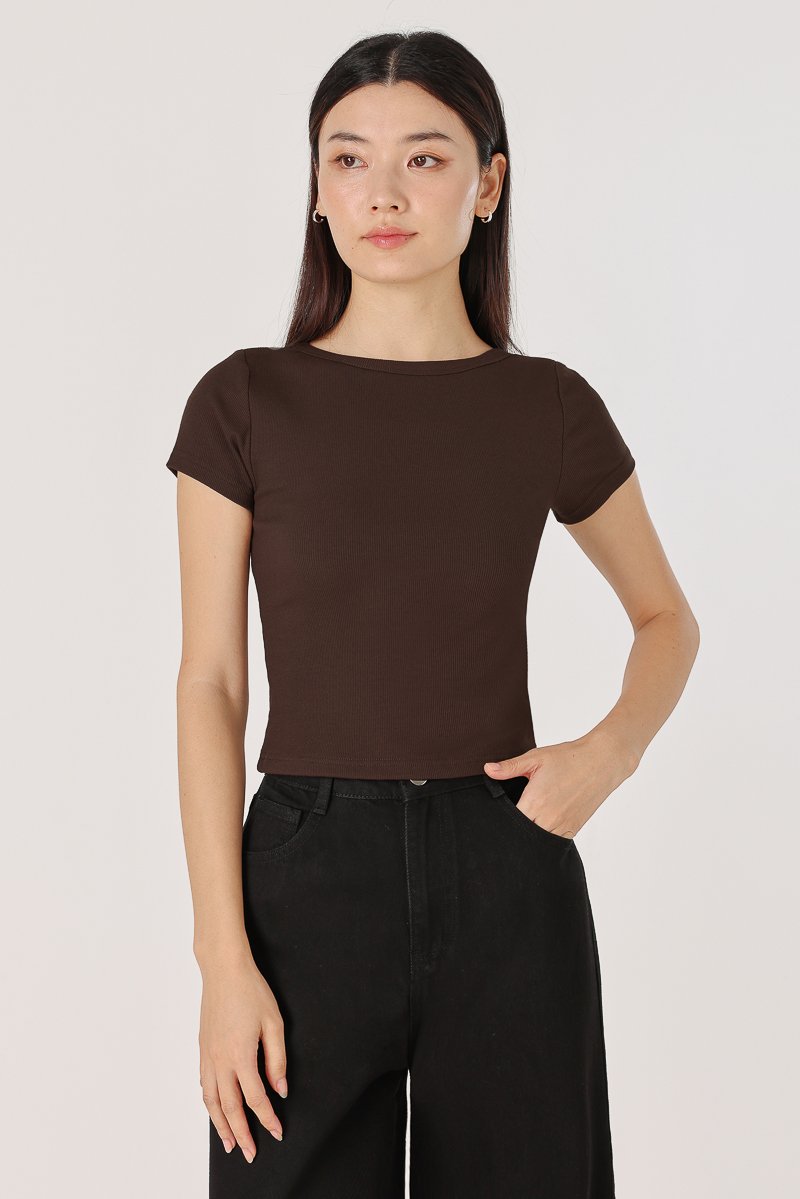 MARINA REVERSIBLE PADDED SLEEVE RIBBED TOP (ESPRESSO)