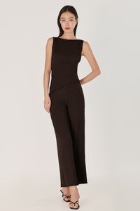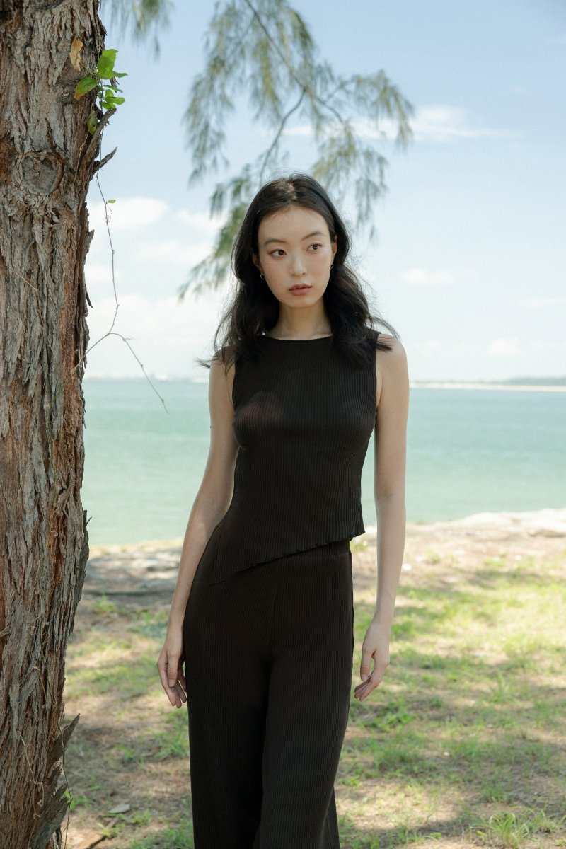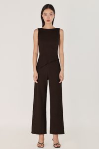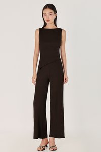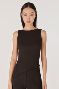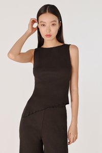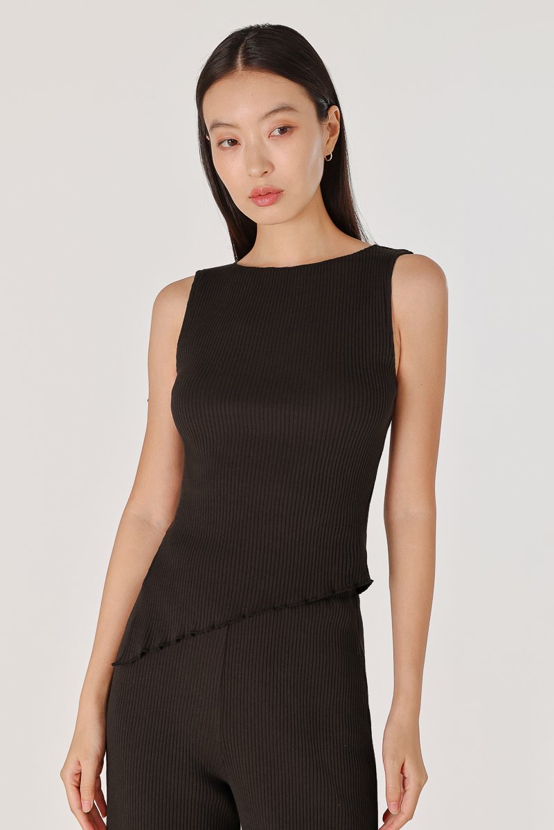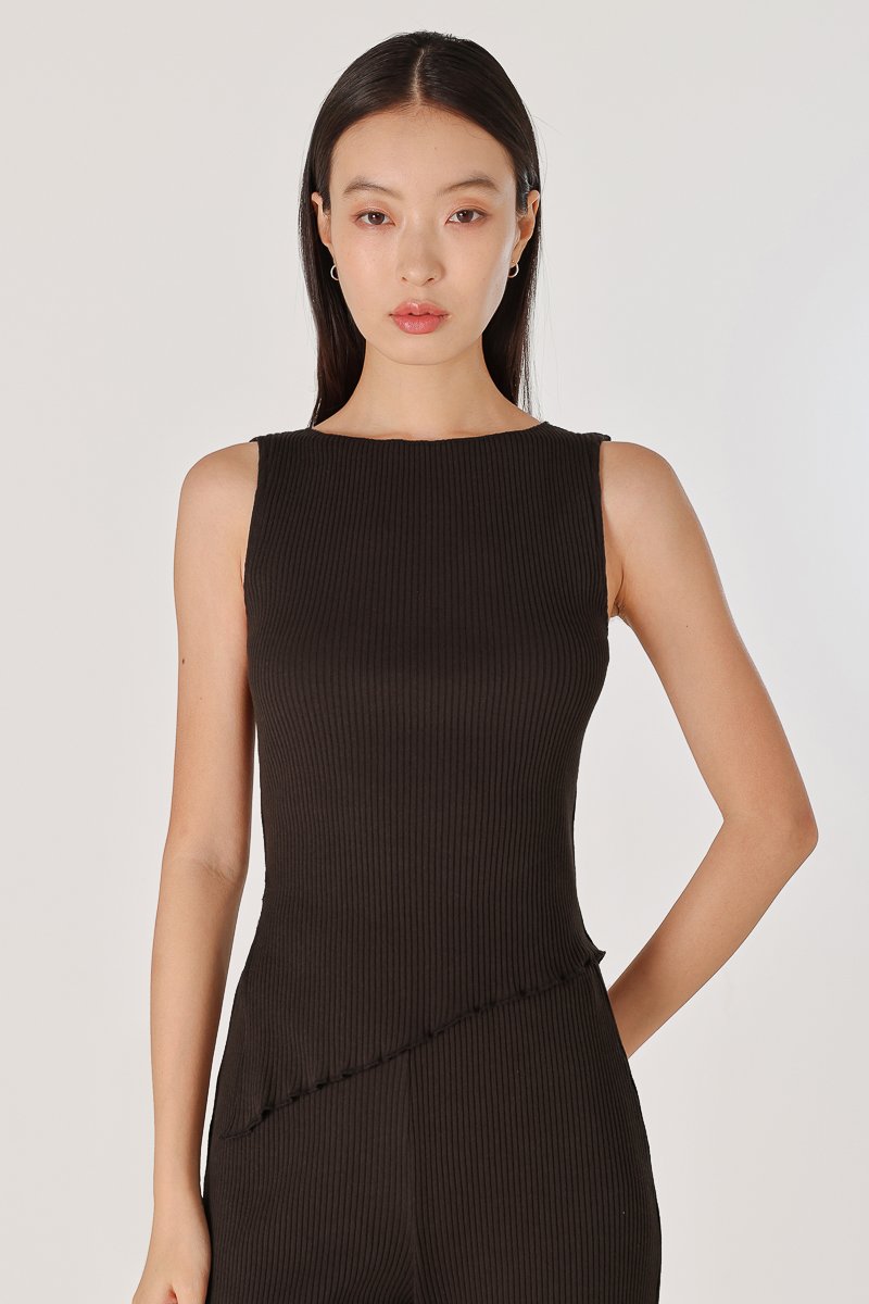 MARLOWE RIBBED BOAT NECK LETTUCE HEM TOP (ESPRESSO)
