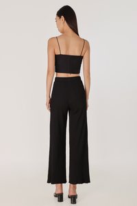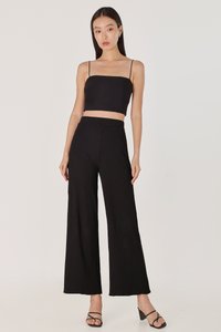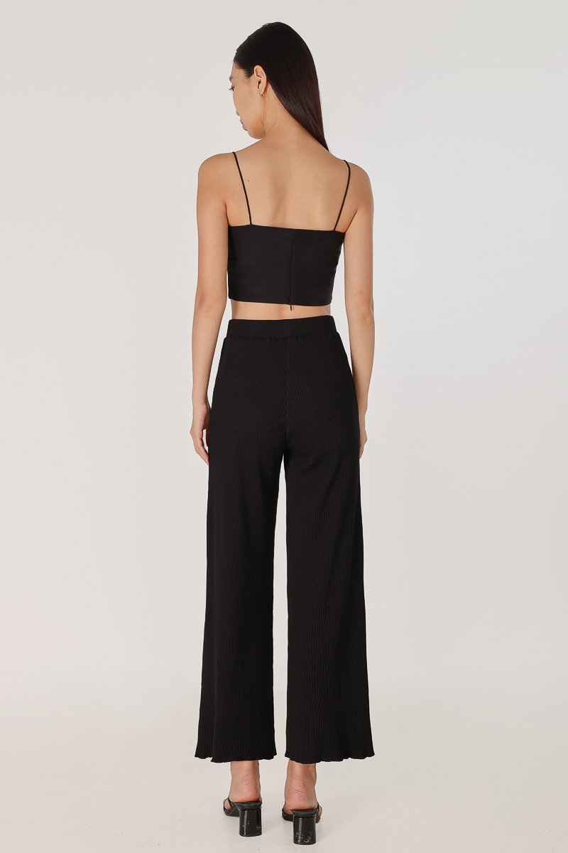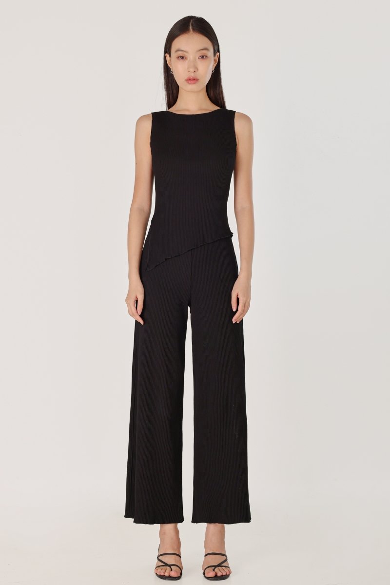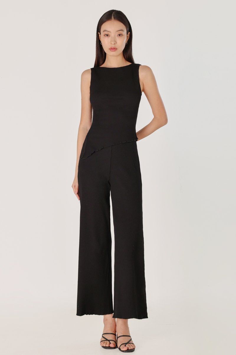 MARLOWE RIBBED LETTUCE HEM STRAIGHT LEG PANTS - PETITE (BLACK)