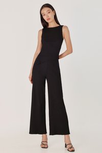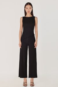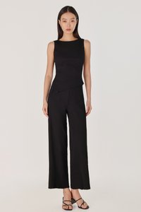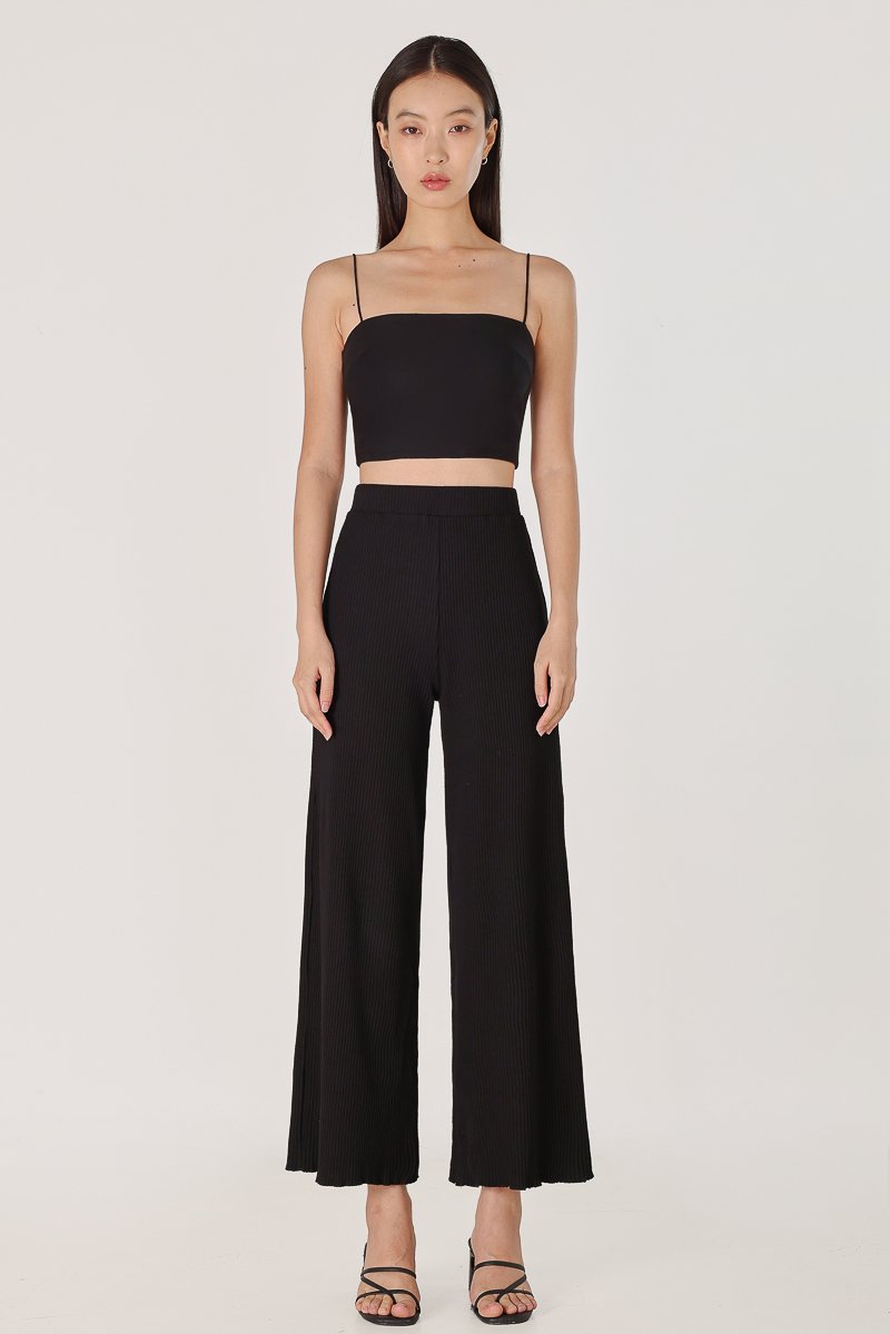 MARLOWE RIBBED LETTUCE HEM STRAIGHT LEG PANTS - REGULAR (BLACK)