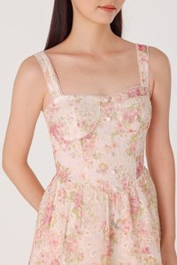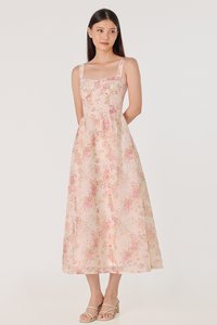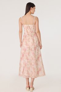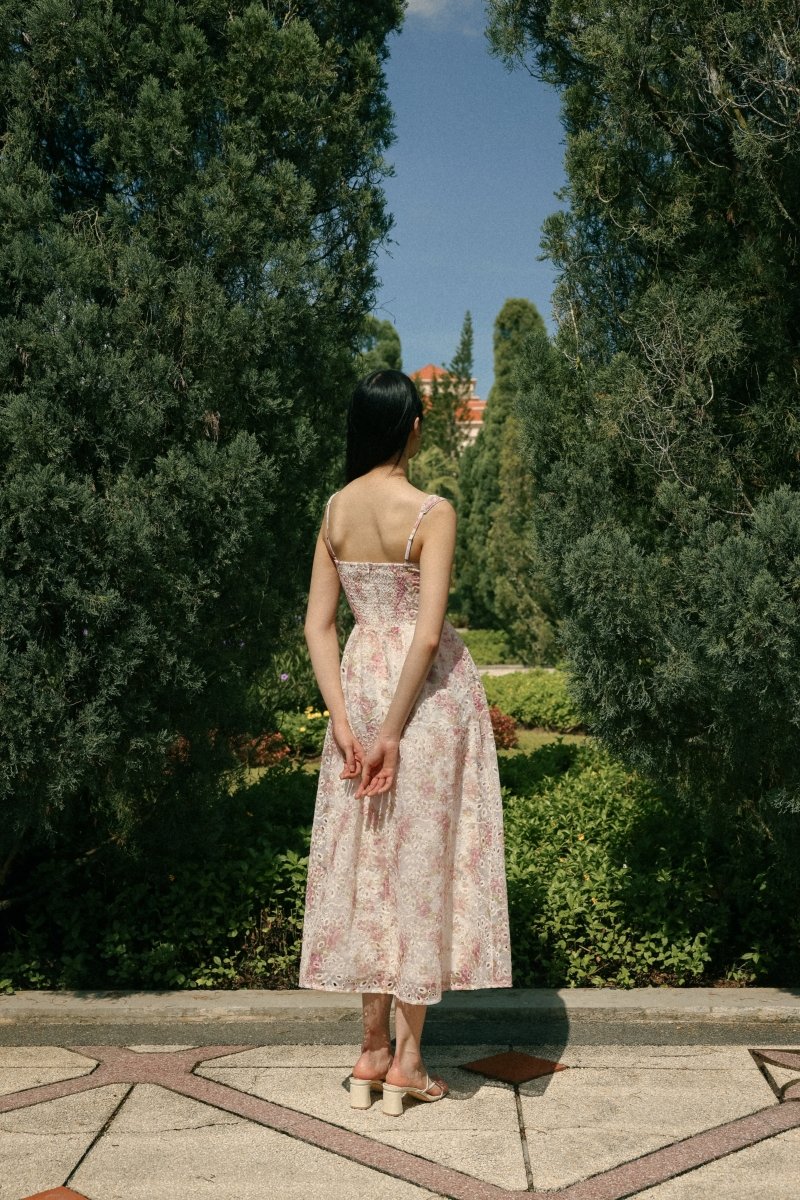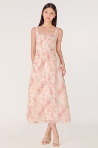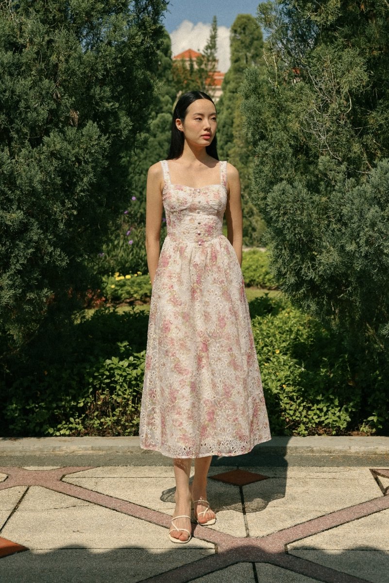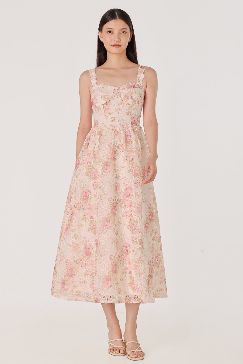 MEADOW PADDED FLORAL BRODERIE EYELET TRIM BUSTIER MIDAXI DRESS