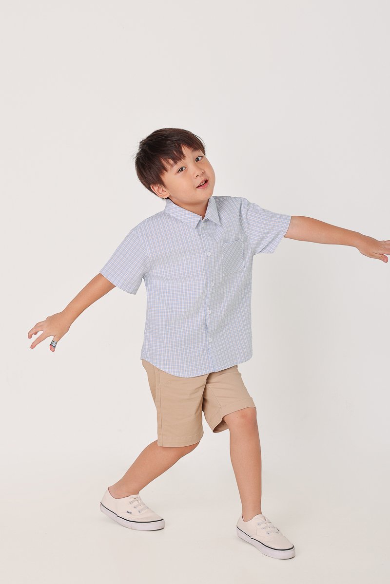 MICHAEL CHECKERED POCKET BOXY BUTTON SHIRT - MINI BOY